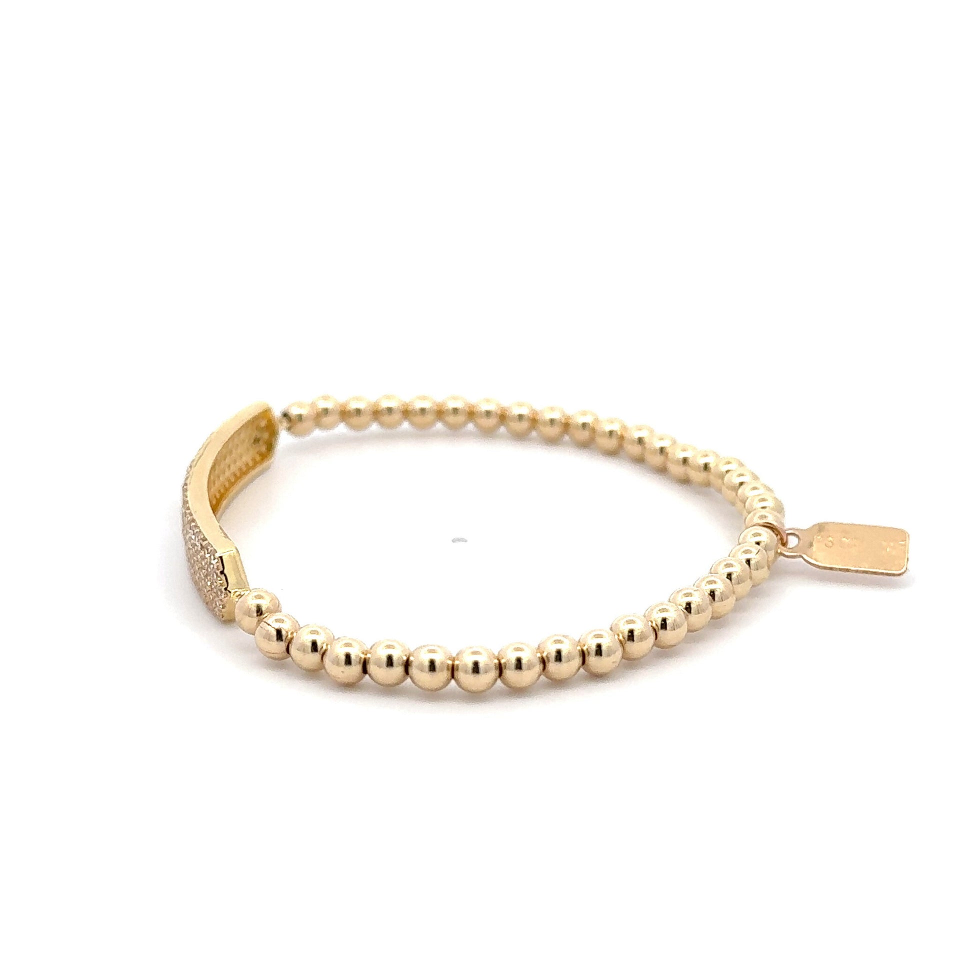 Elastisches Armband mit goldfarbenen Ballerinas und einem großen Stab mit Zirkonsteinen