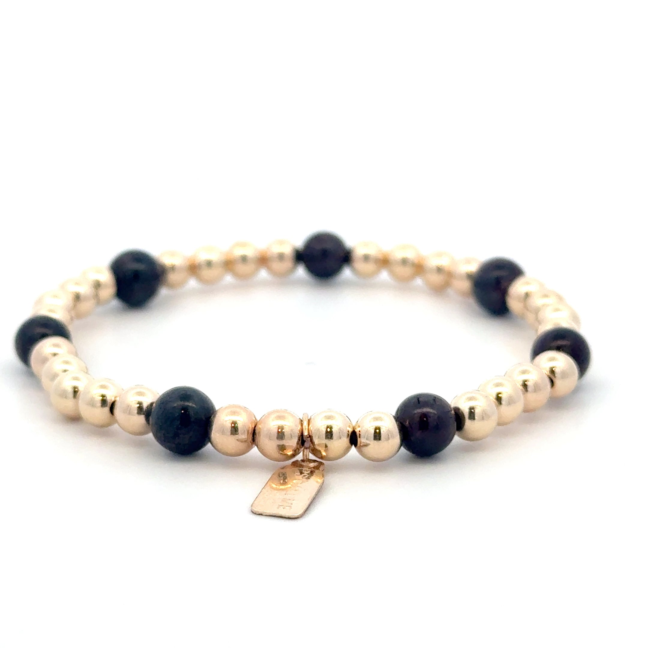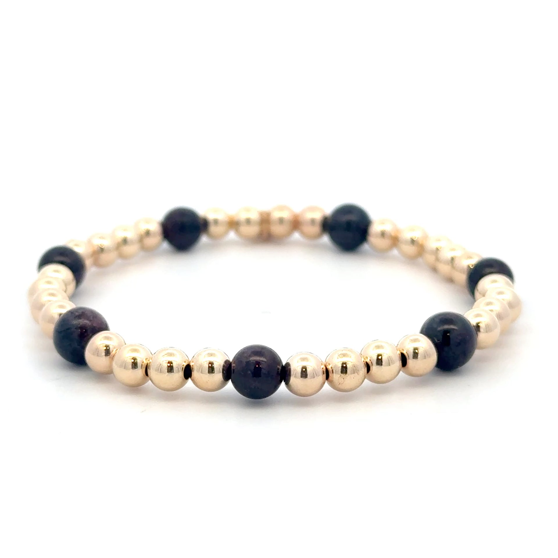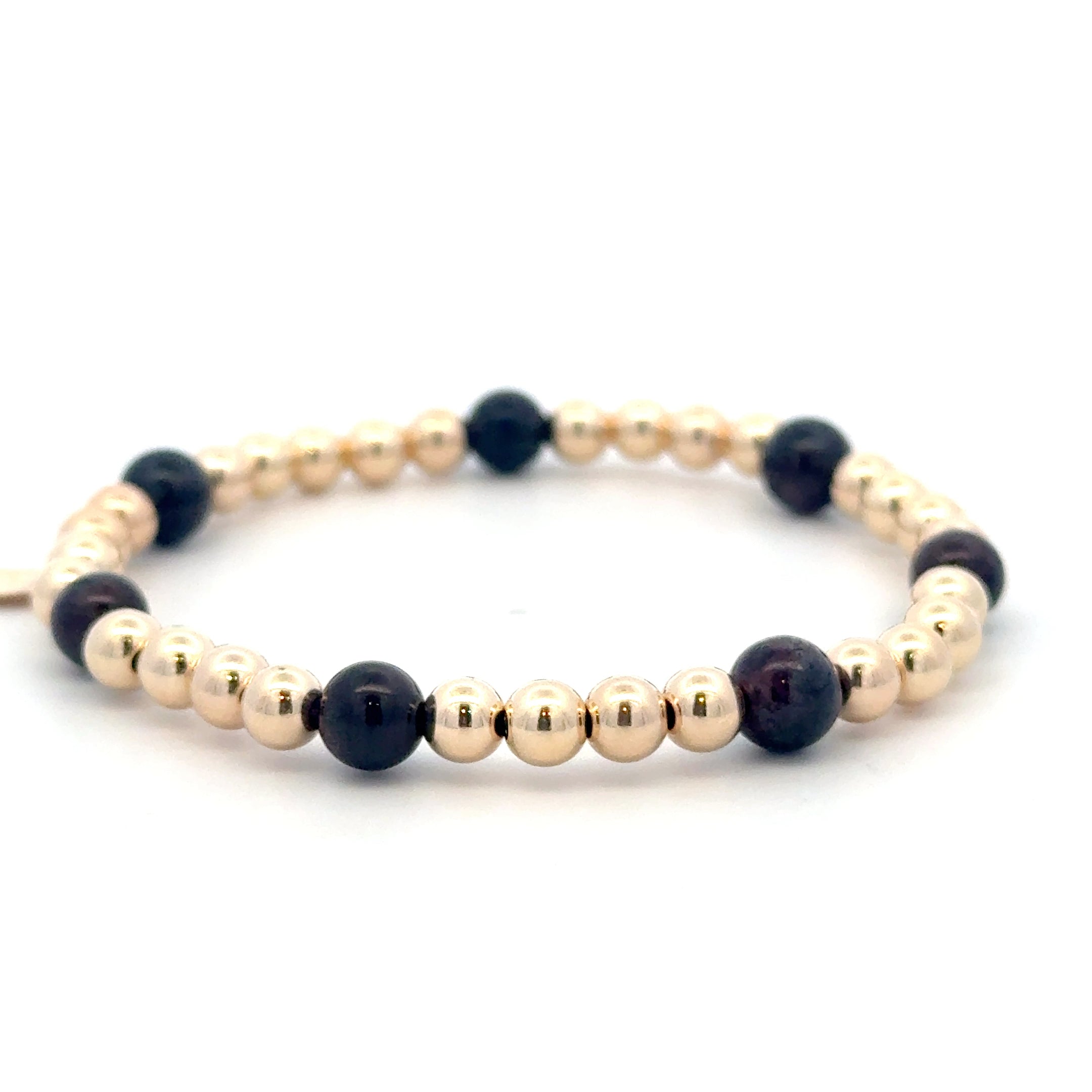 Pulsera elástica con bolas de color dorado y 7 piedras de colores.