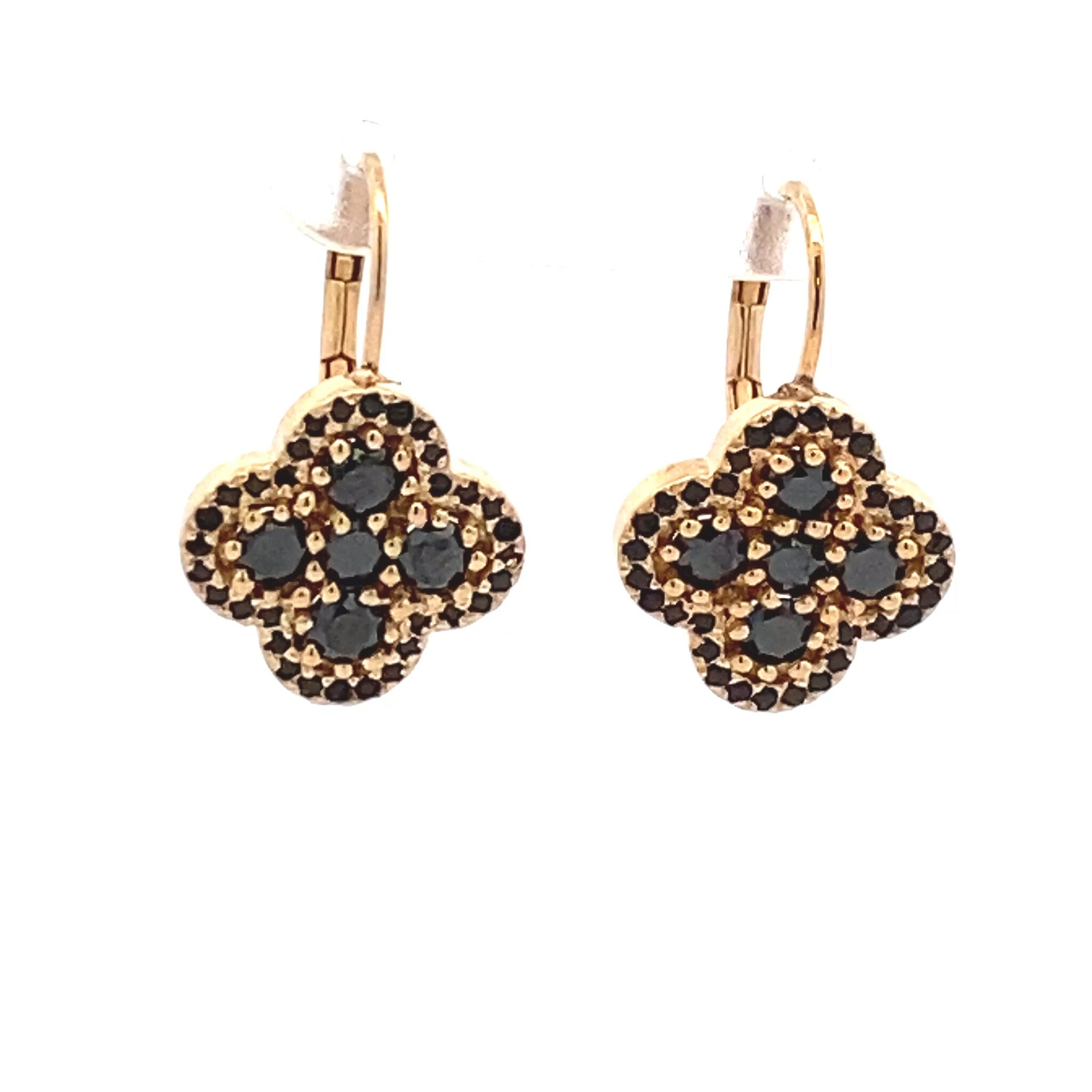 Pendientes bañados en oro en forma de trébol con piedras de circonitas.