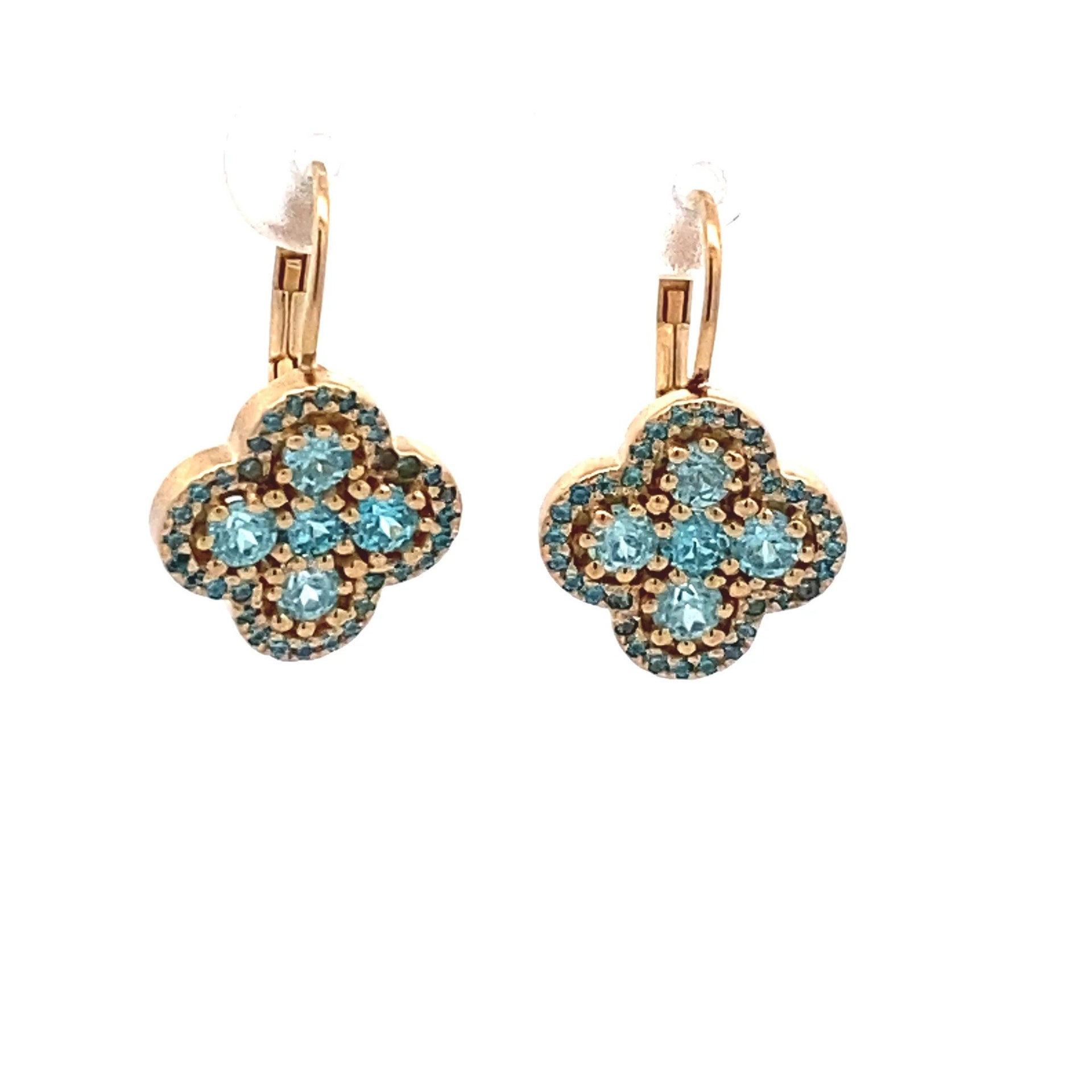 Pendientes bañados en oro en forma de trébol con piedras de circonitas.
