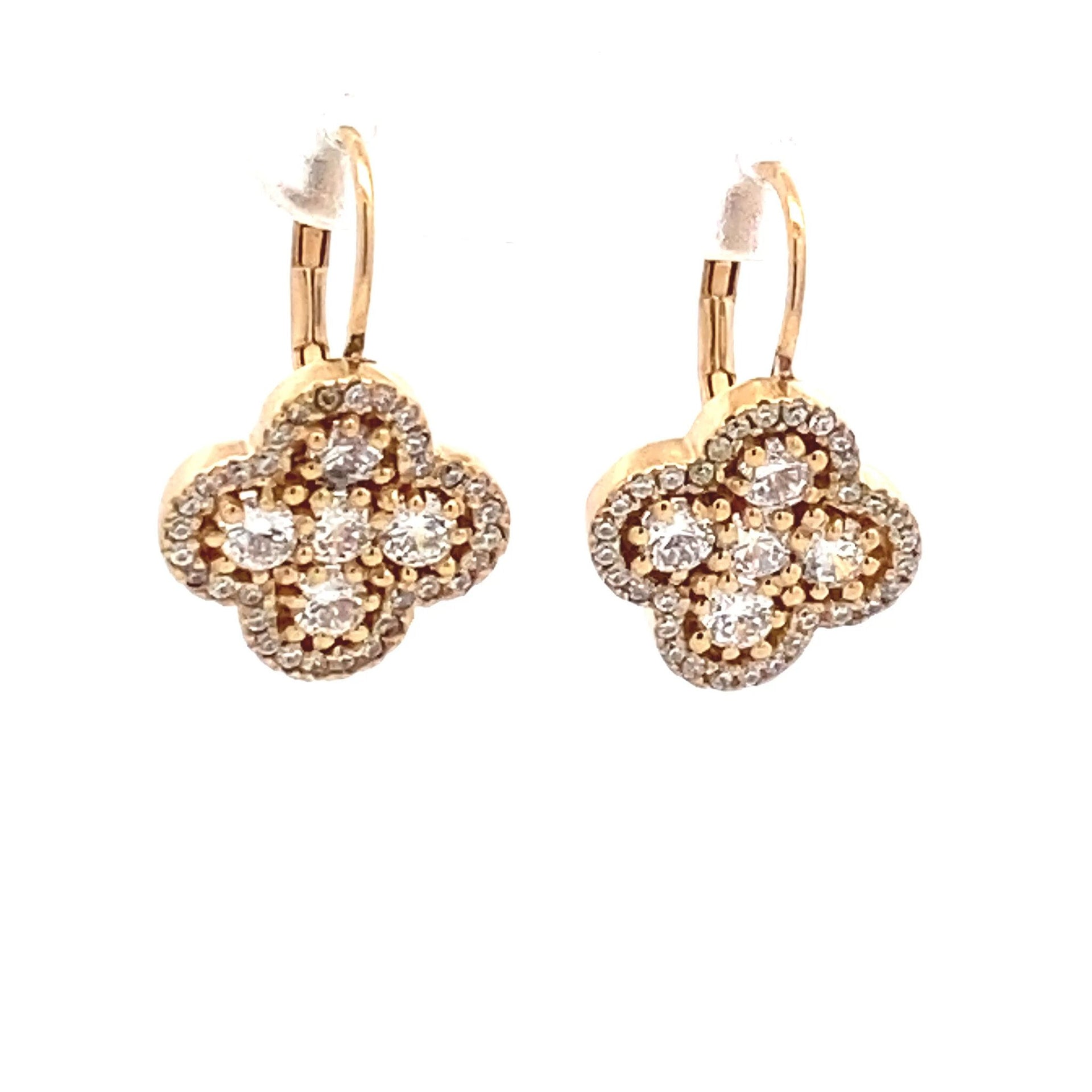 Pendientes bañados en oro en forma de trébol con piedras de circonitas.