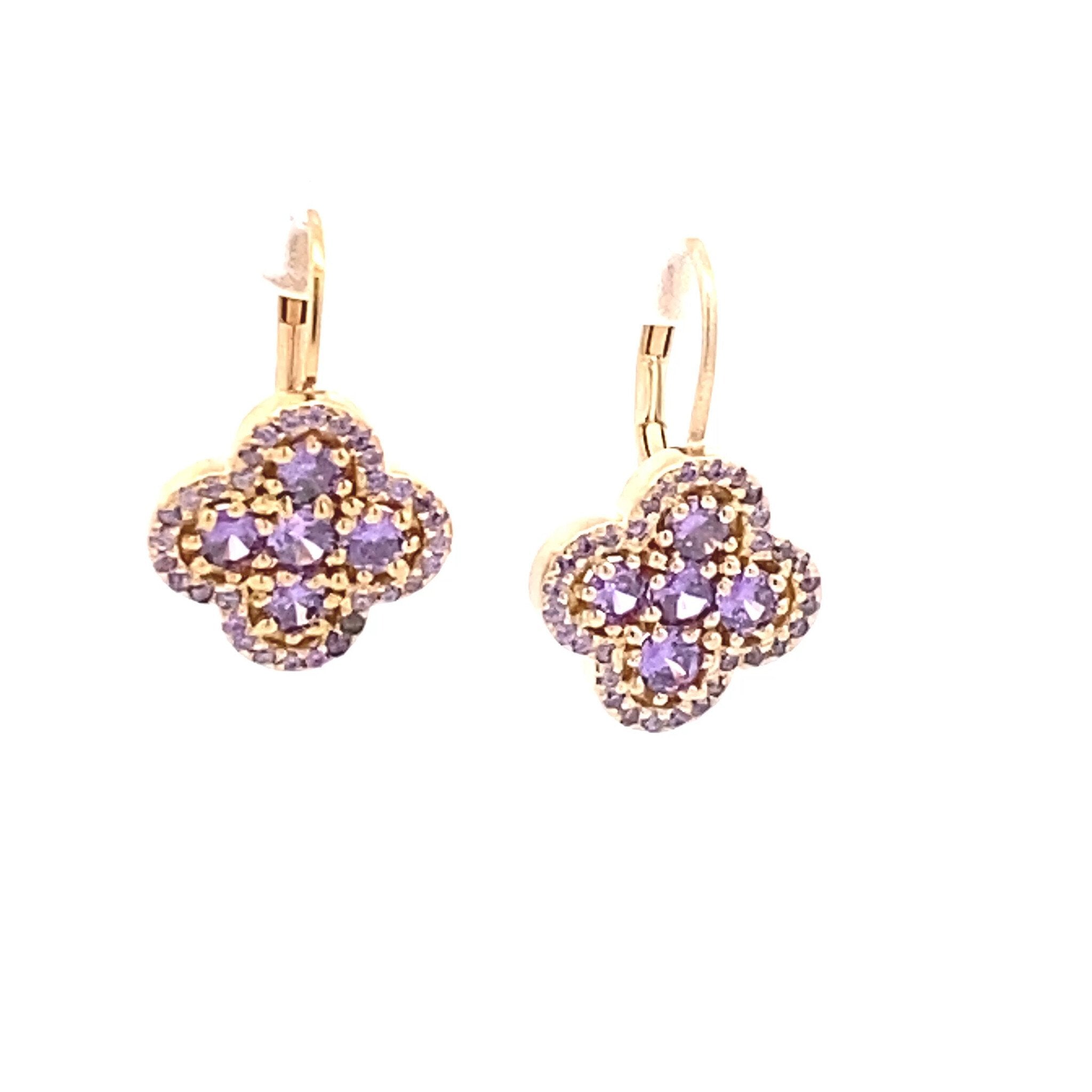 Pendientes bañados en oro en forma de trébol con piedras de circonitas.