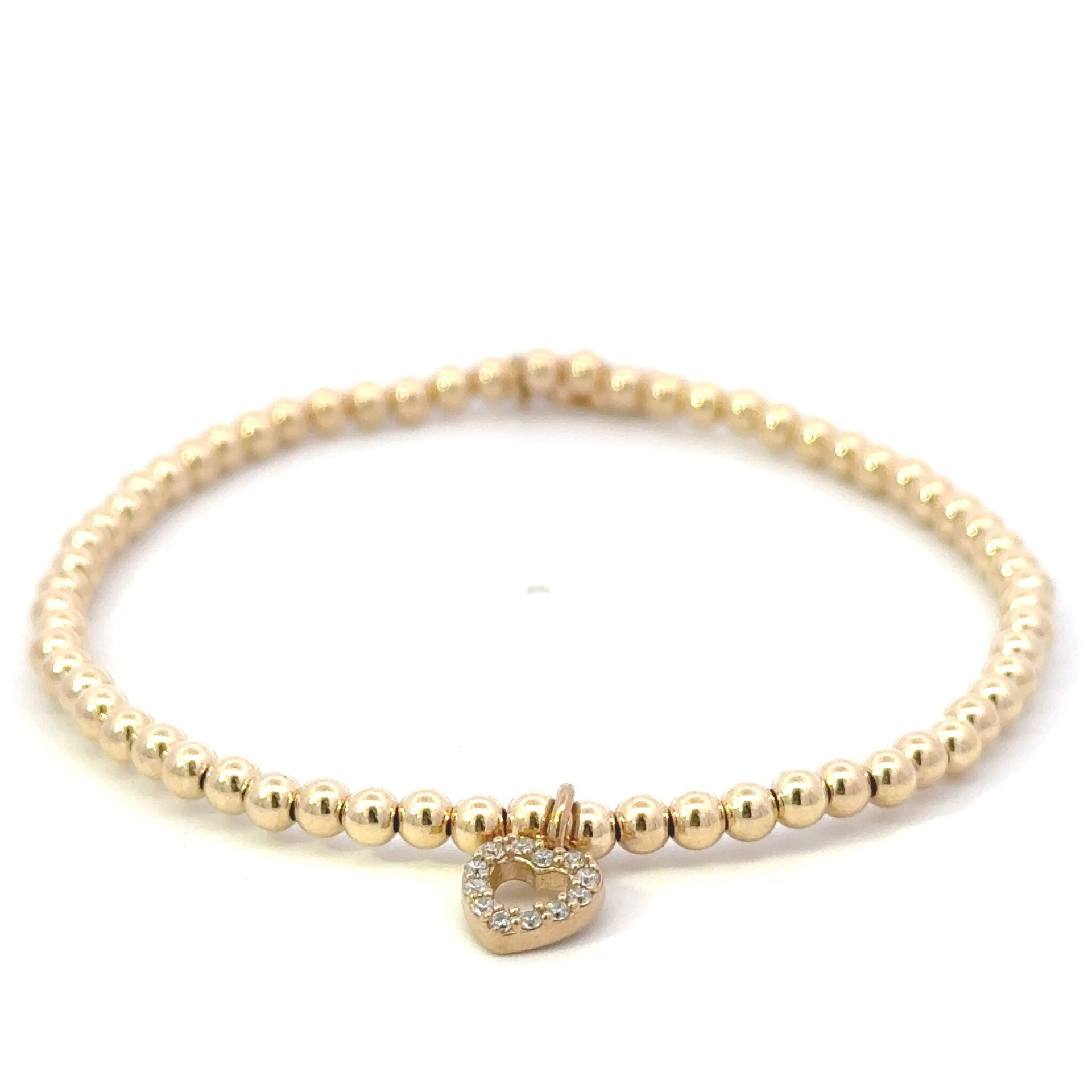 Elastic bracelet with gold-colored beads and a rhinestone heart.