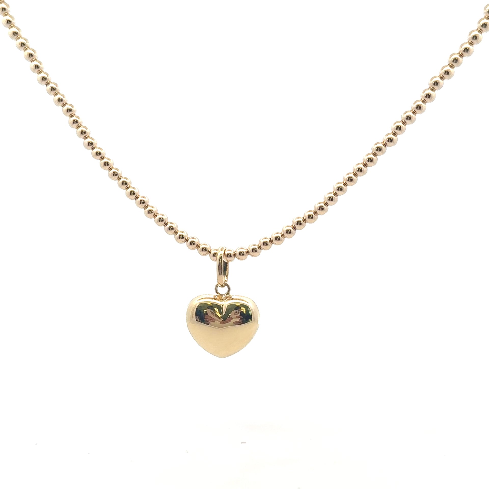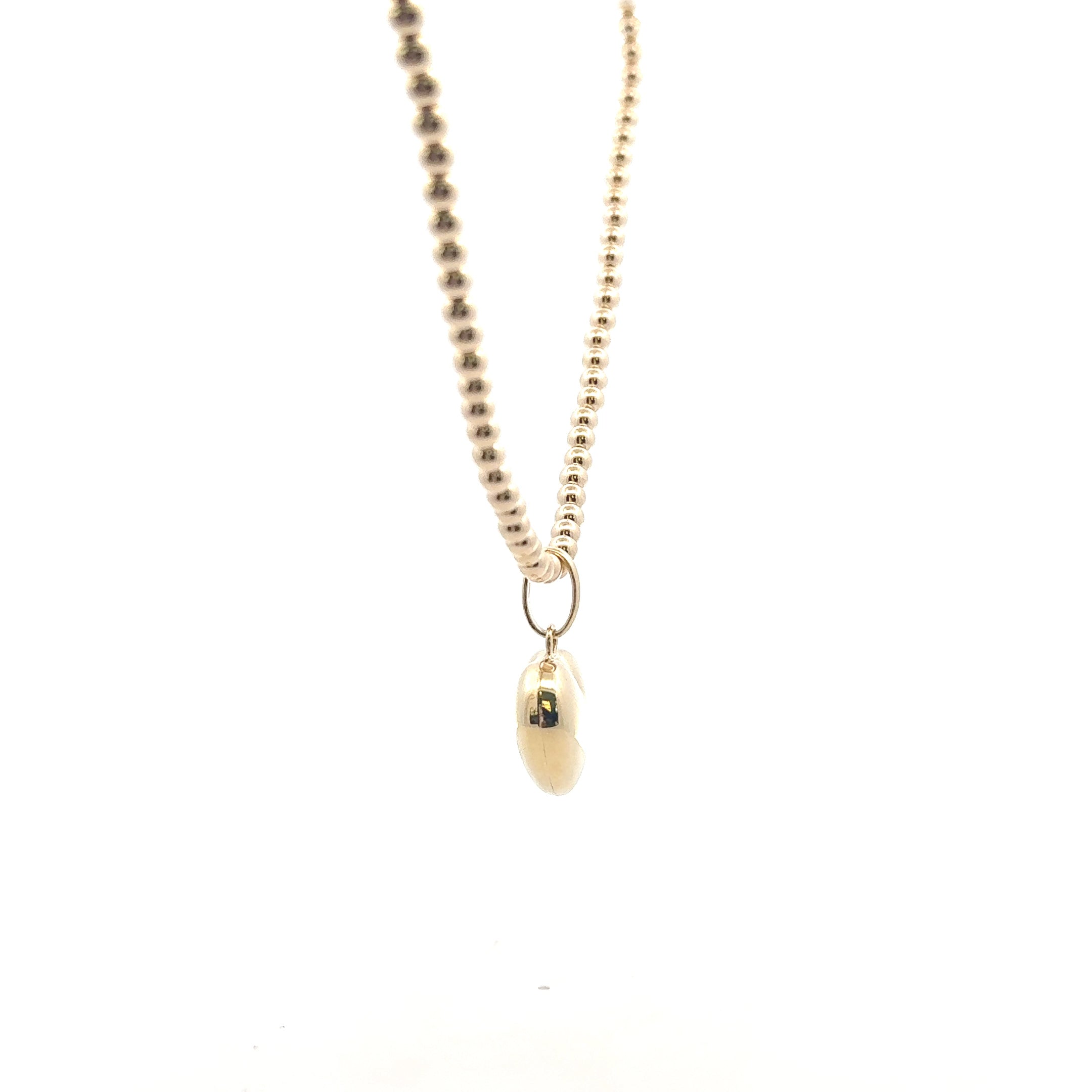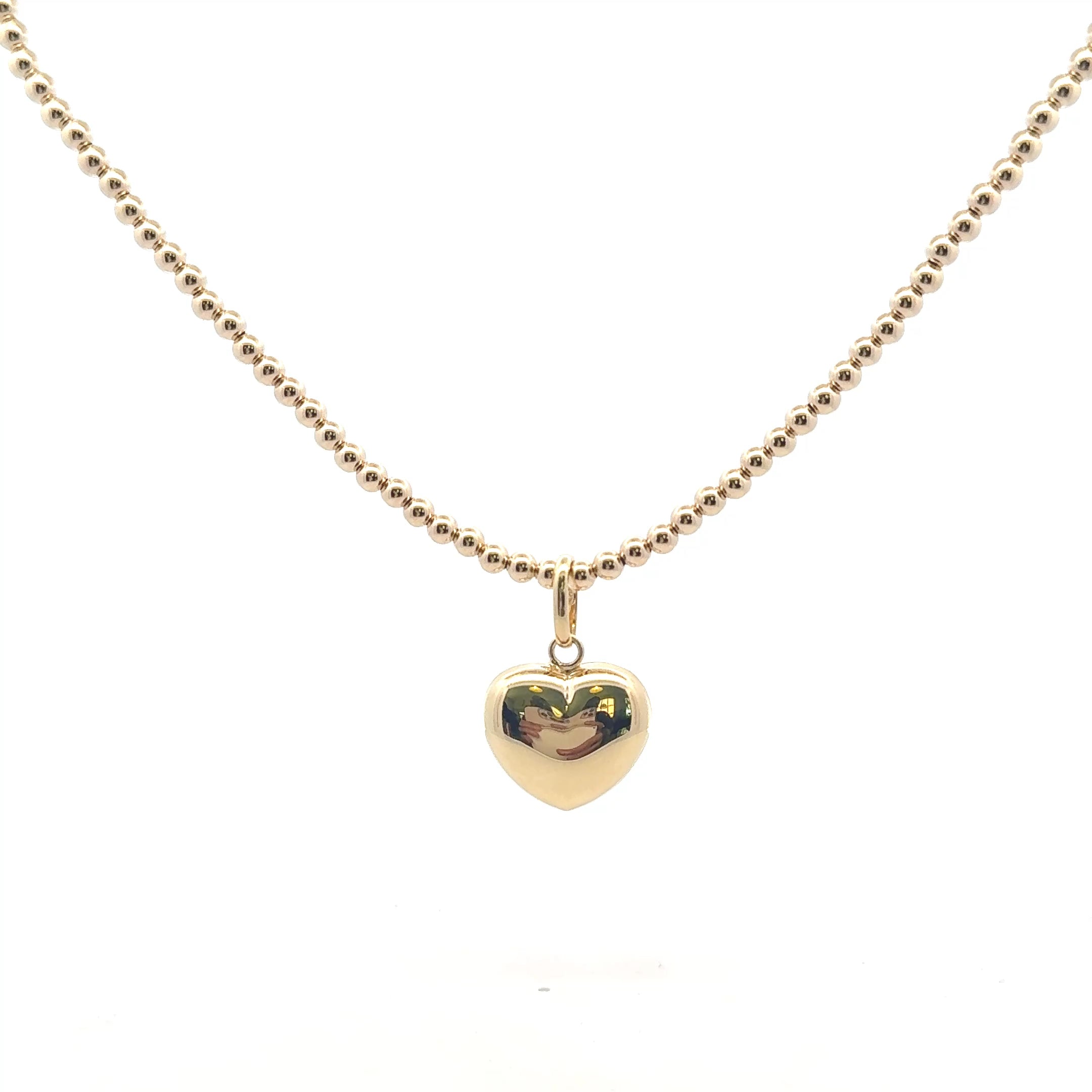 Necklace made from the 4mm beads and a gold heart puff charm.