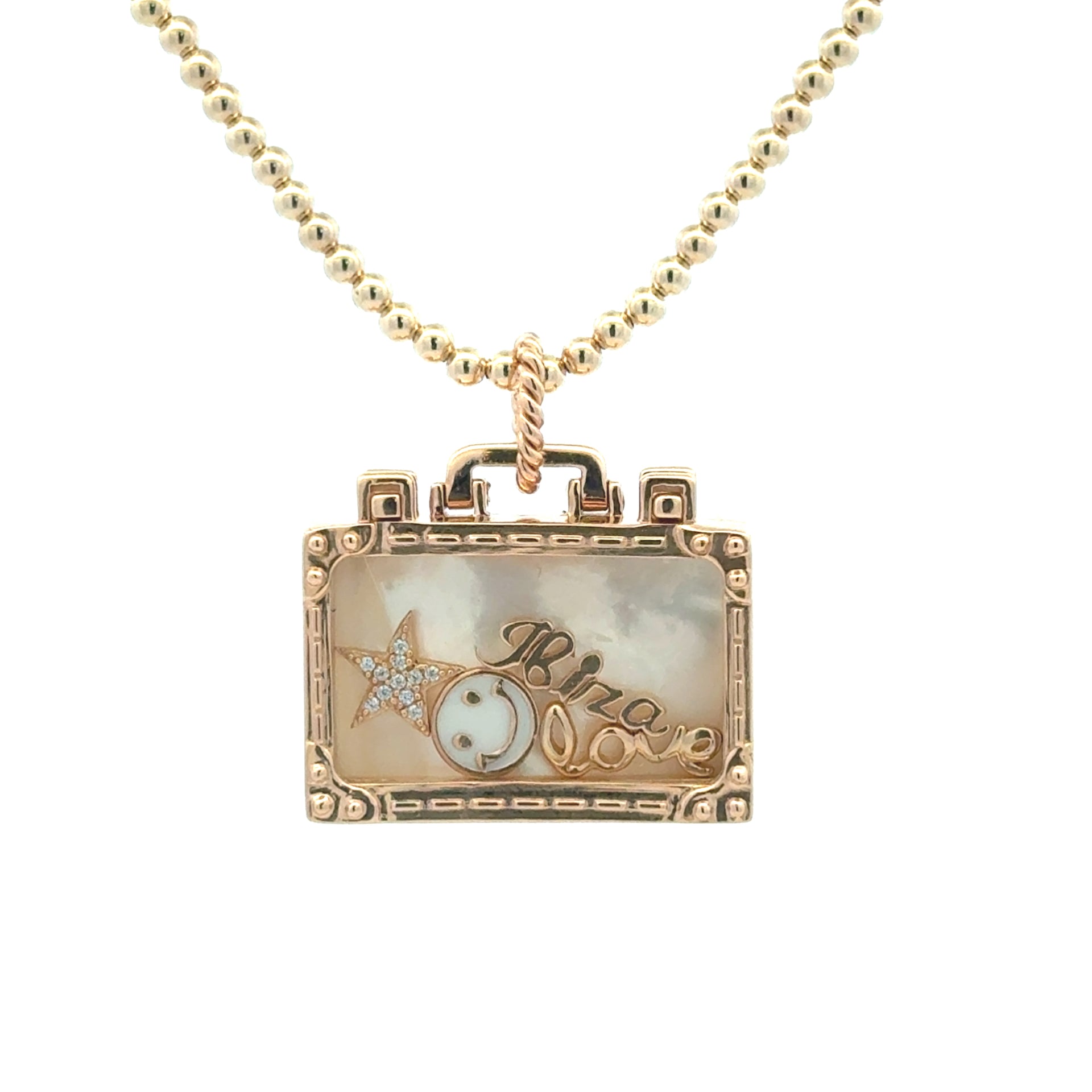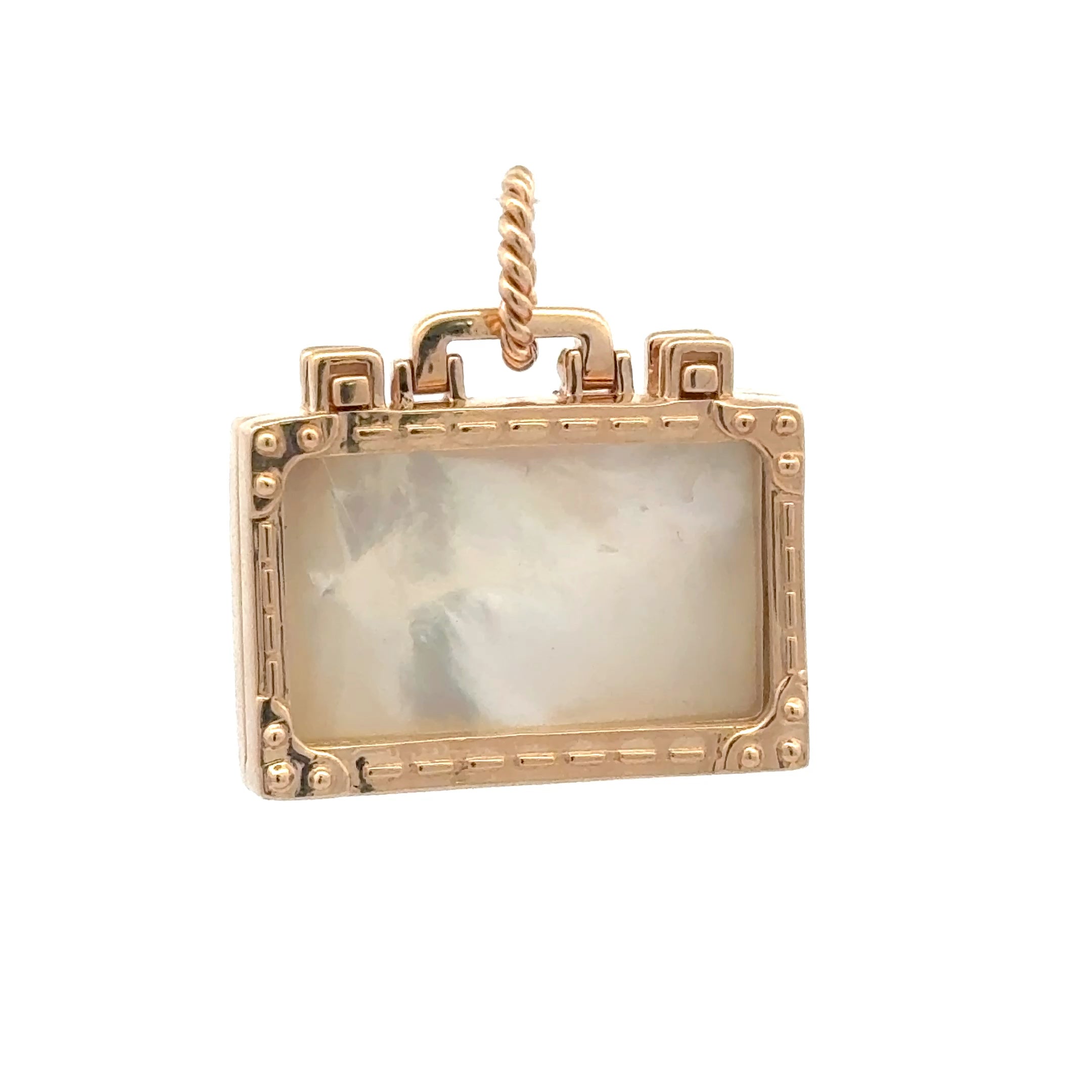 Carry a touch of wanderlust with the Pearl travel locket. Crafted in gold with delicate pearlescent details, this miniature suitcase charm captures the charm of joy and a adventure. A symbol of elegance, curiosity and timeless style. Perfect for those who believe every jewelry deserves a little sprakle.