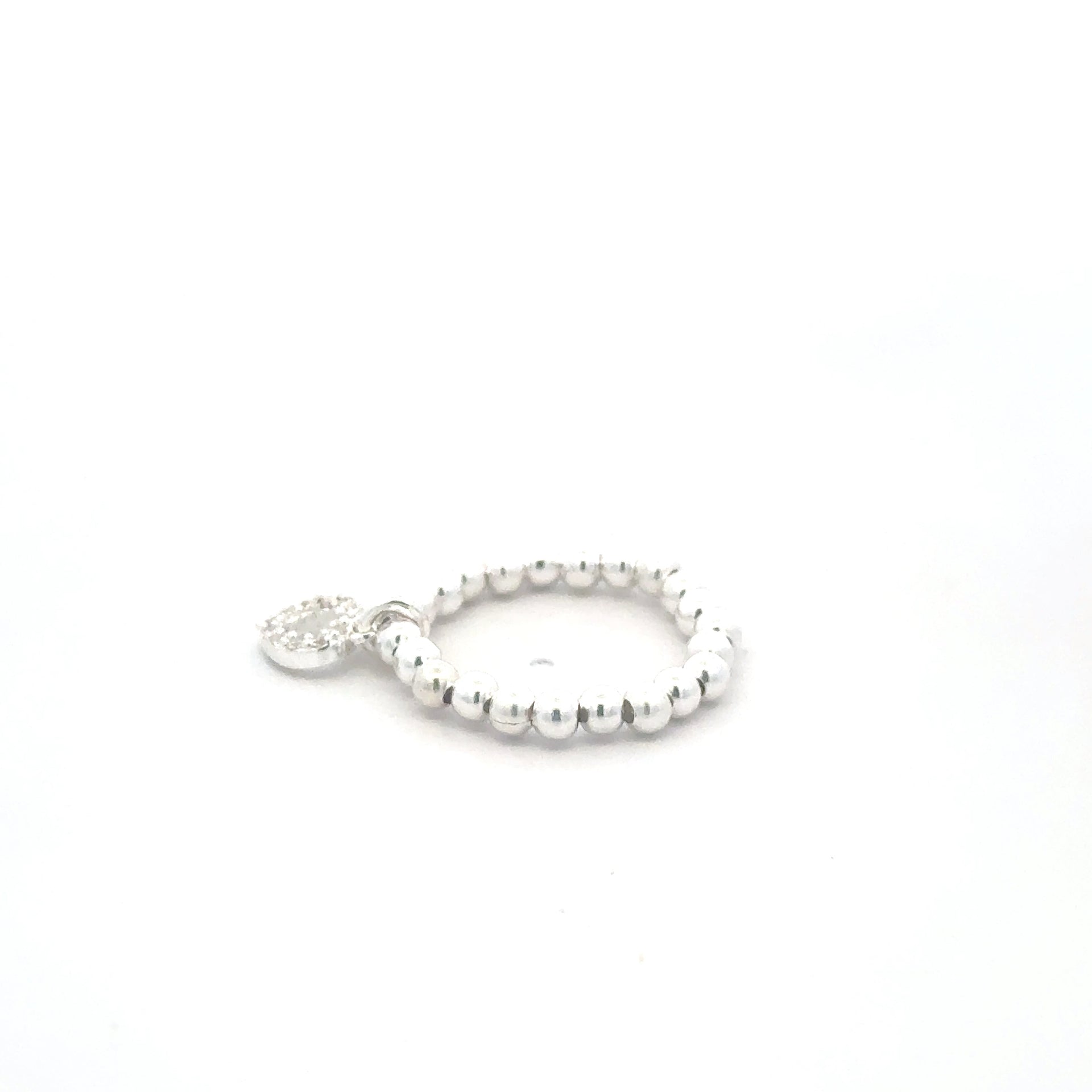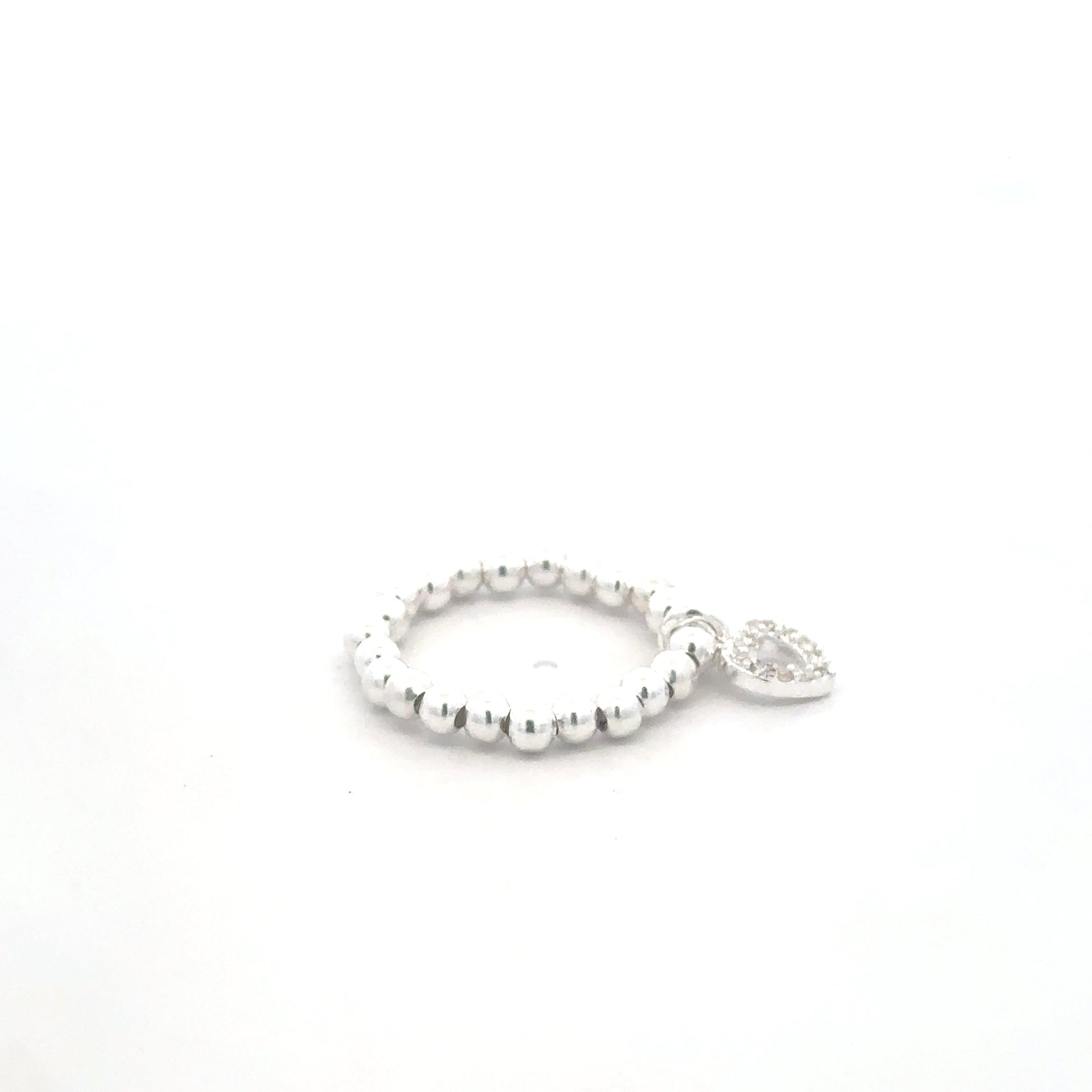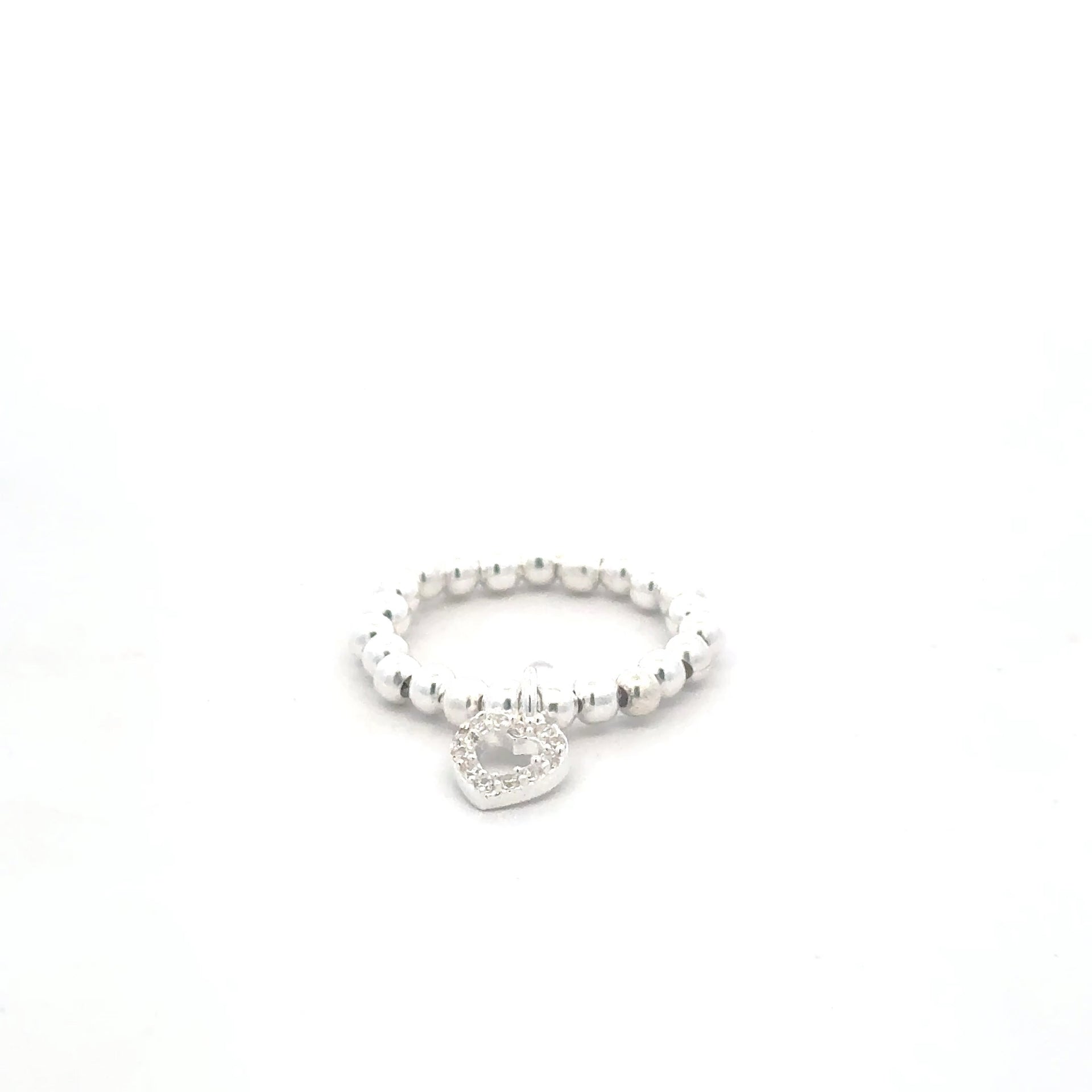 Anillo elástico con cuentas de plata y corazón de diamantes de imitación.