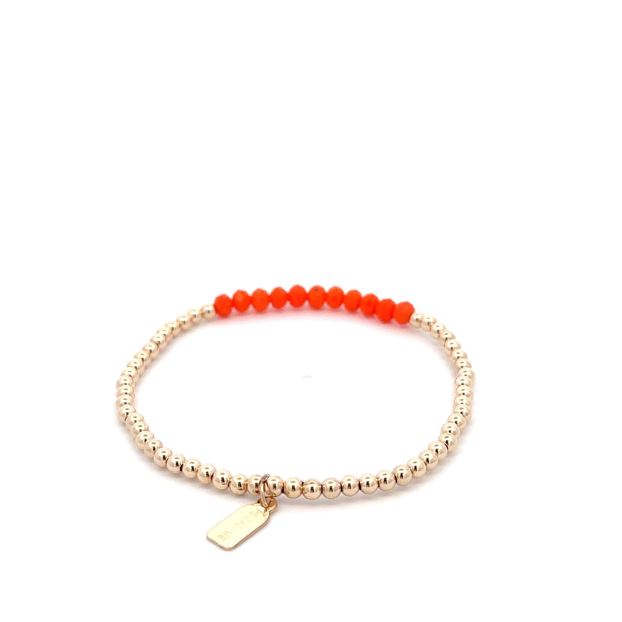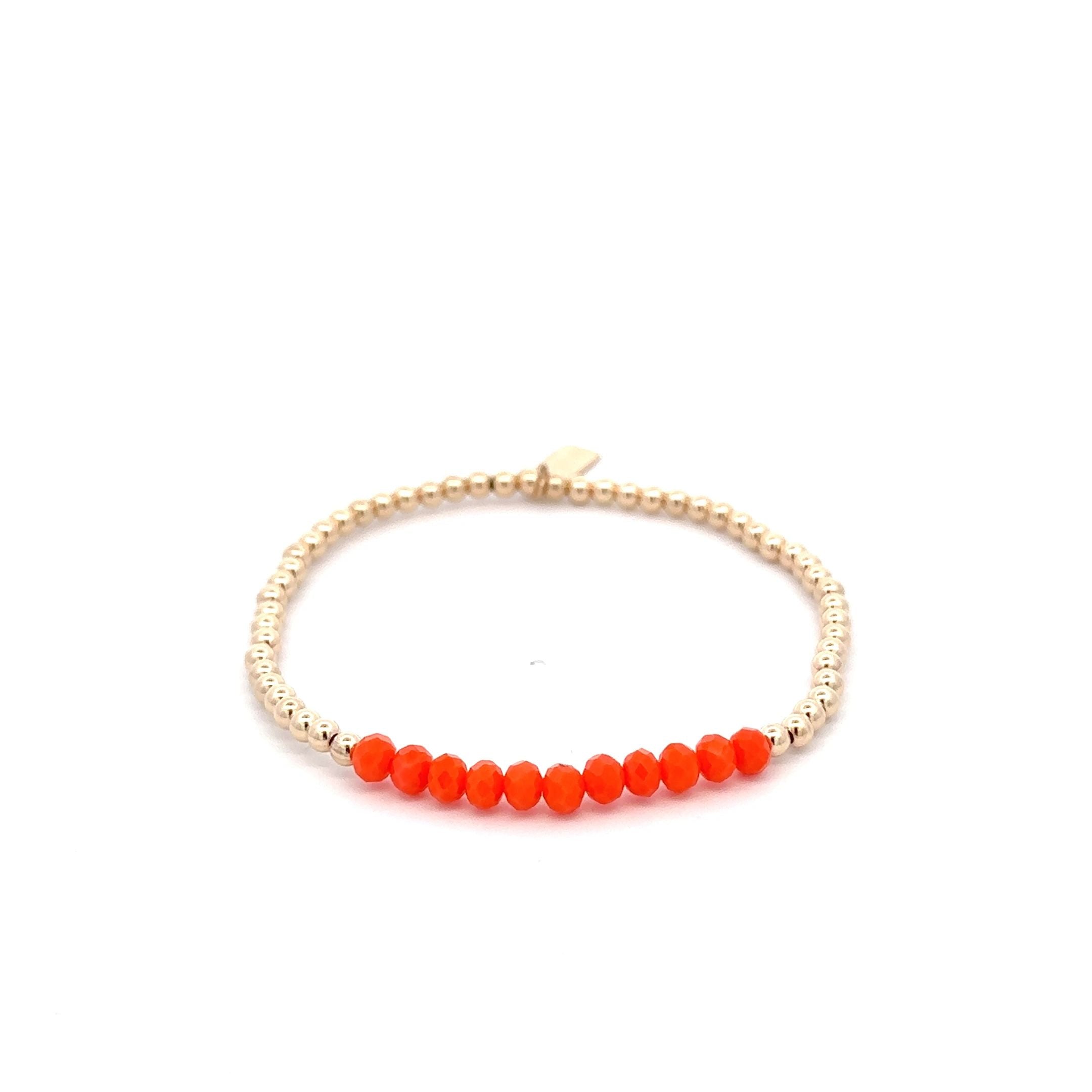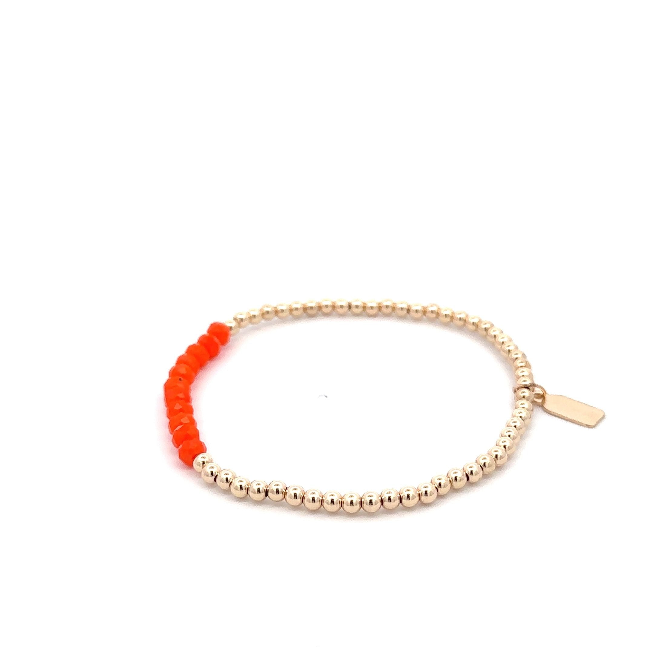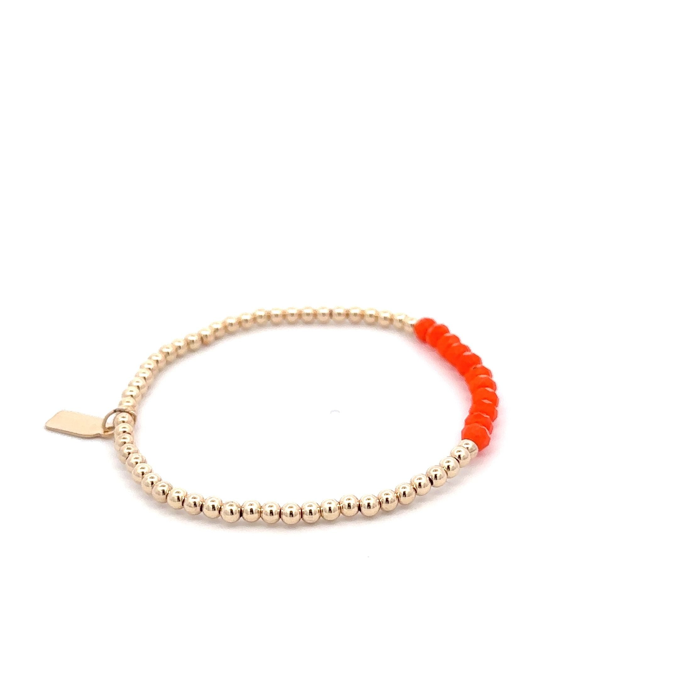 Bracelet élastique avec boules dorées et rangée de pierres orange