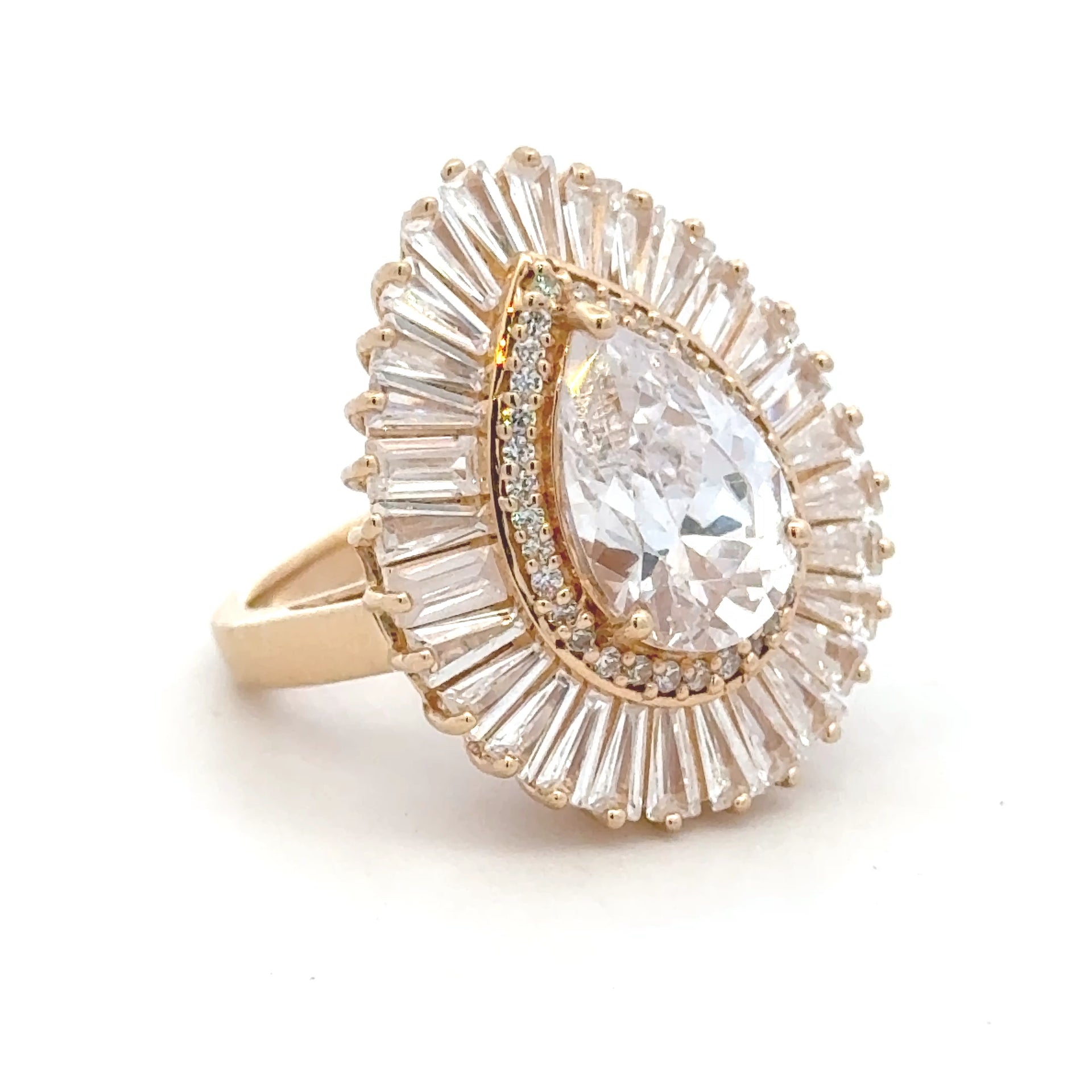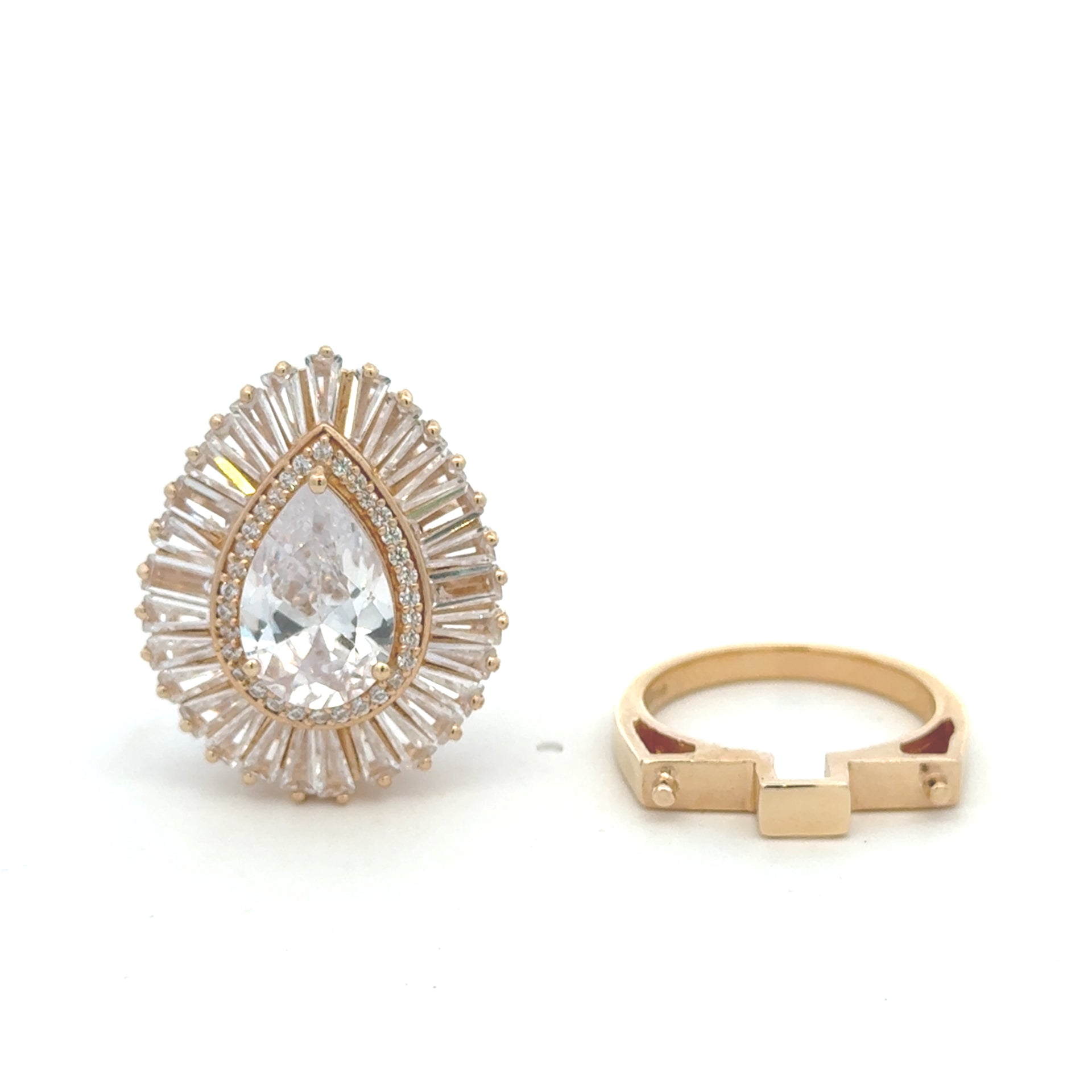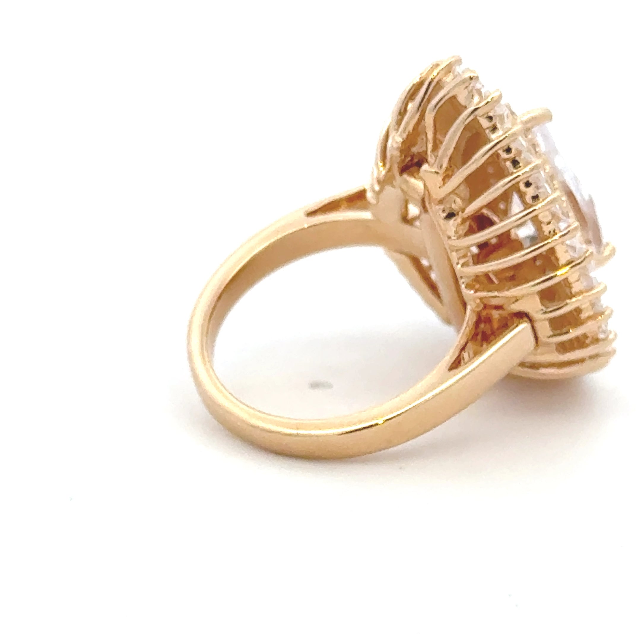 La bague est finement travaillée avec des pierres CZ de haute qualité qui ajoutent un éclat luxueux à chaque mouvement. Grâce au plaquage en or pur de 1 micron, la pièce possède une brillance dorée chaude et durable qui reste belle dans le temps.