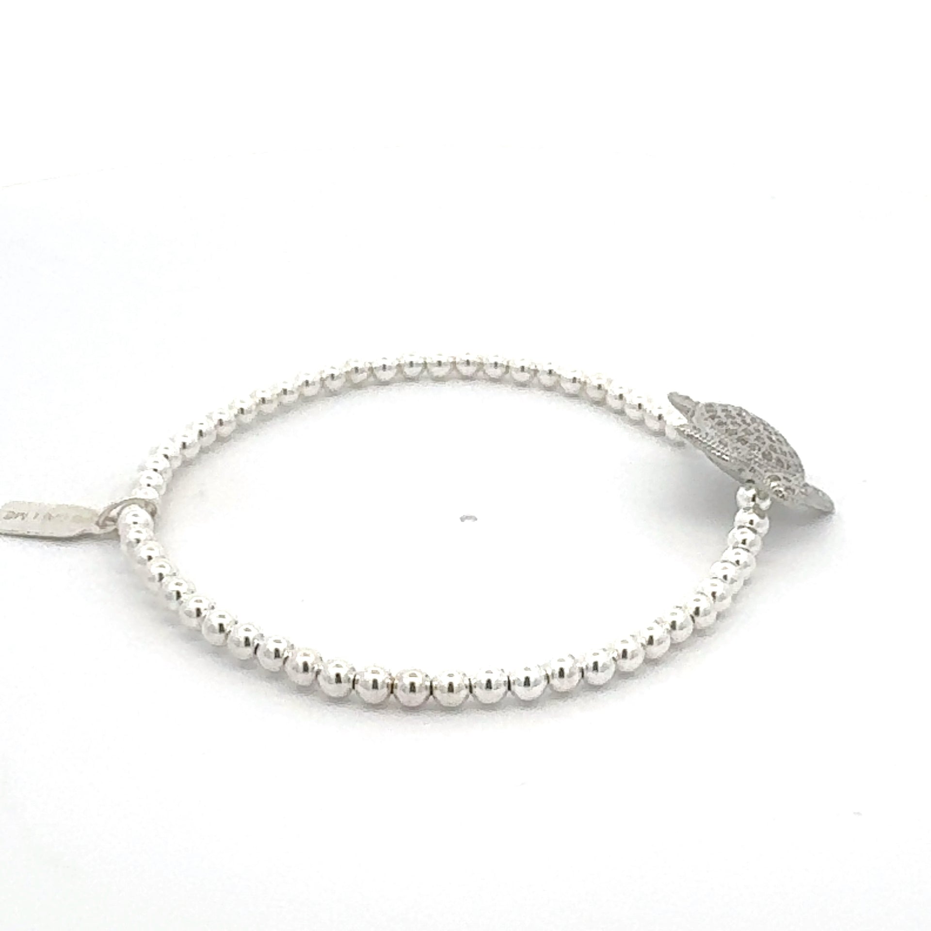 Bracelet élastique avec boules en argent et tortue sertie de zircones.