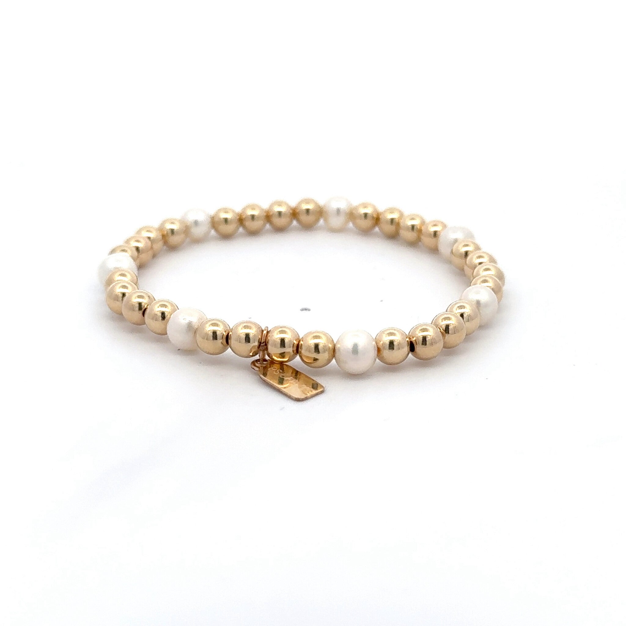 Bracciale elastico con palline color oro e 7 pietre colorate.