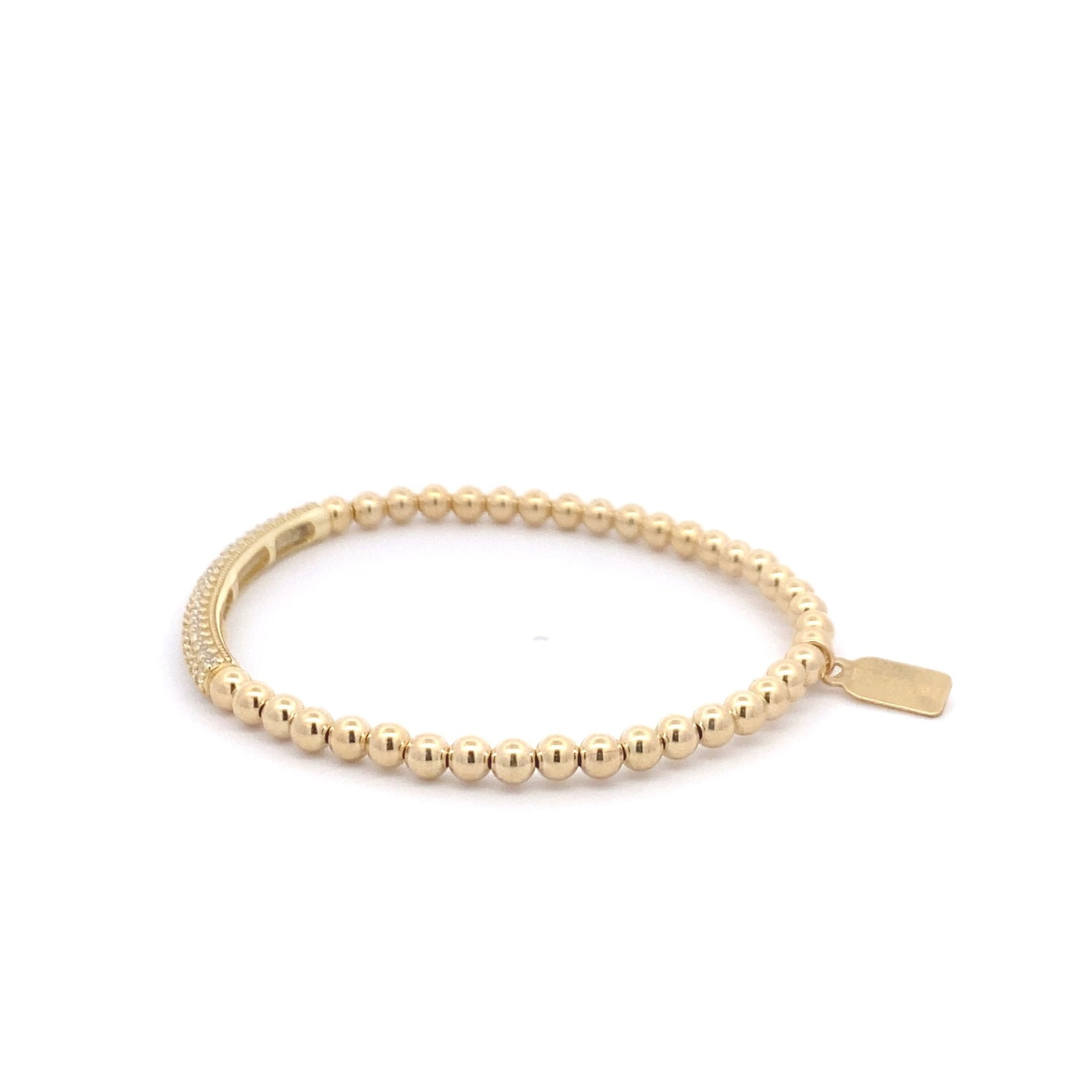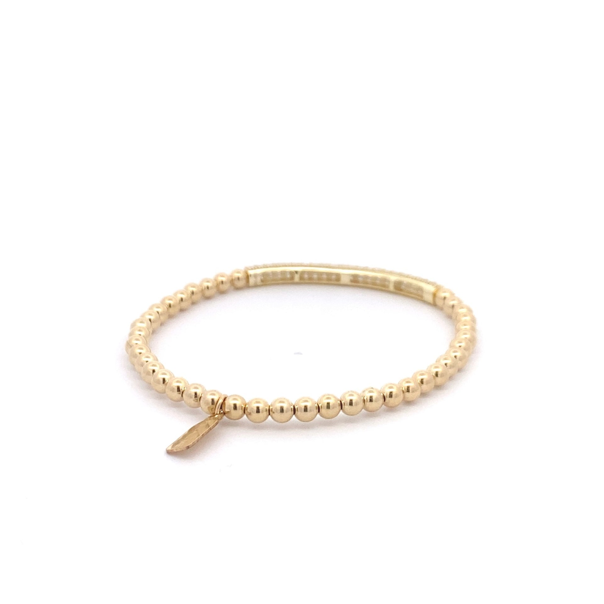 Bracciale elastico con palline color oro e barretta di strass.
