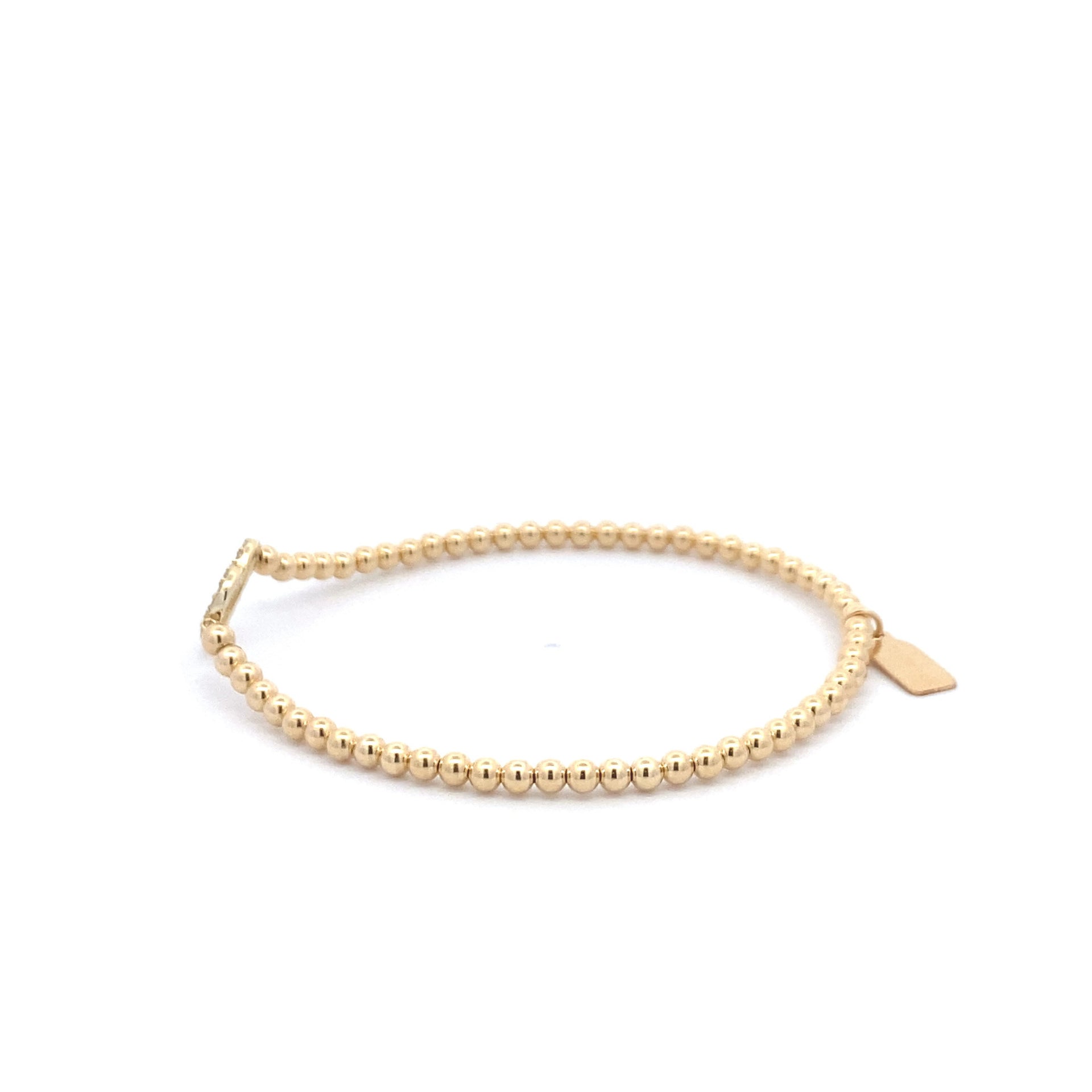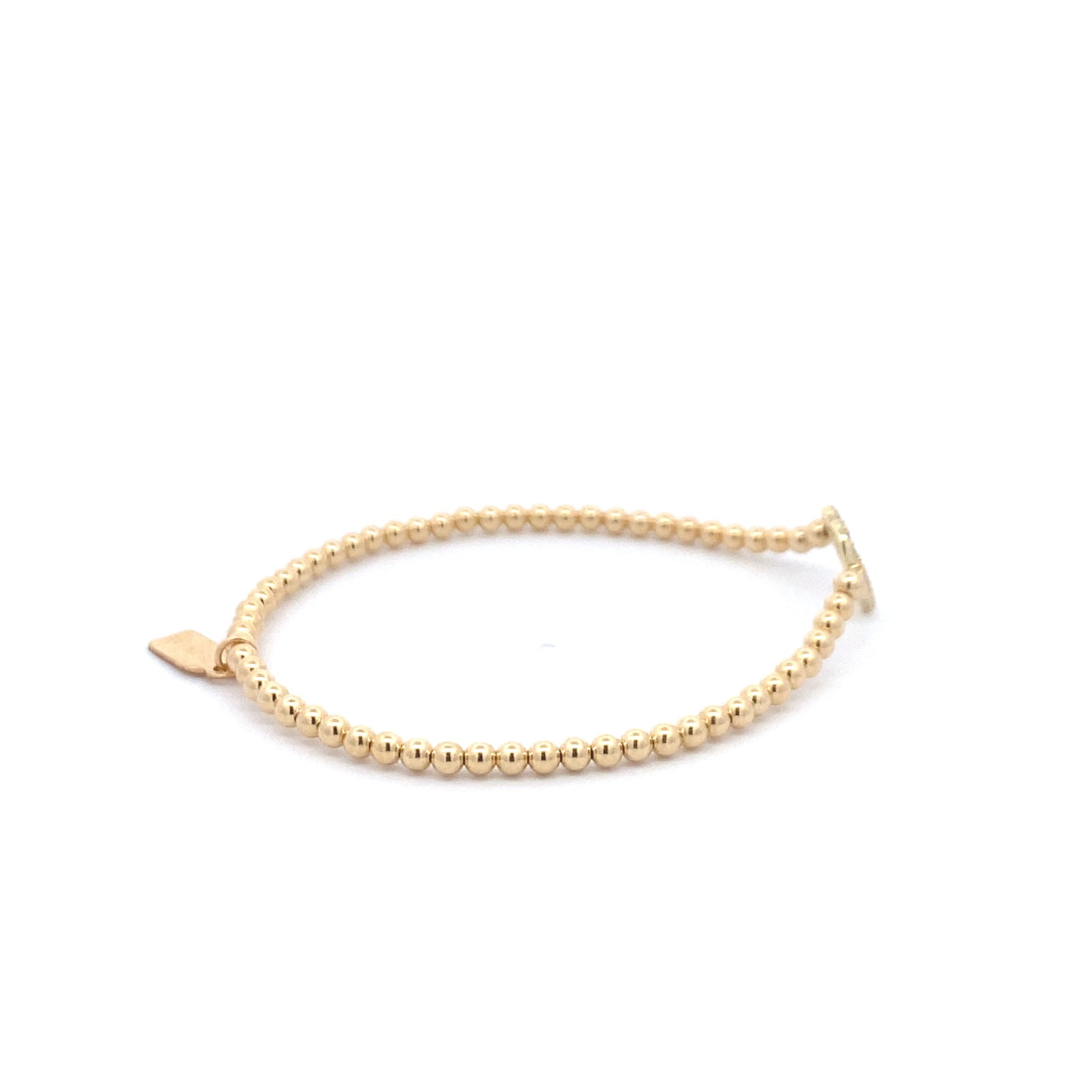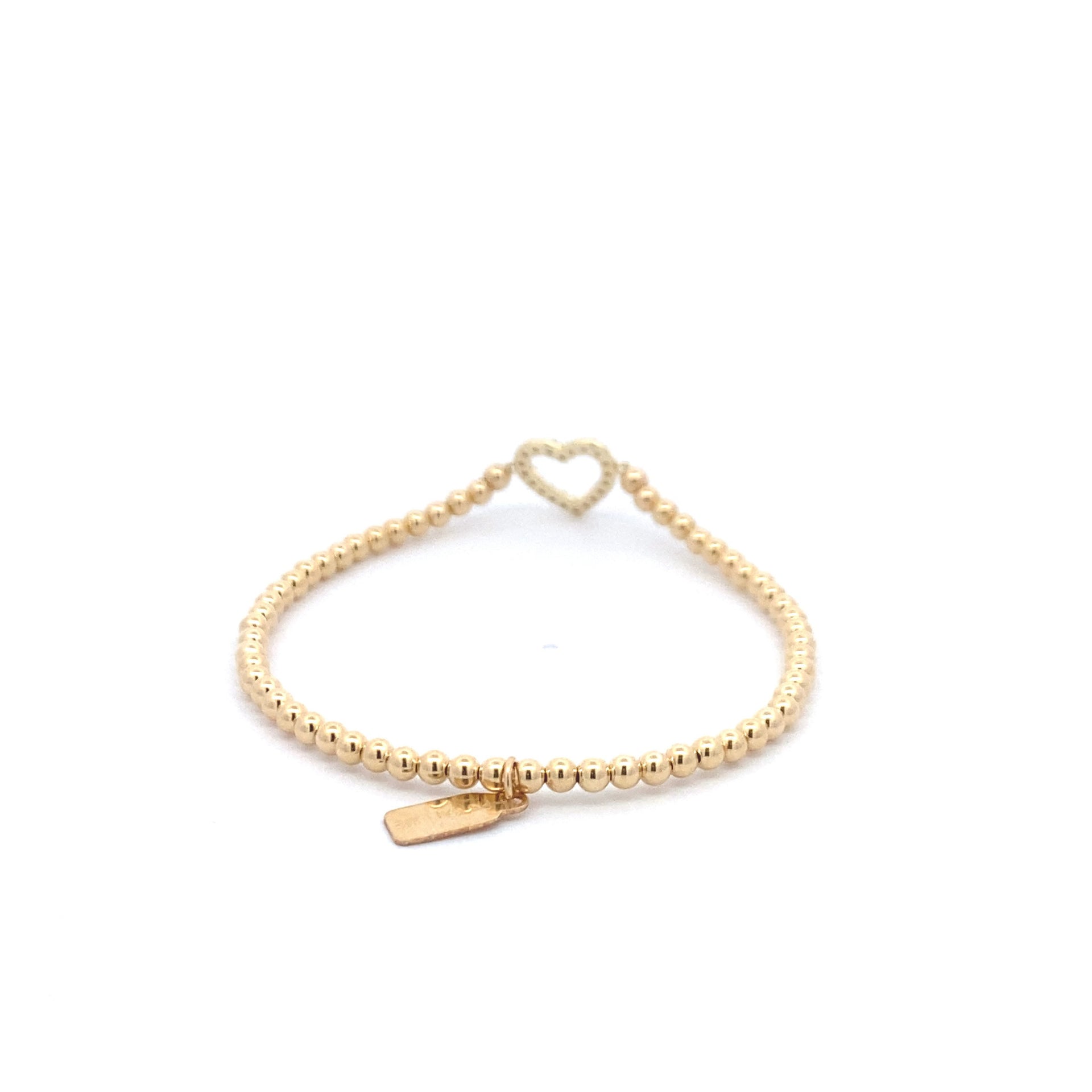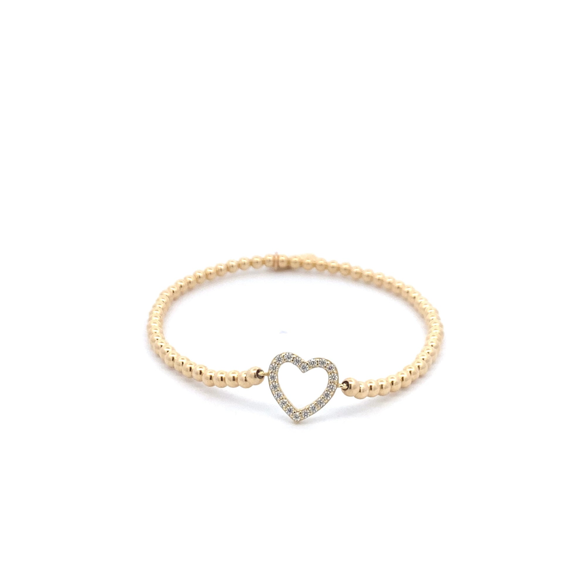 Bracciale elastico con palline color oro e cuore di strass.