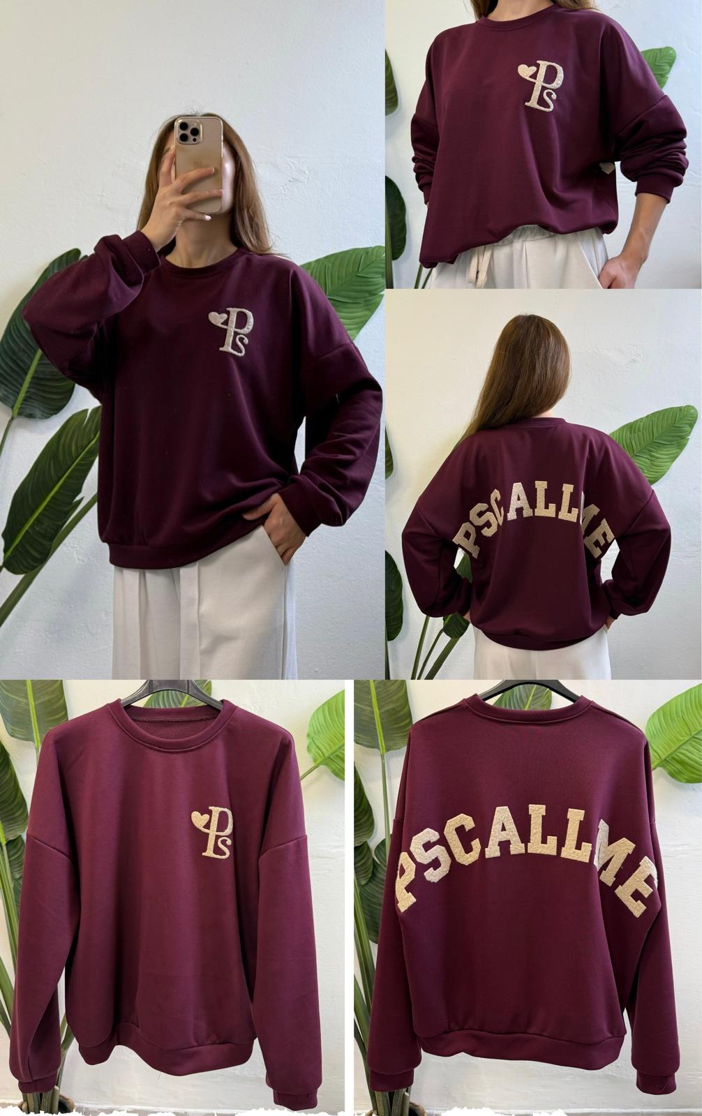 Unisci stile e comfort con questa felpa trendy color borgogna! Perfetta per le giornate più fresche grazie al tessuto morbido e caldo. Sul davanti presenta il nostro logo "PS" ricamato con discrezione, mentre sul retro fa una dichiarazione audace con la scritta arcuata "PSCALLME" in lettere spesse e a contrasto.
