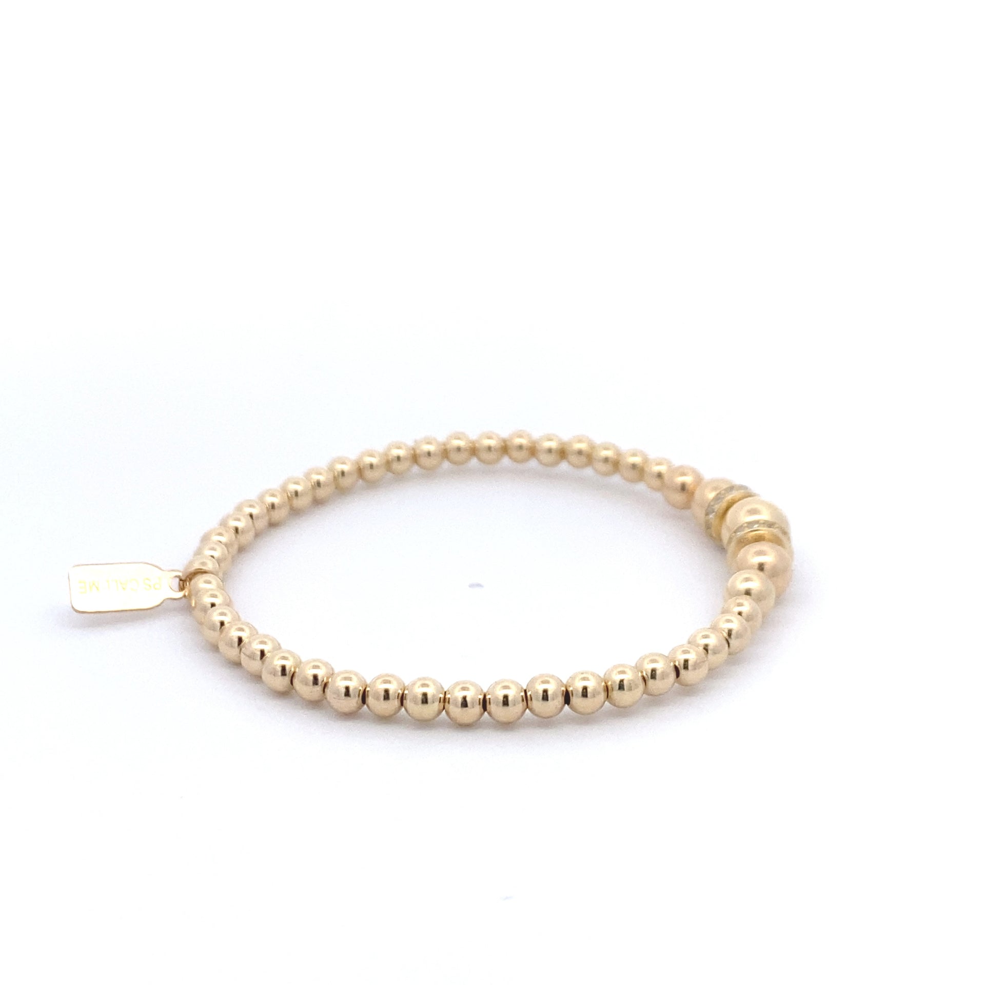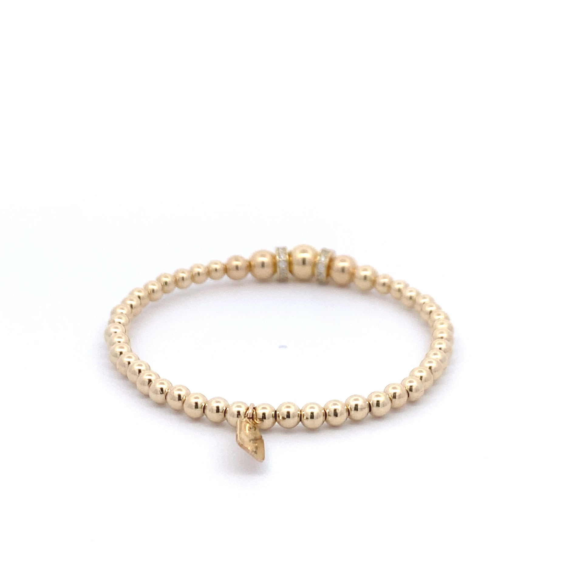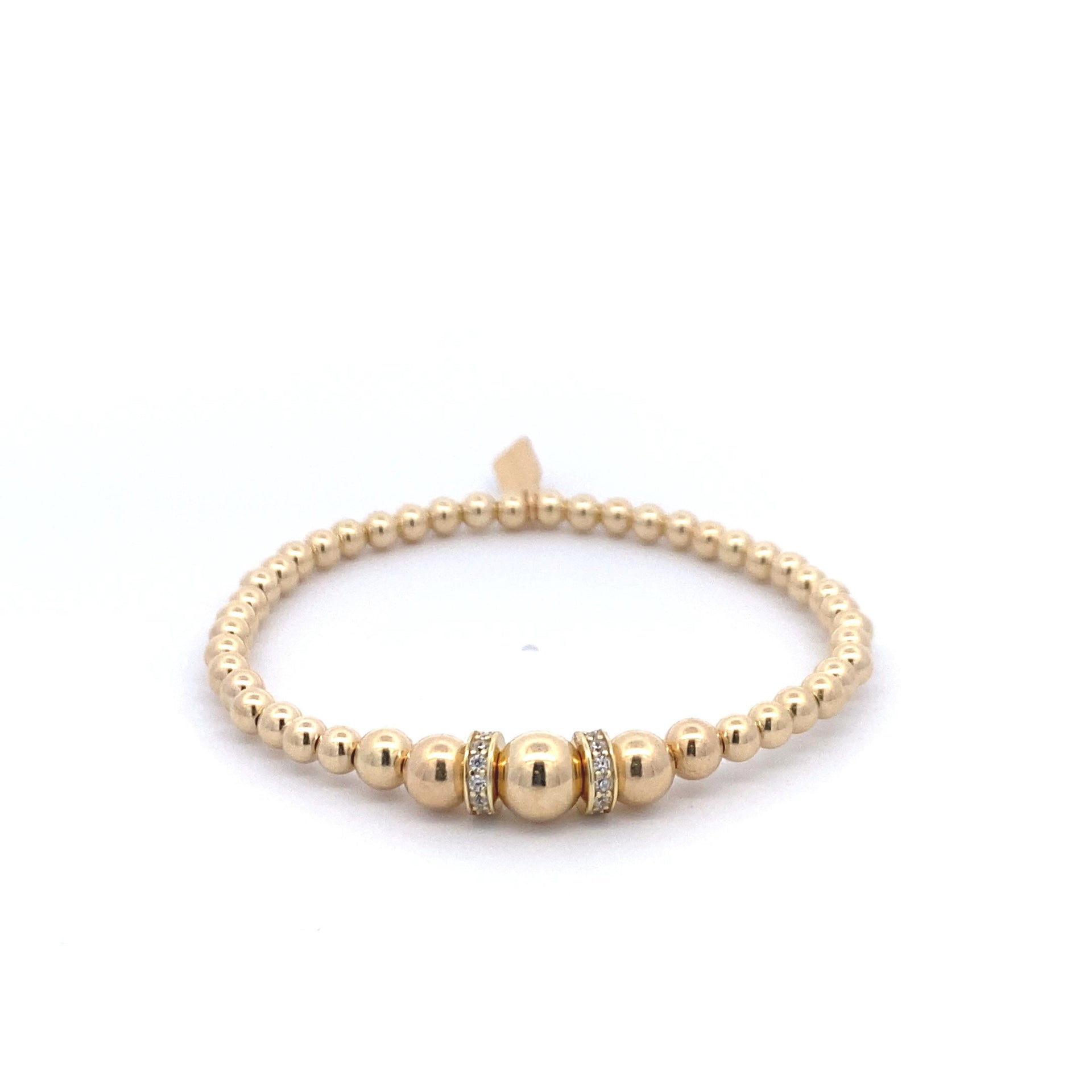 Bracciale elastico con palline color oro e 2 ruote con strass.