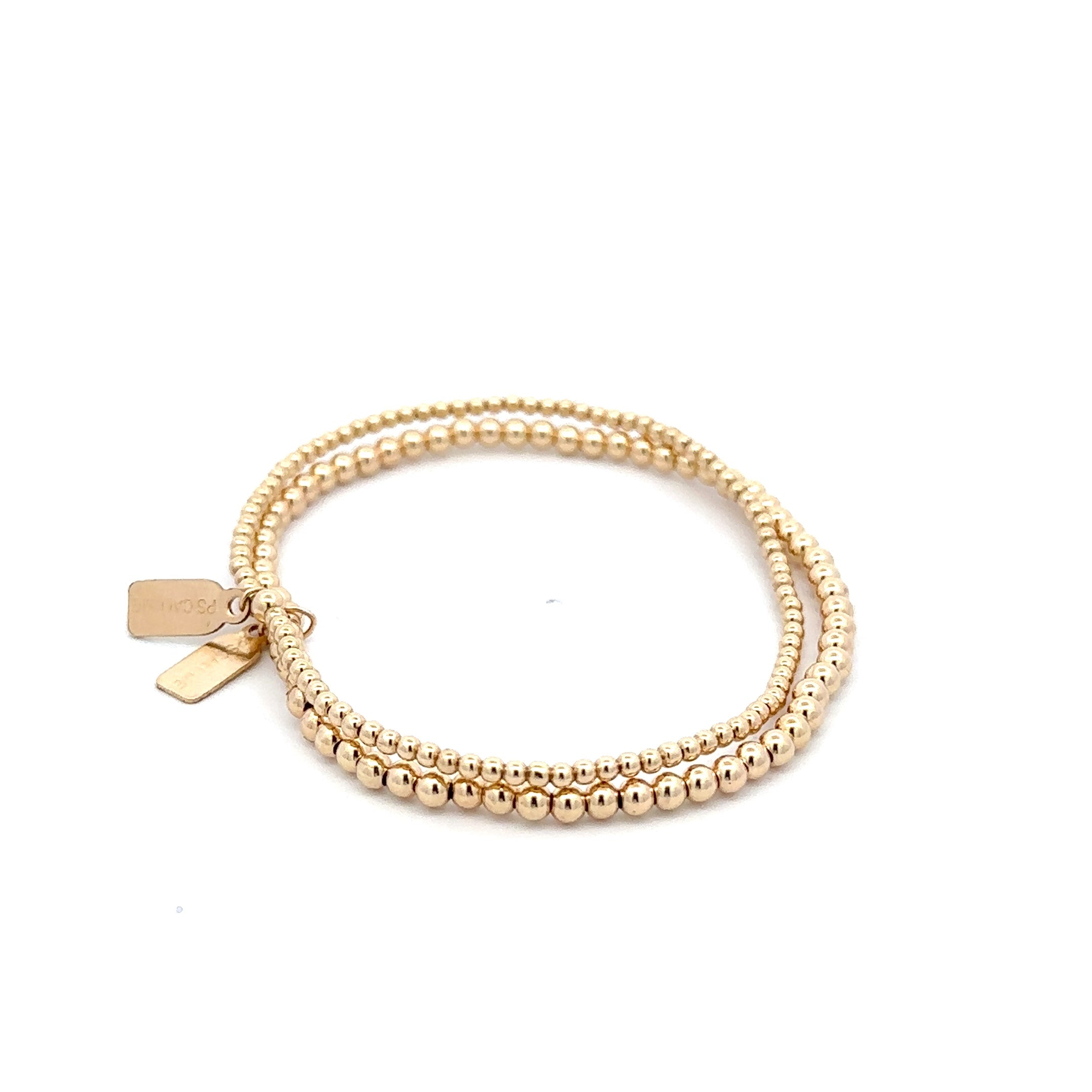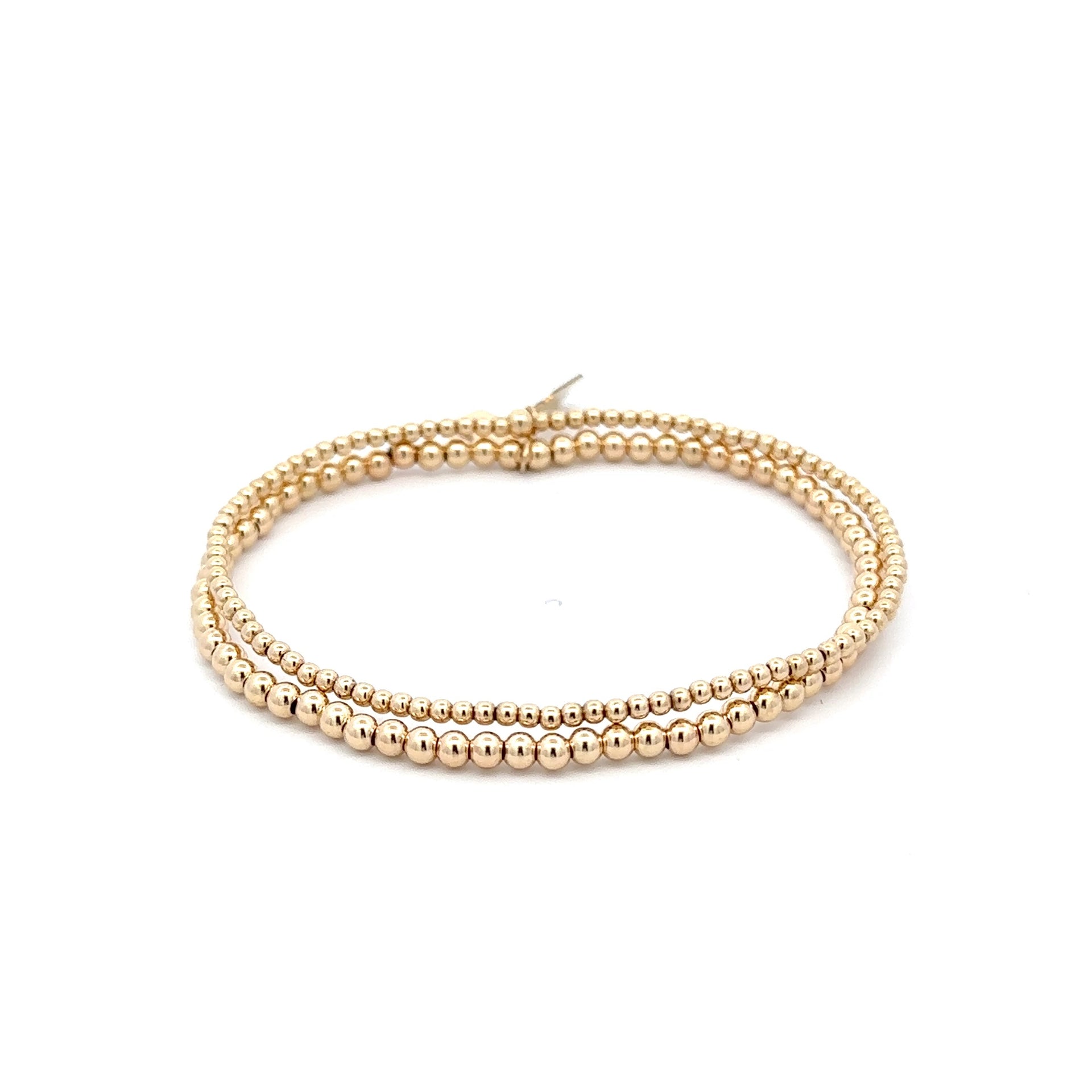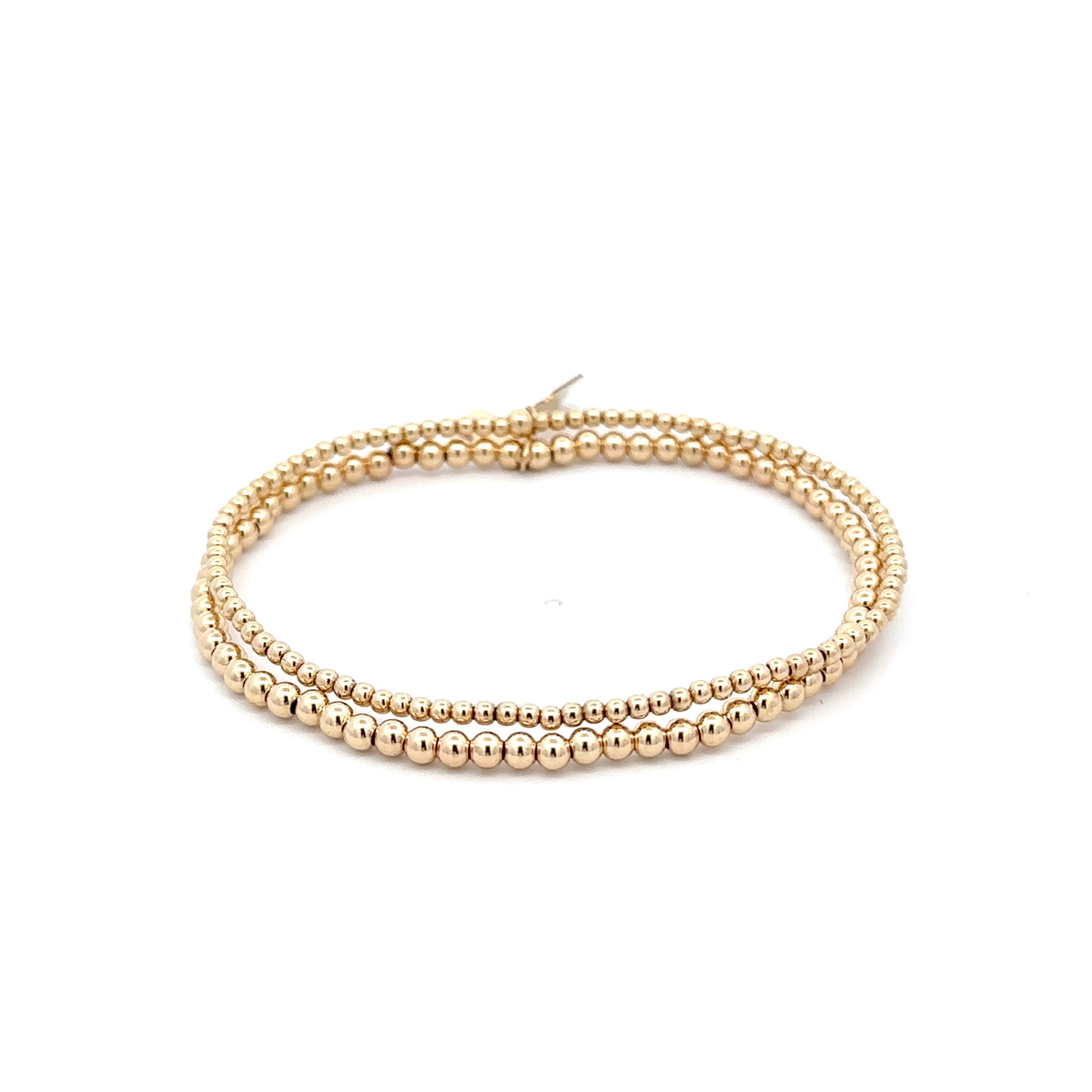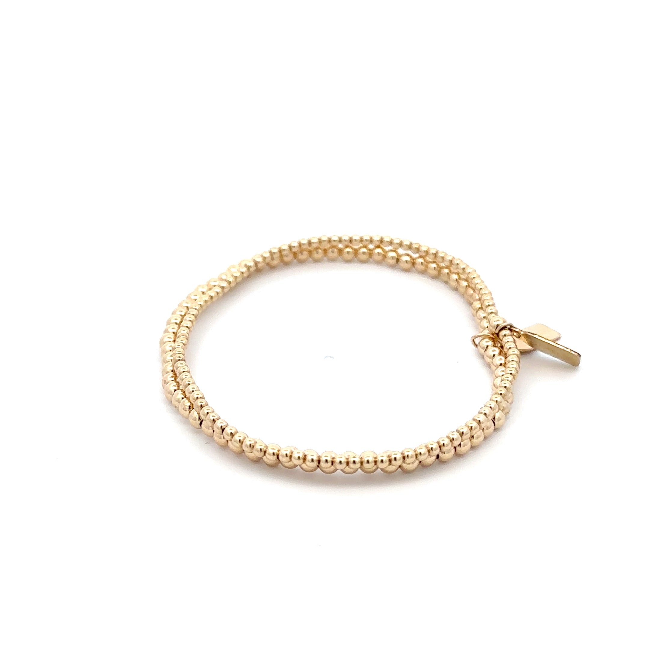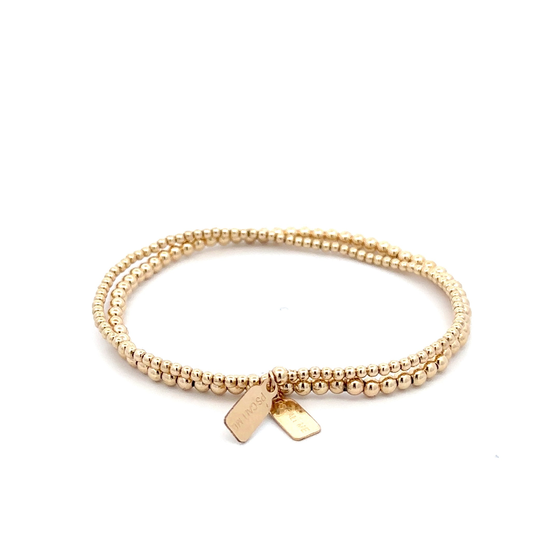 Set di braccialetti elastici con perle color oro.