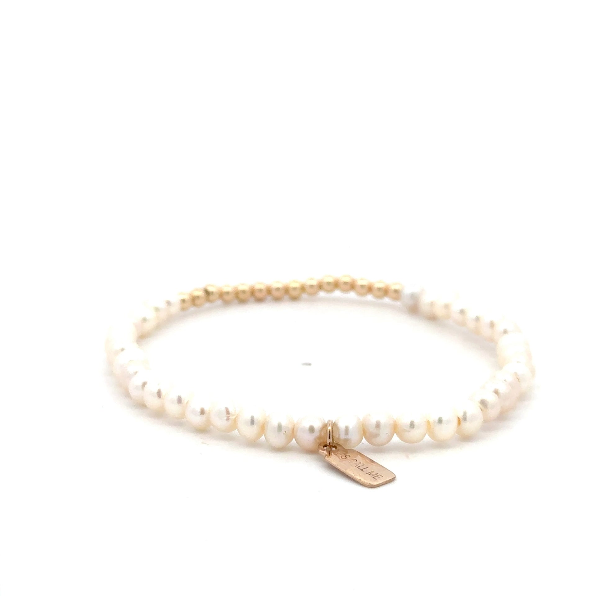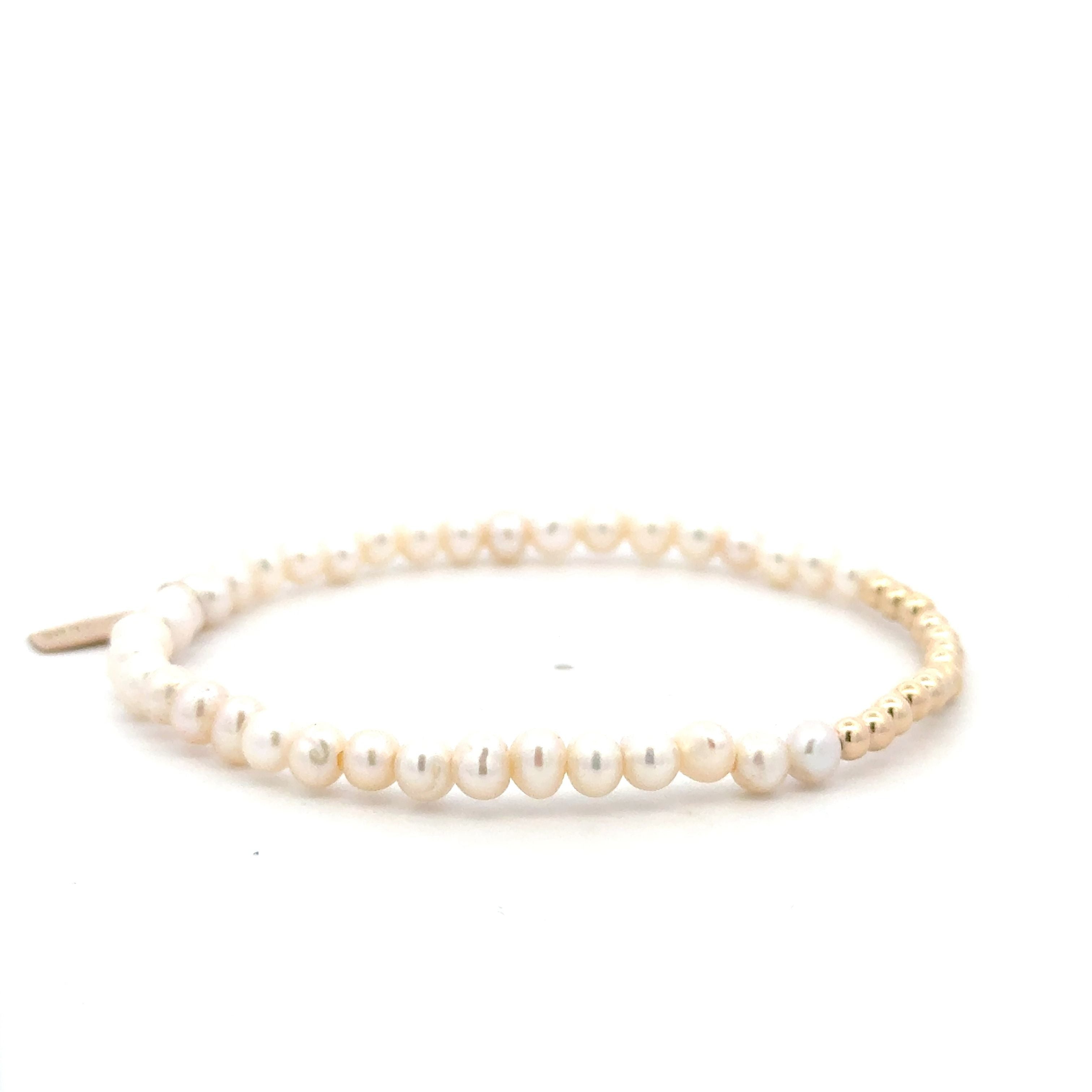 Bracciale elastico con pietre colorate e una fila di palline dorate.