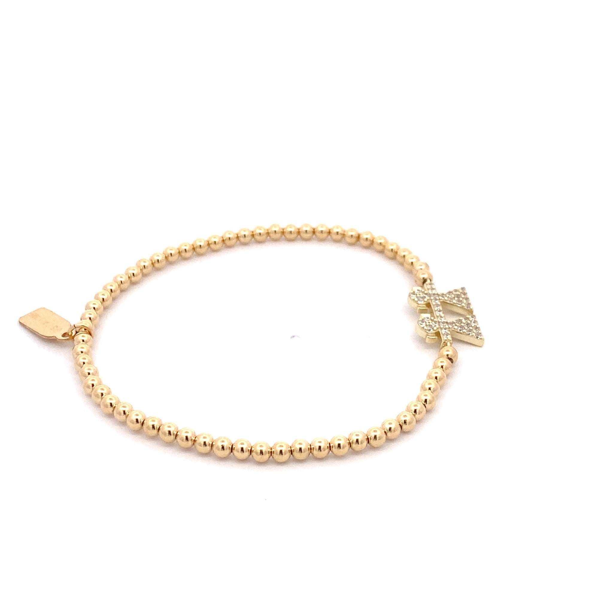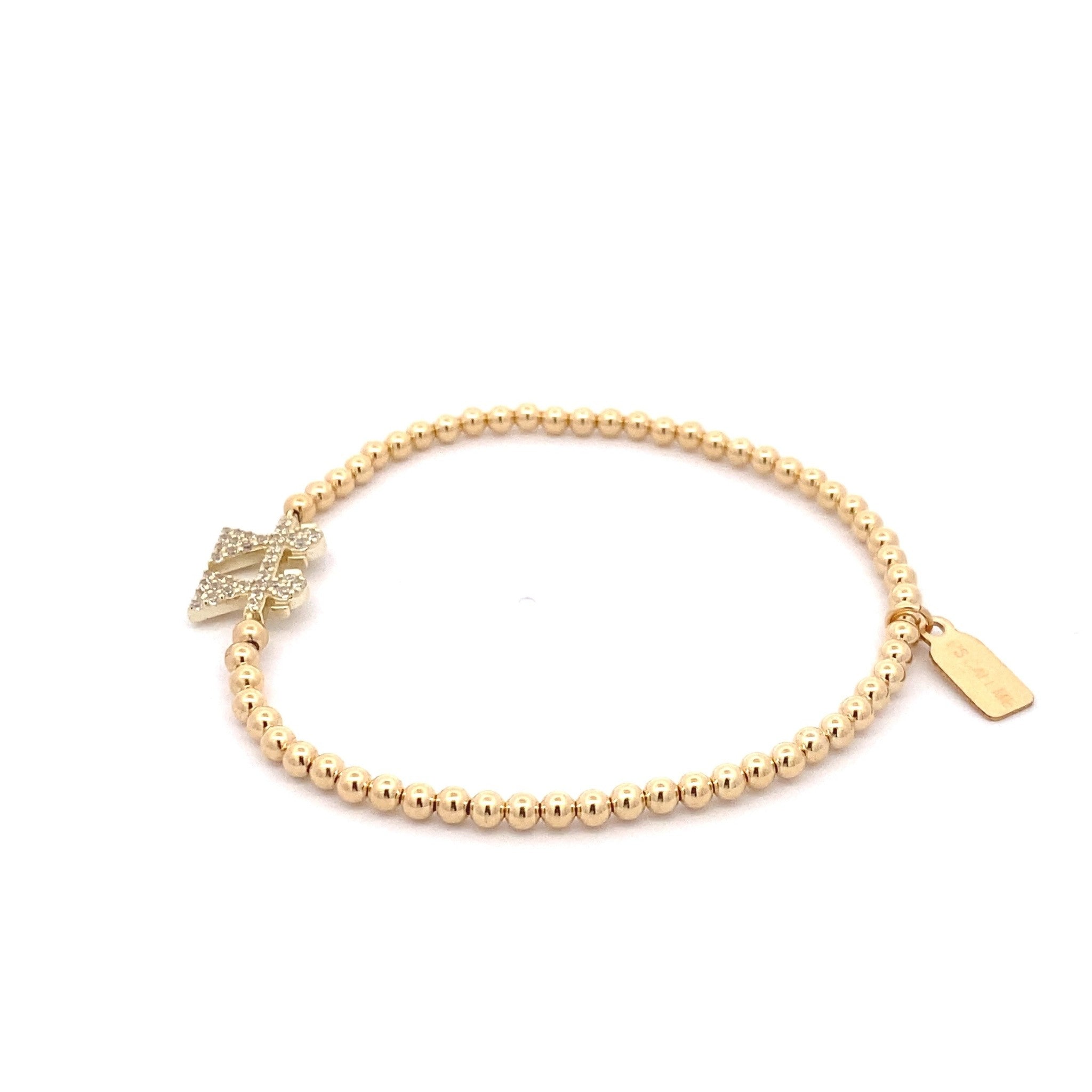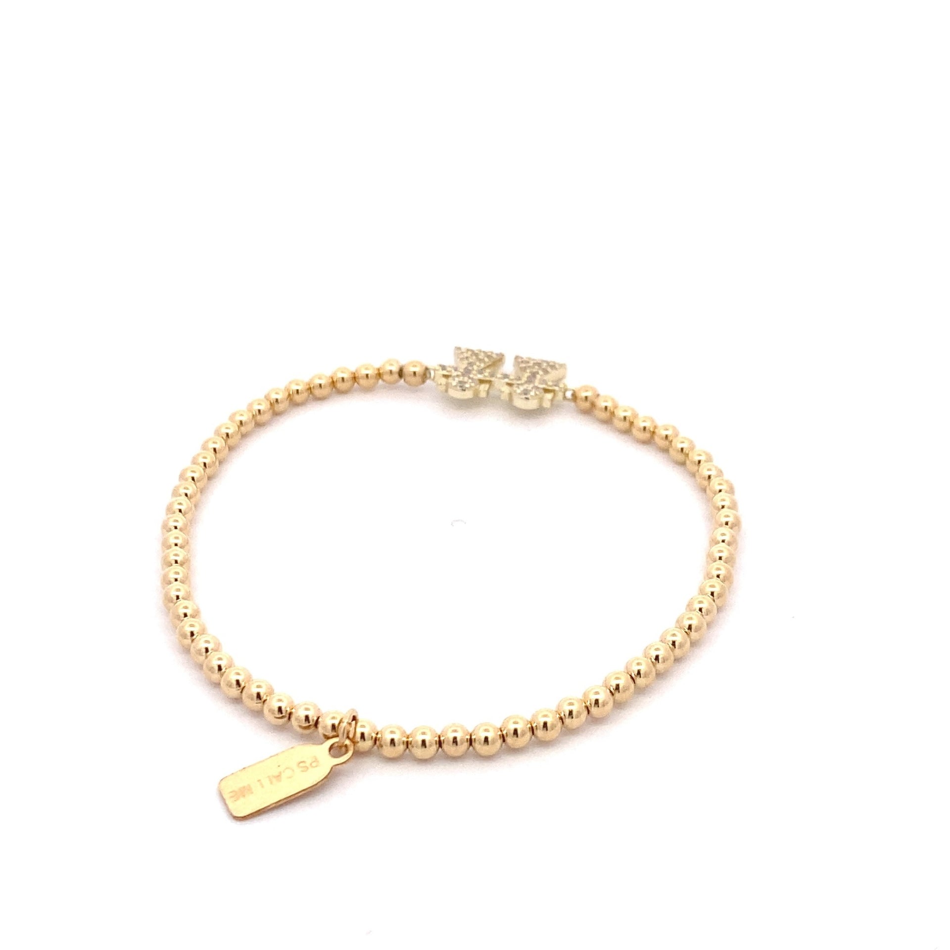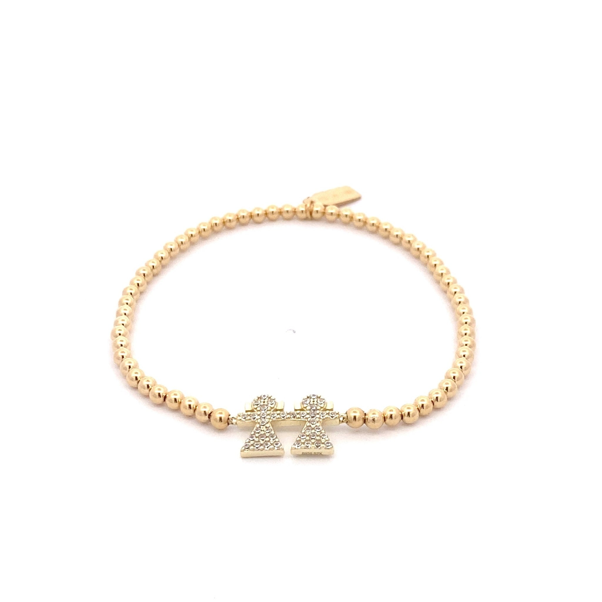 Elastische armband met goudkleurige balletjes en 2 meisjes