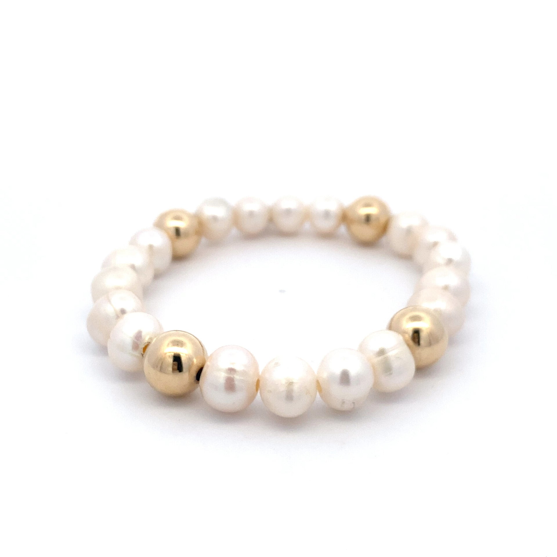Elastische armband met grote parels en 4 goudkleurige balletjes