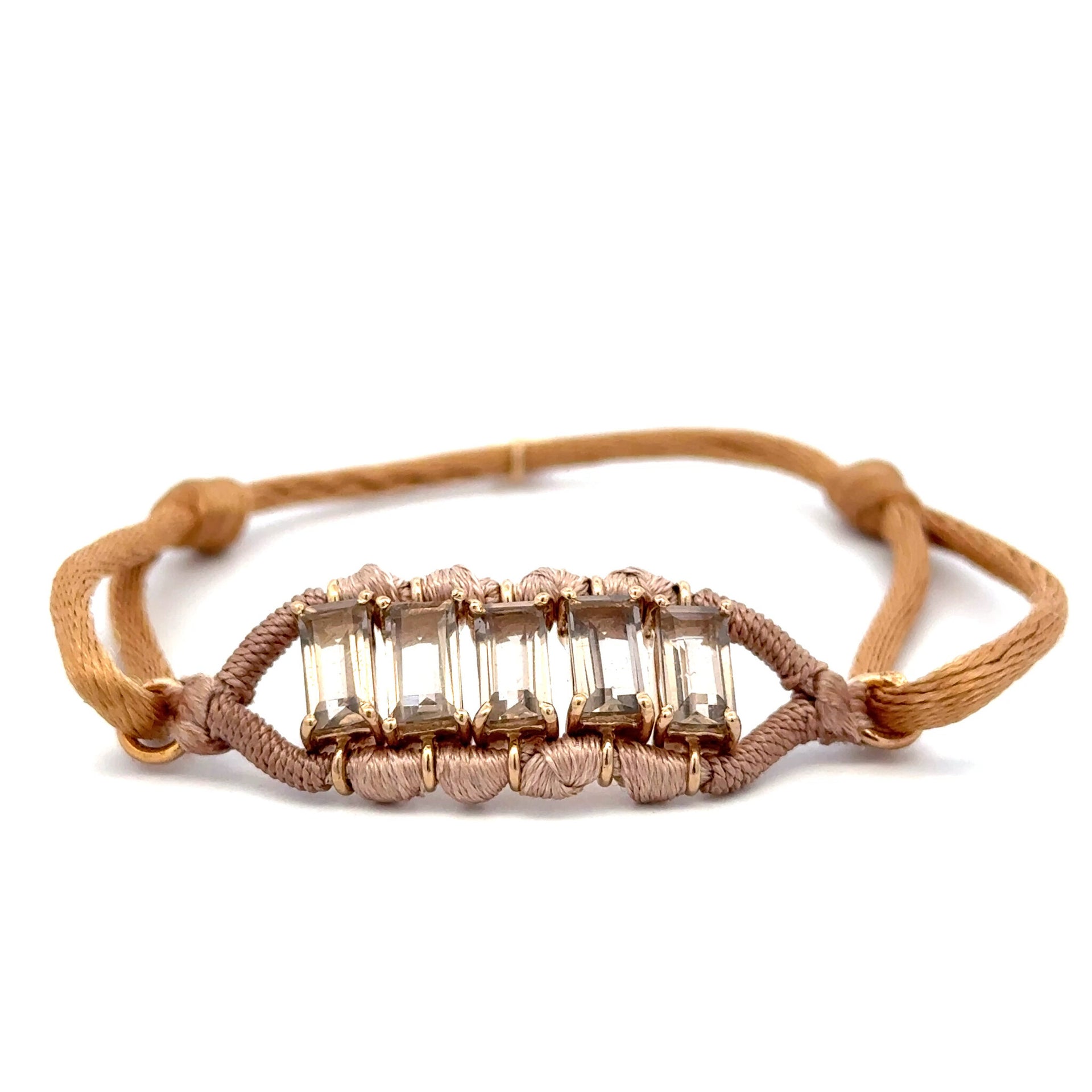 Armband van gekleurd koord met een bar met stenen