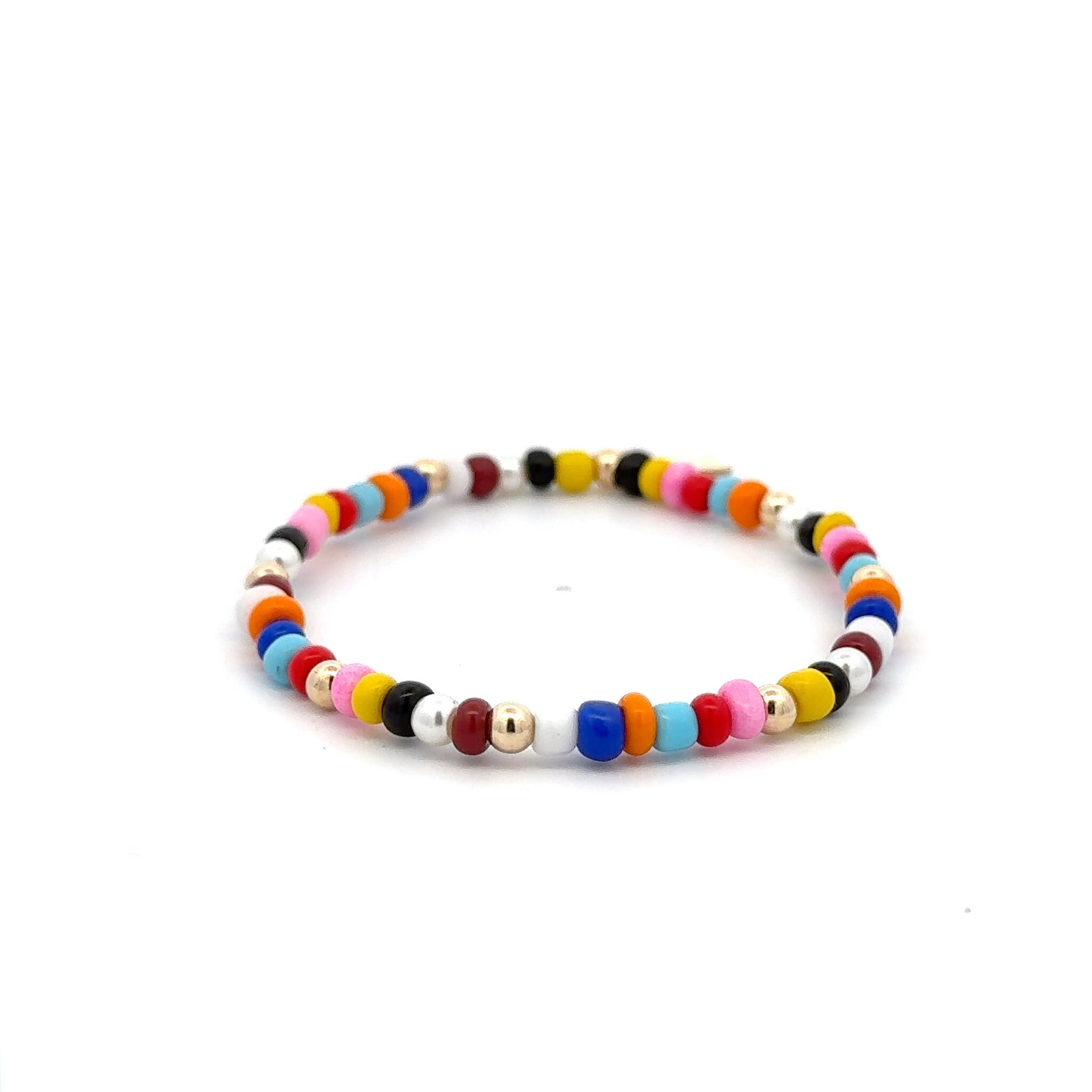 Material: gold coloured that won’t fade and synthetic colourful beads