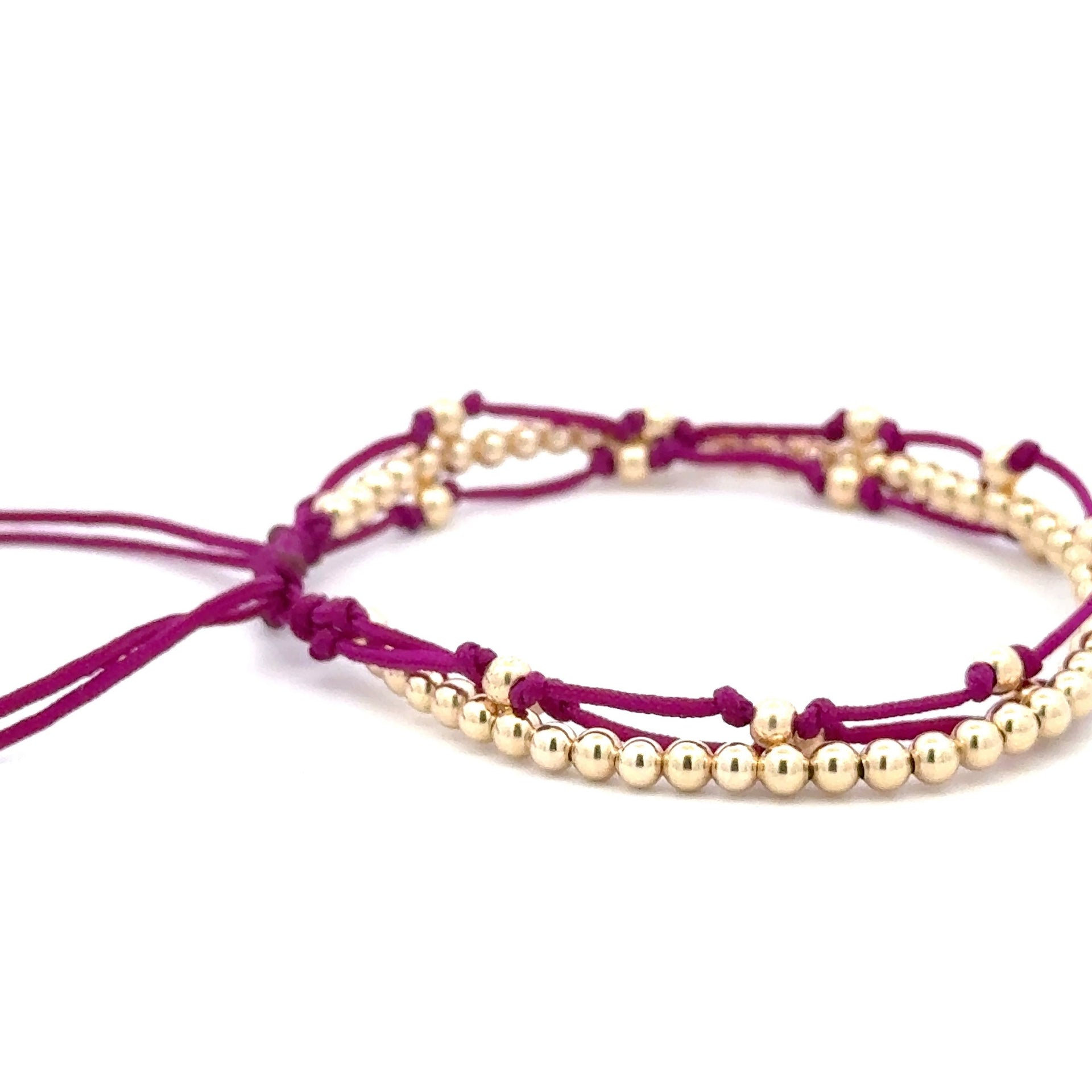 Bracelet made of colored cord with gold colored balls.