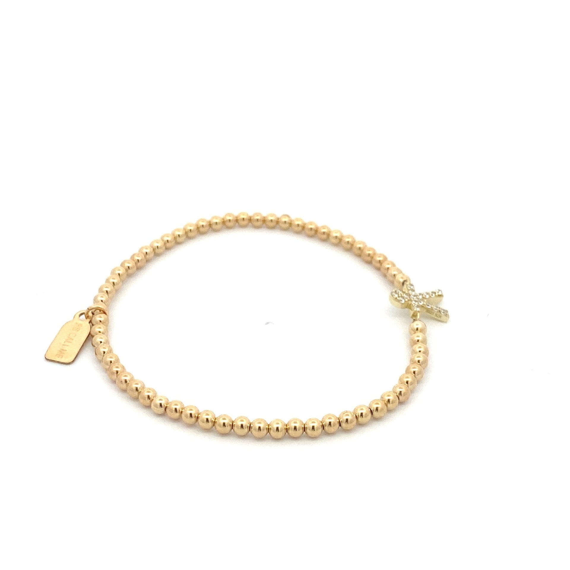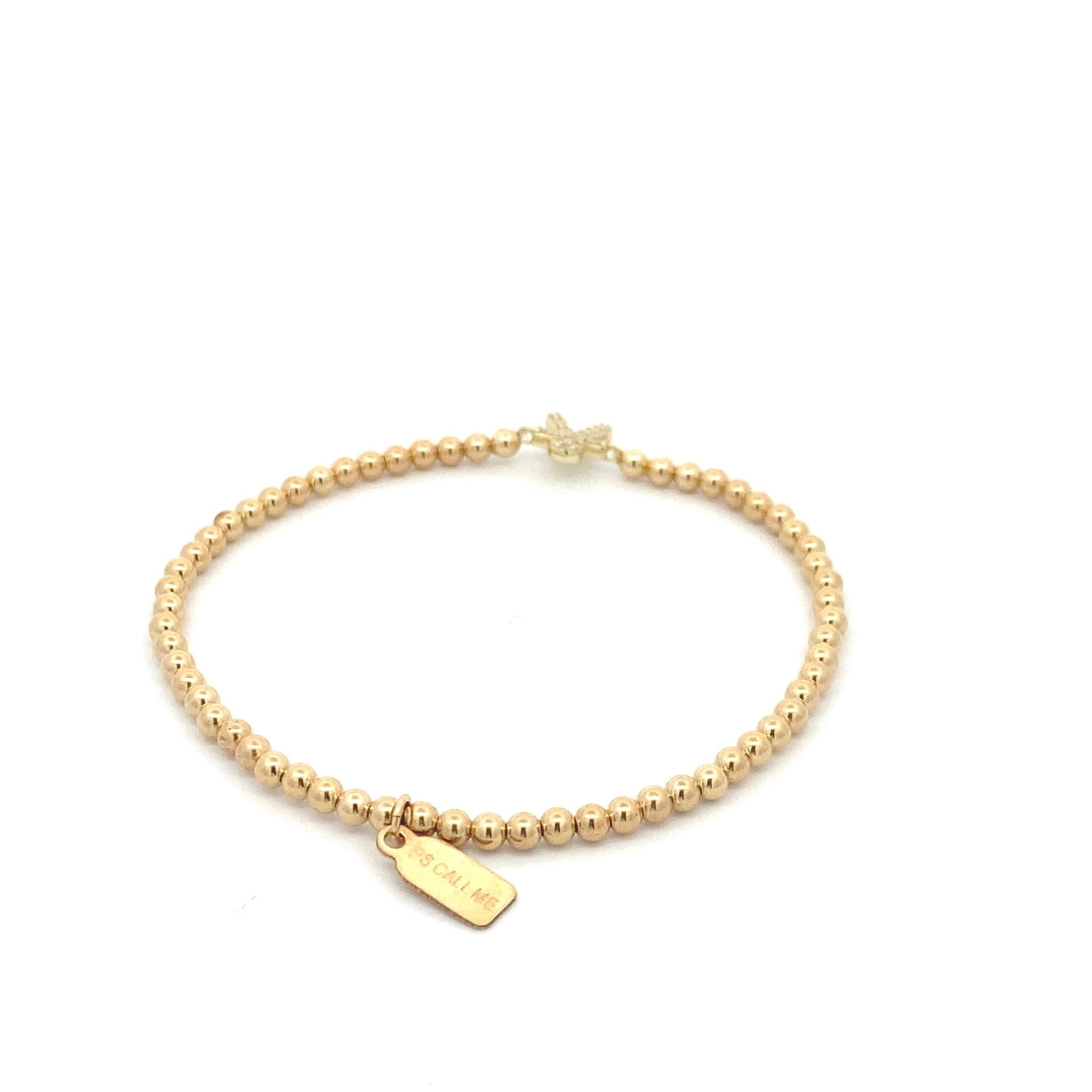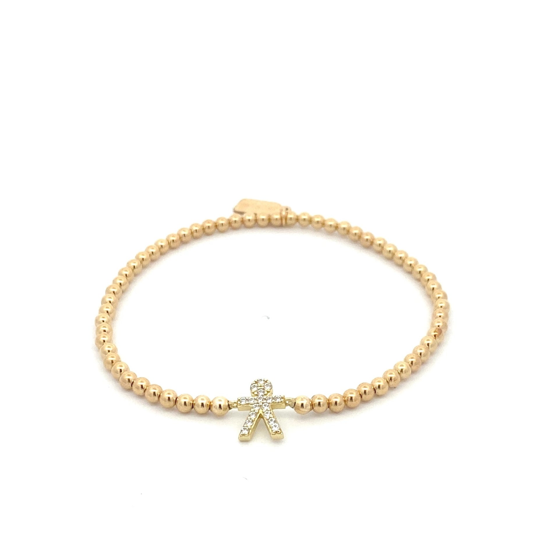 Elastisches Armband mit goldfarbenen Perlen und einem jungenförmigen Anhänger