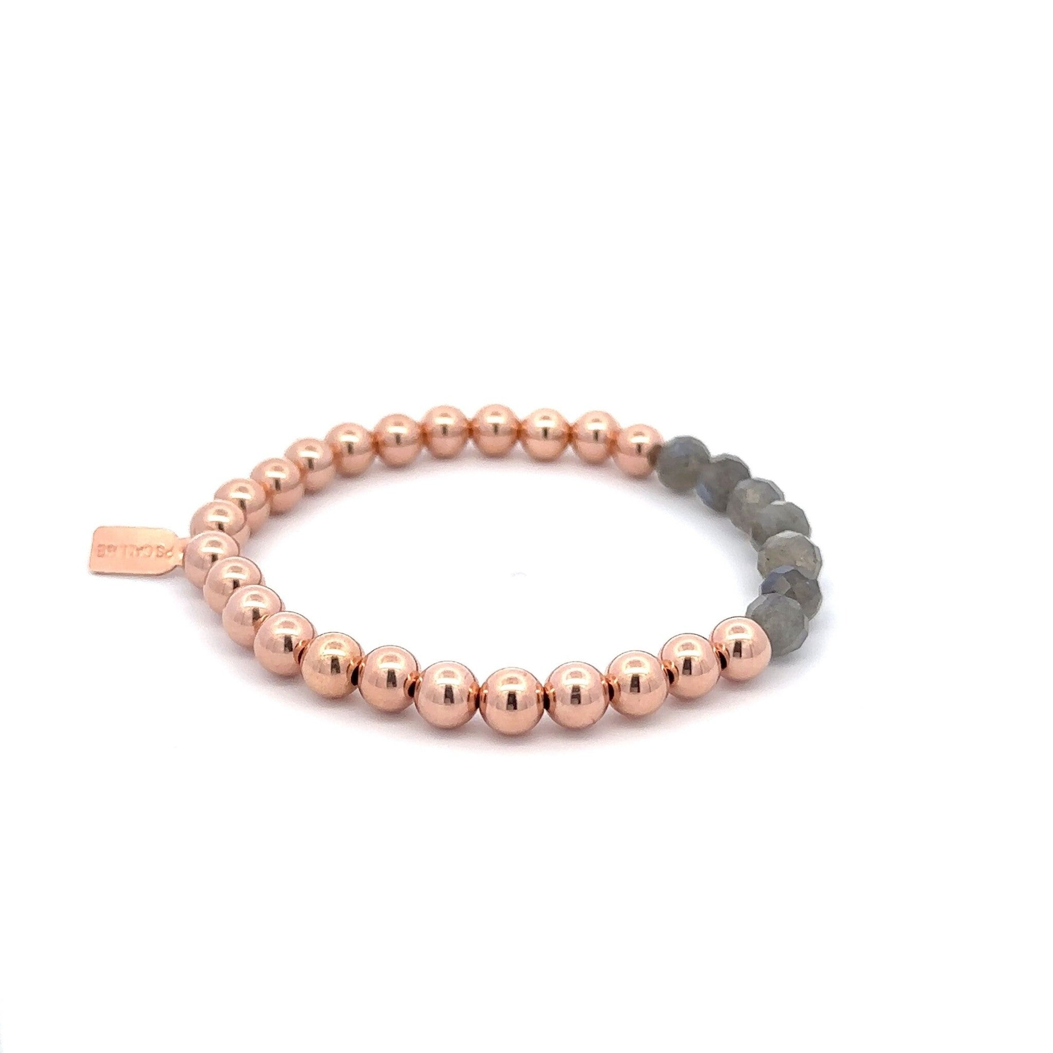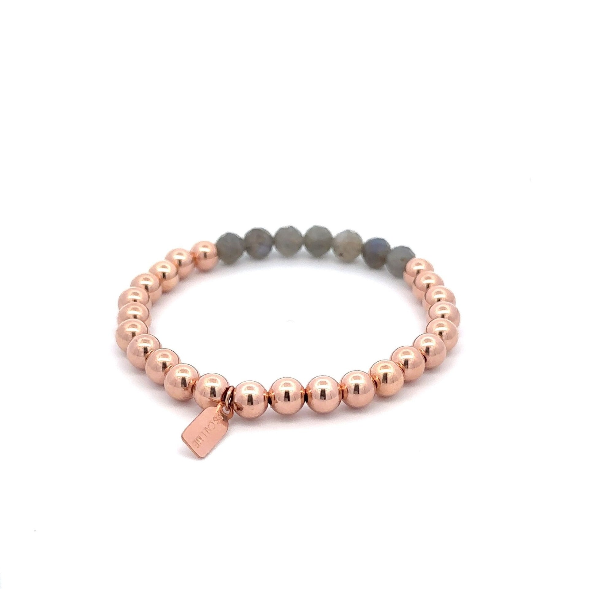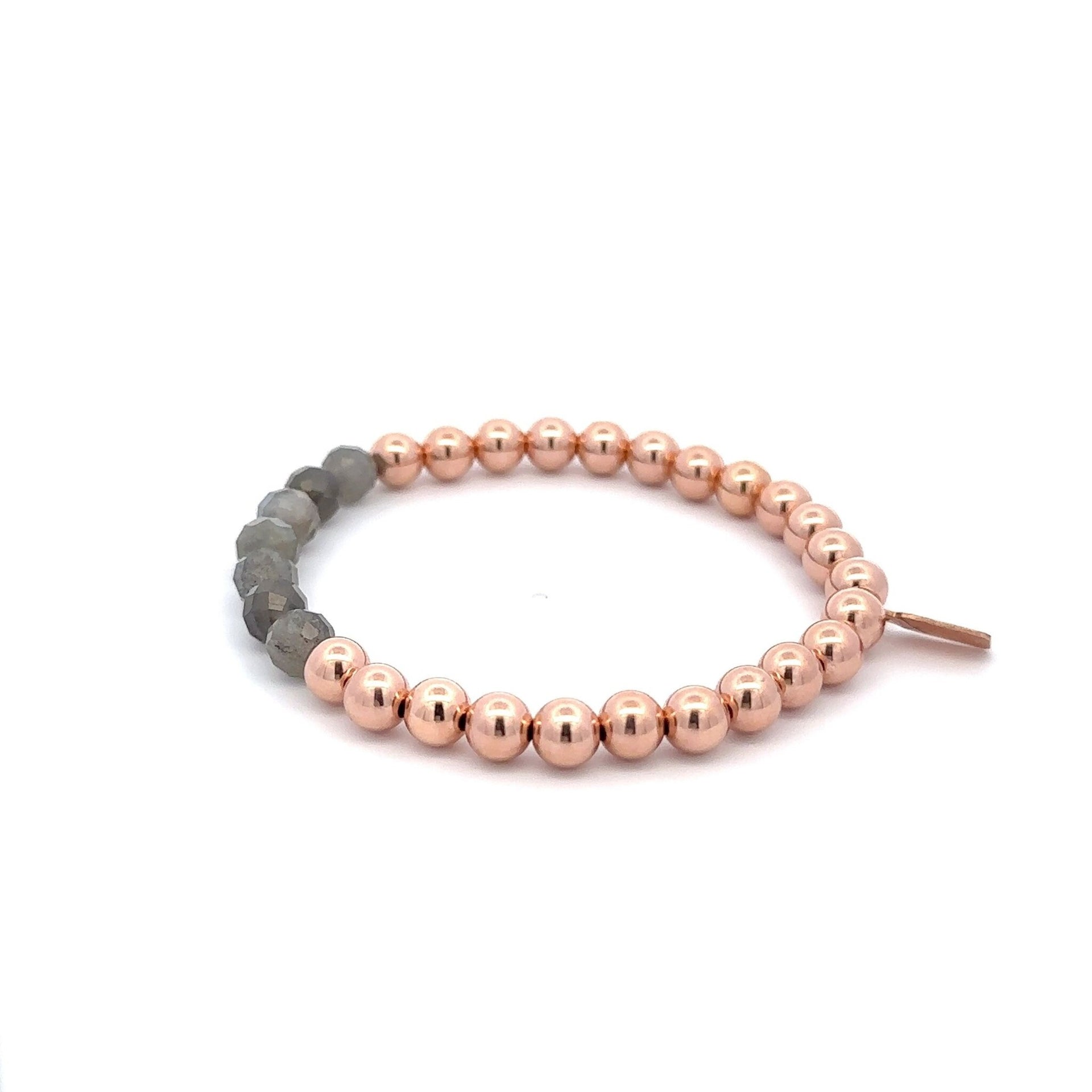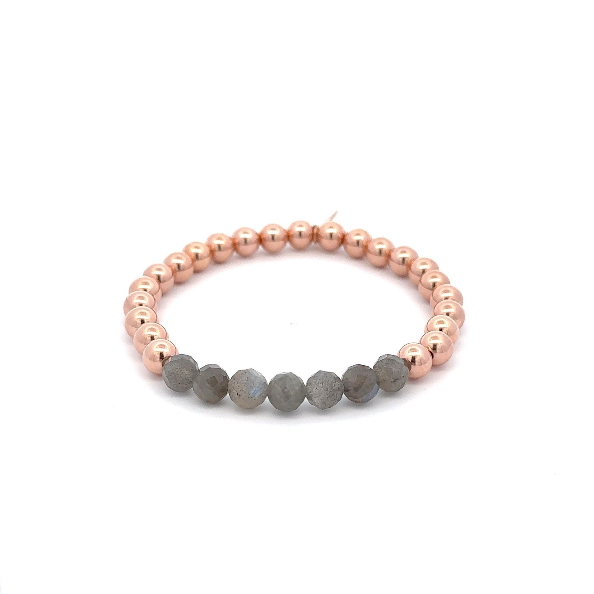 Elastisches Armband mit Steinen und einer Reihe roségoldfarbener Perlen