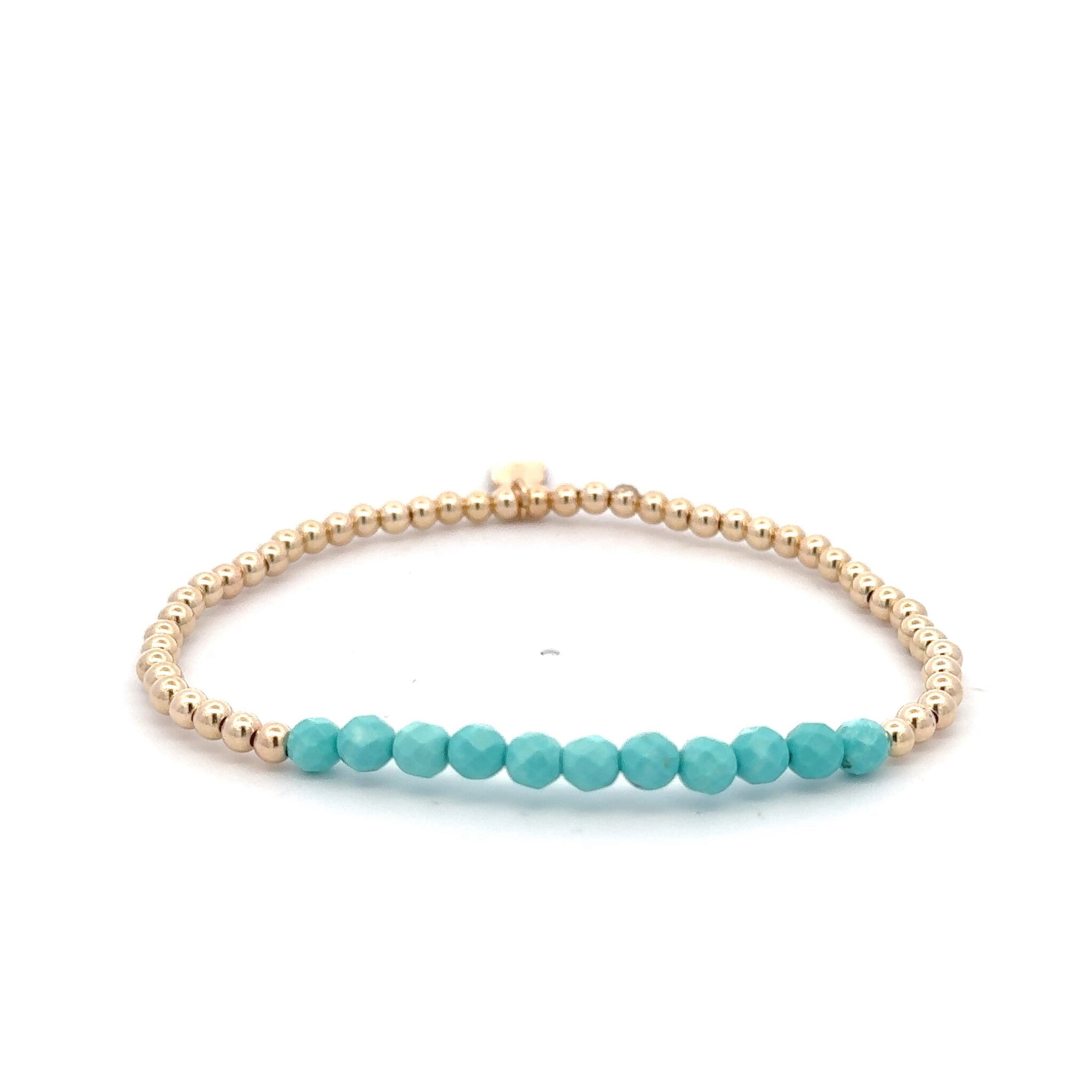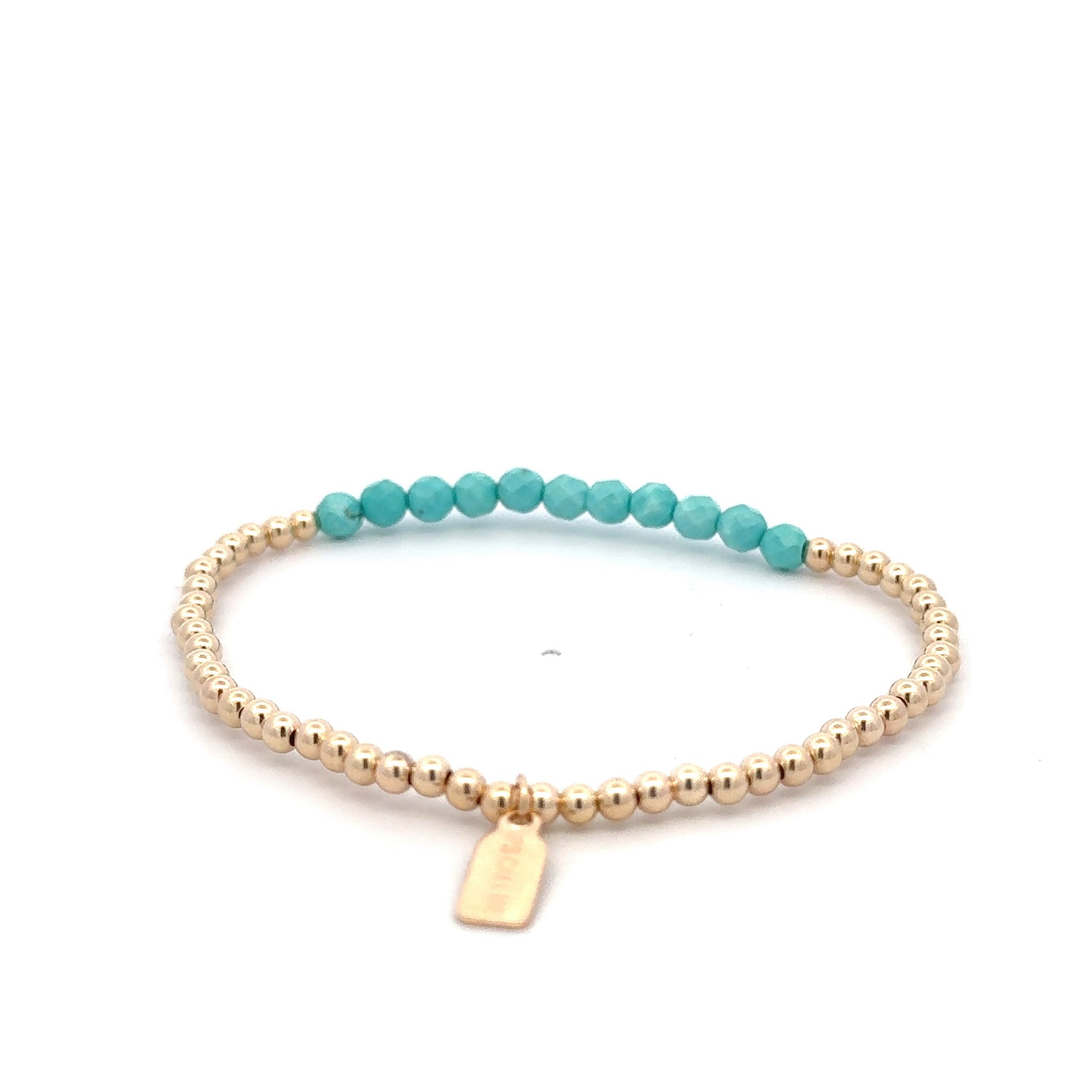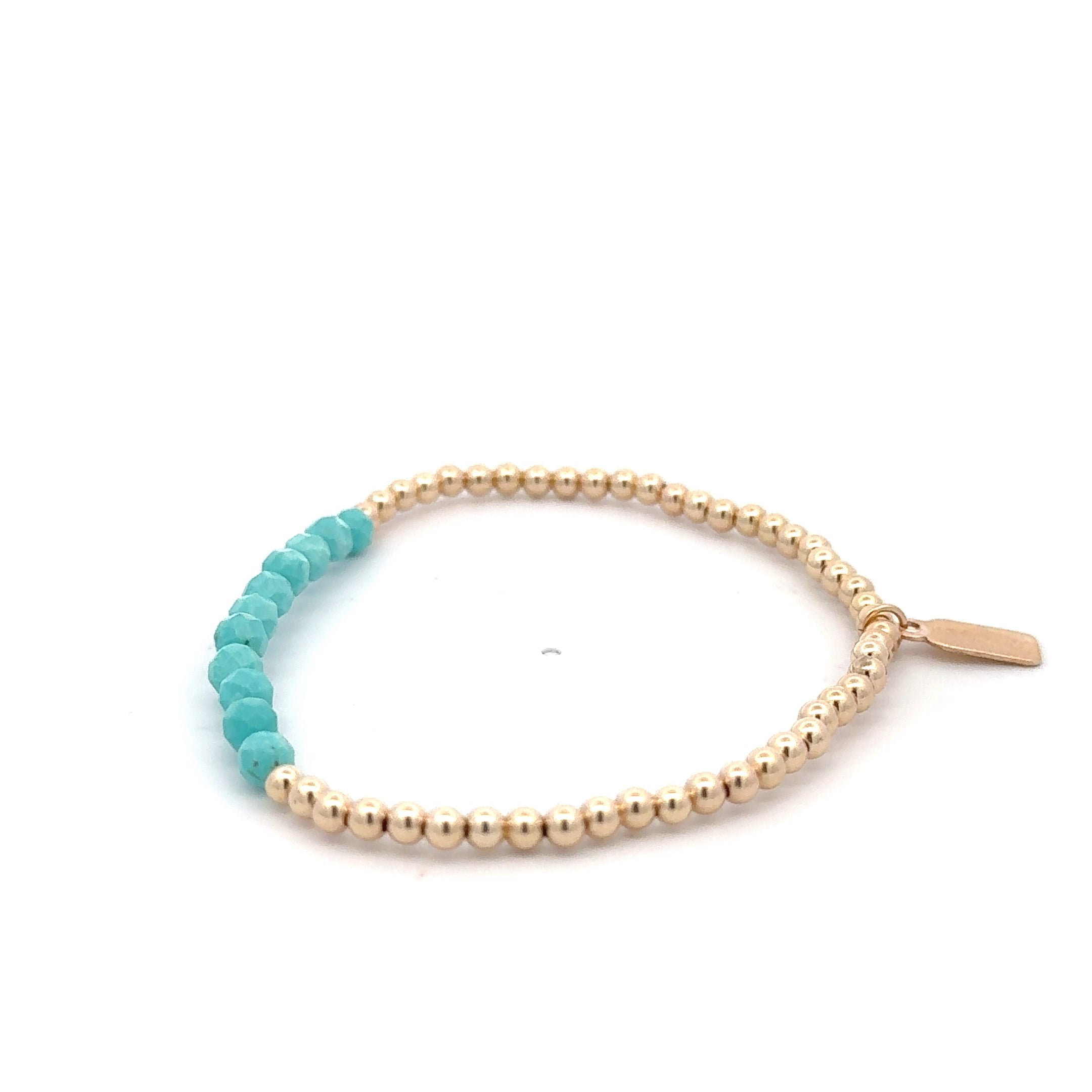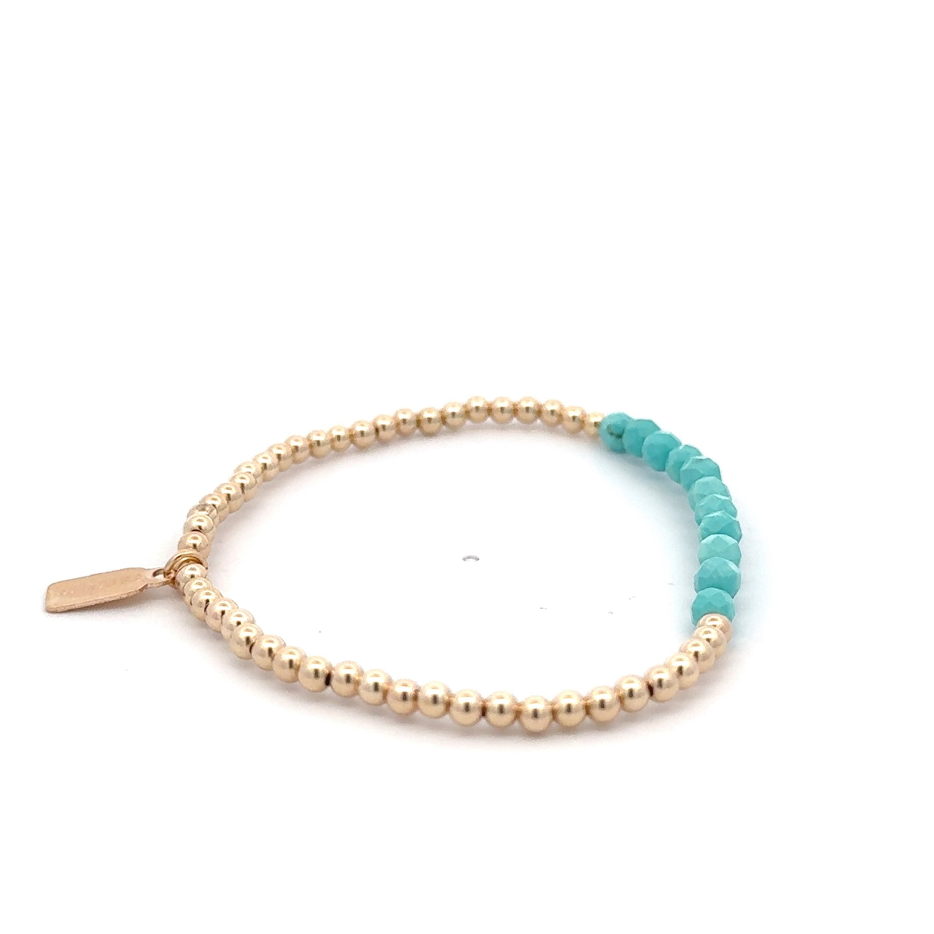 Elastisches Armband mit goldfarbenen Perlen und einer Reihe farbiger Steine
