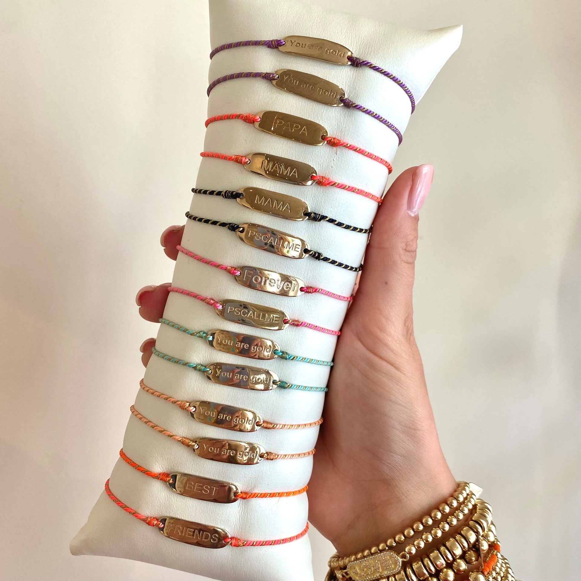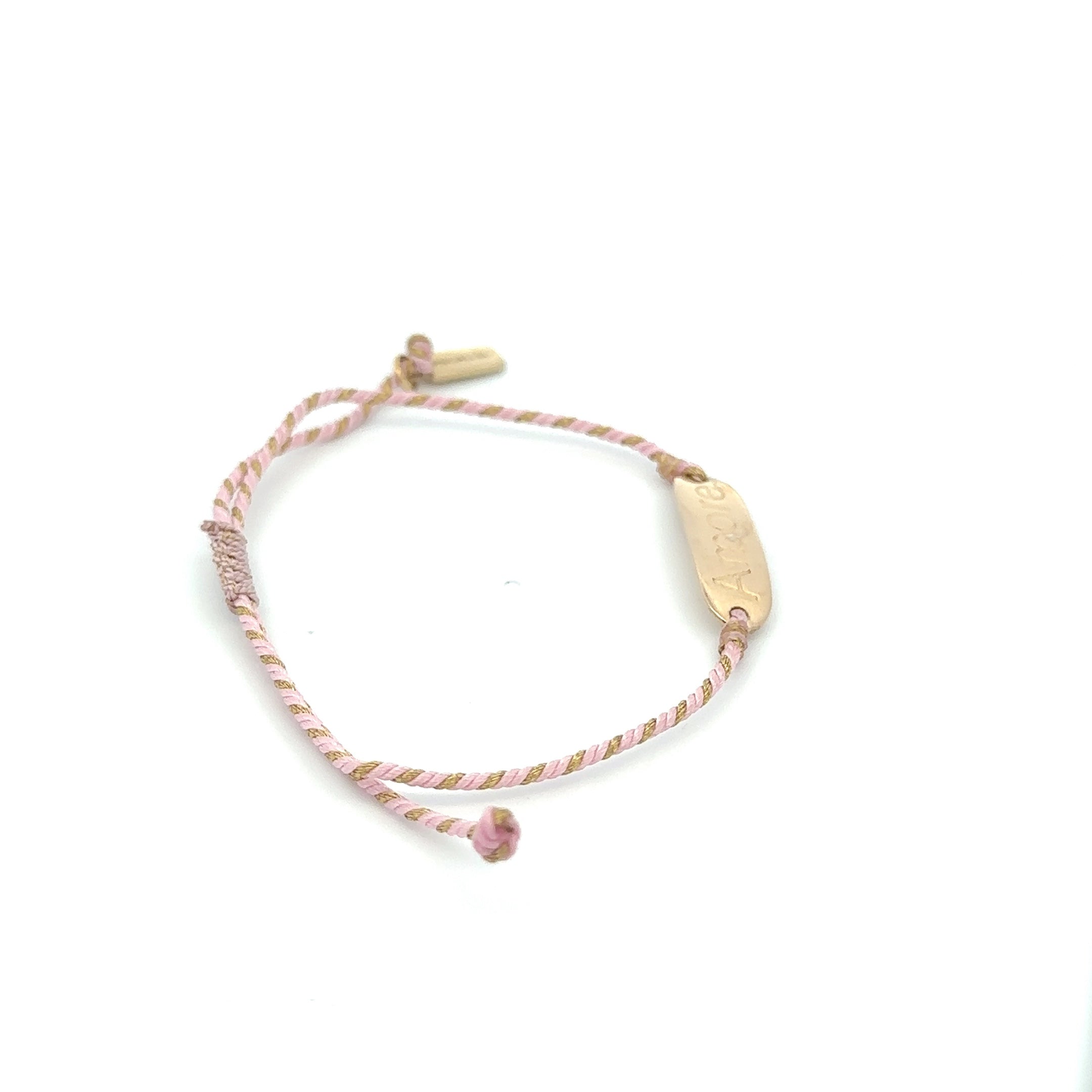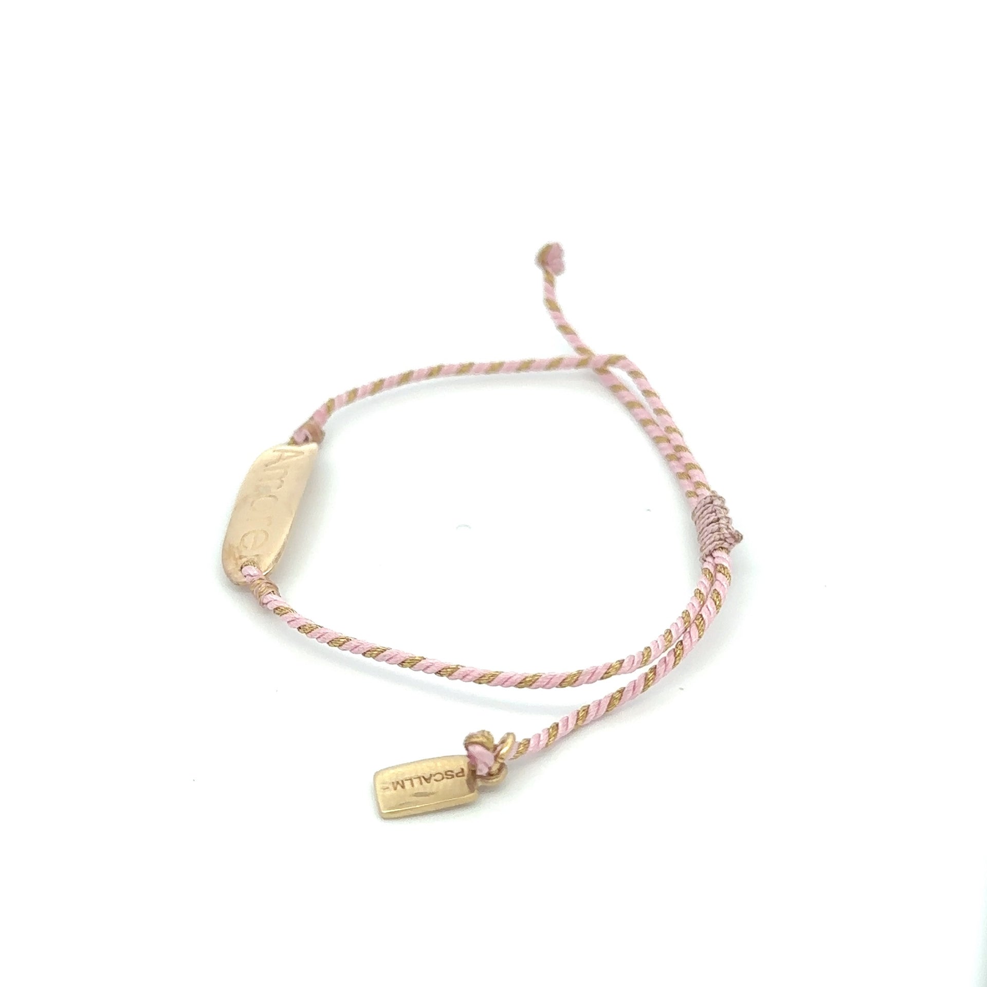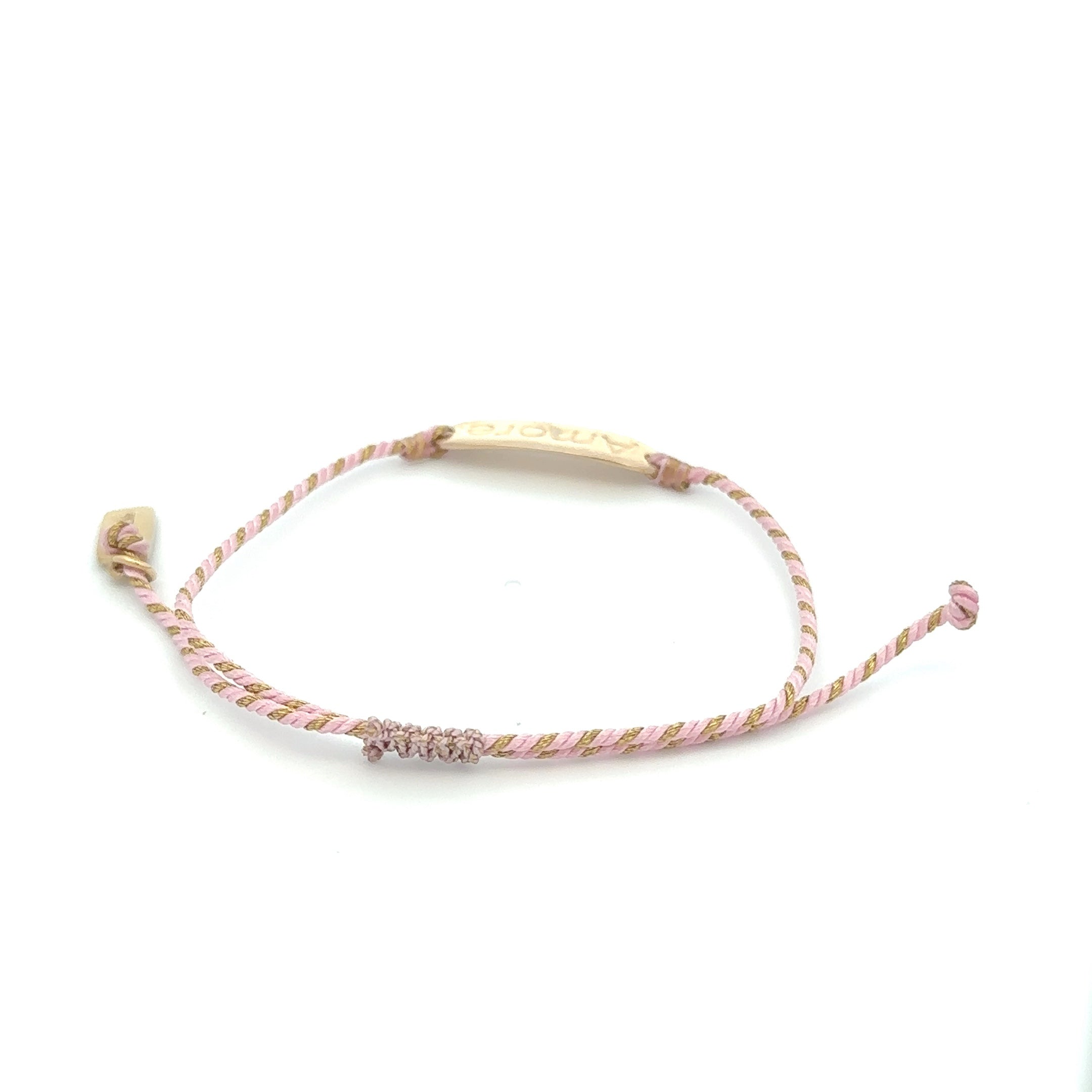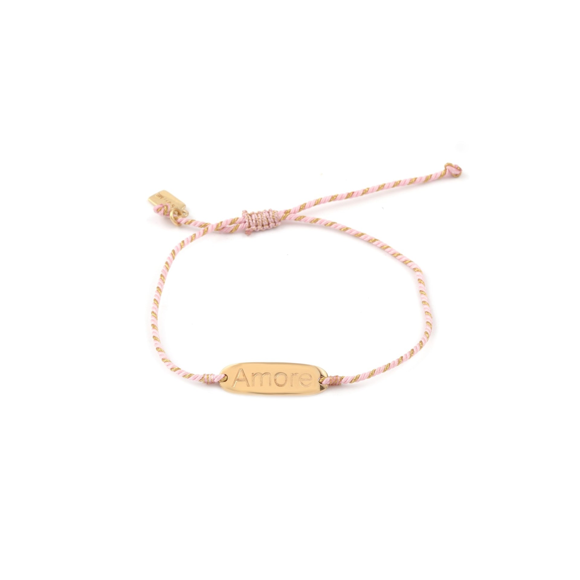 Armband mit einem goldfarbenen Charm mit der Gravur „Amore“