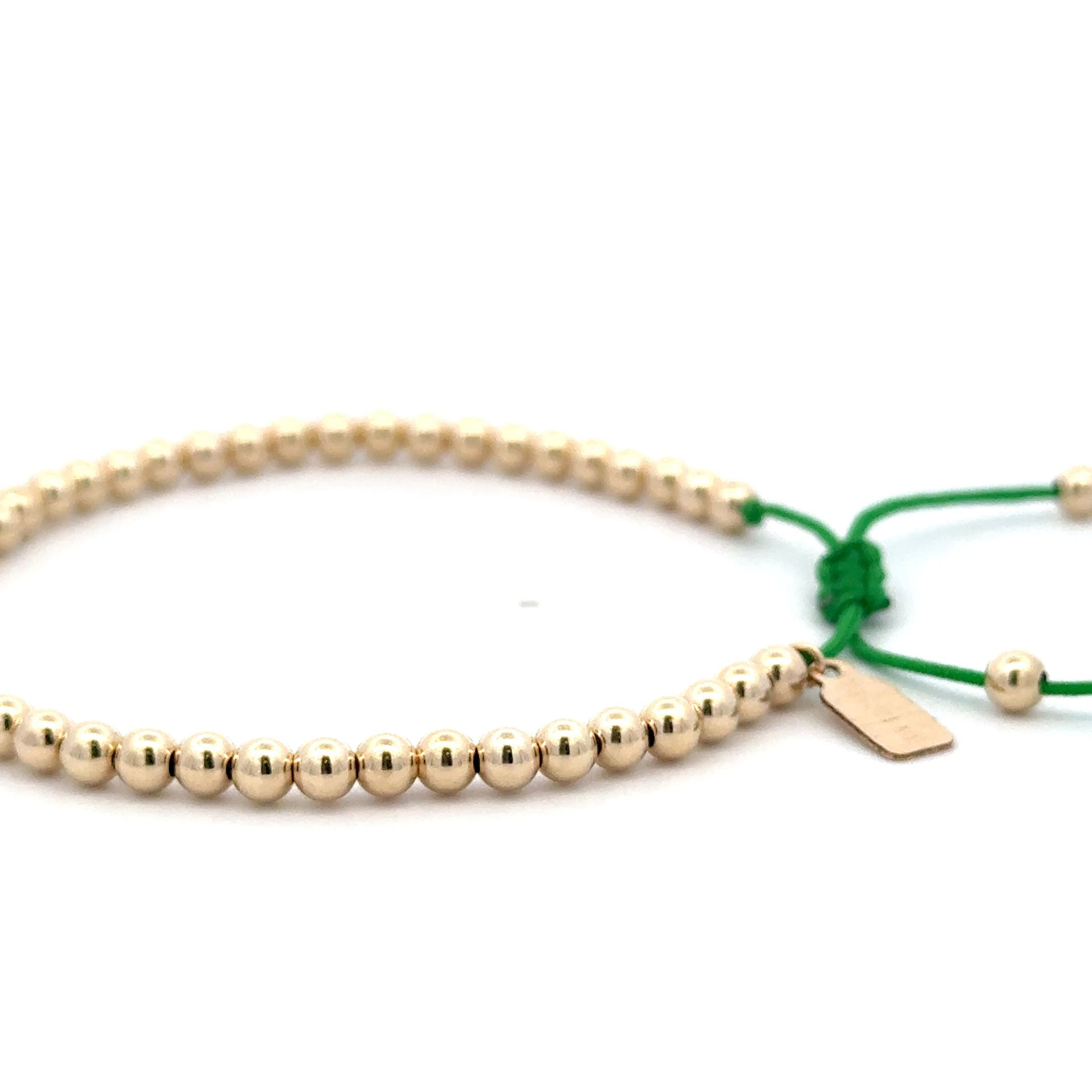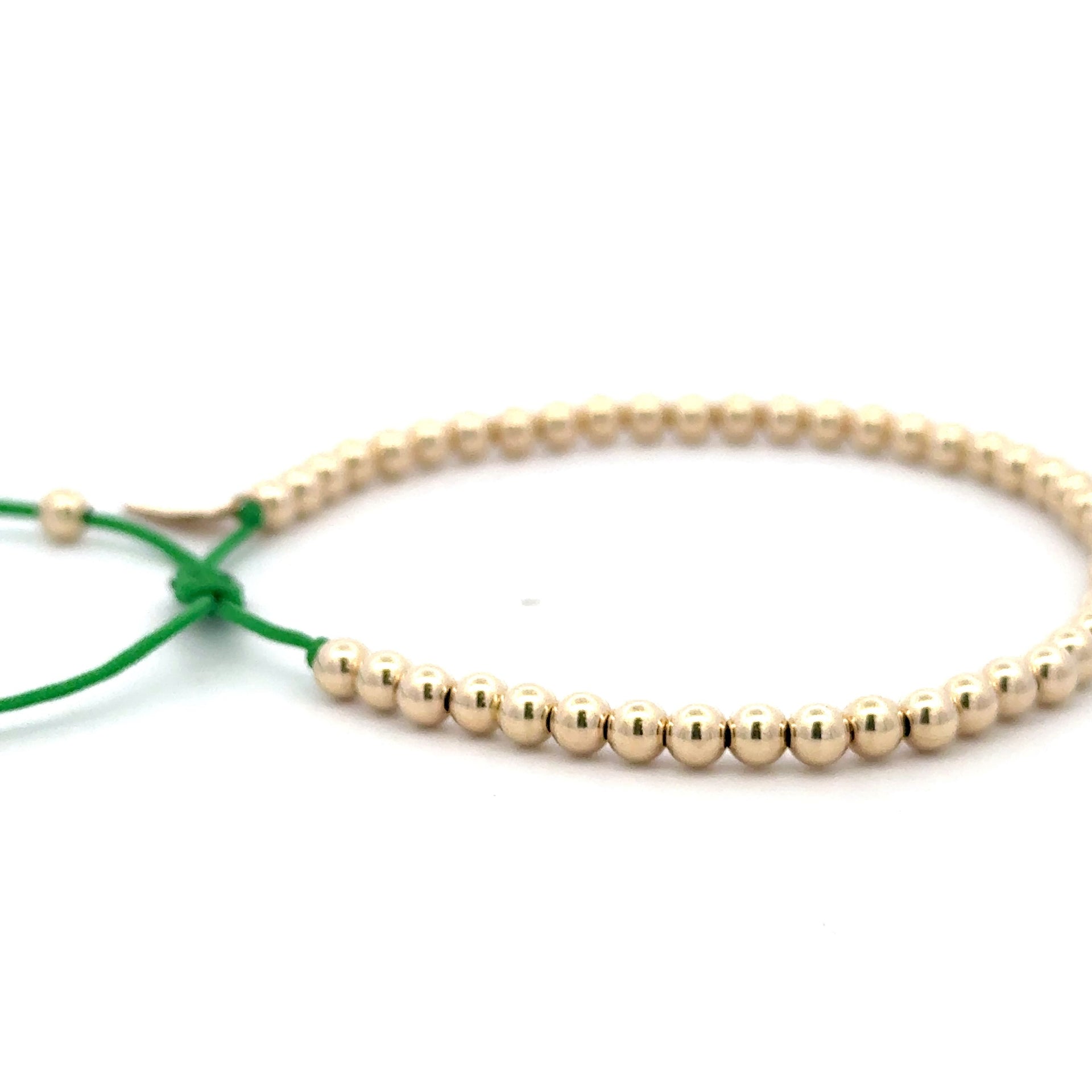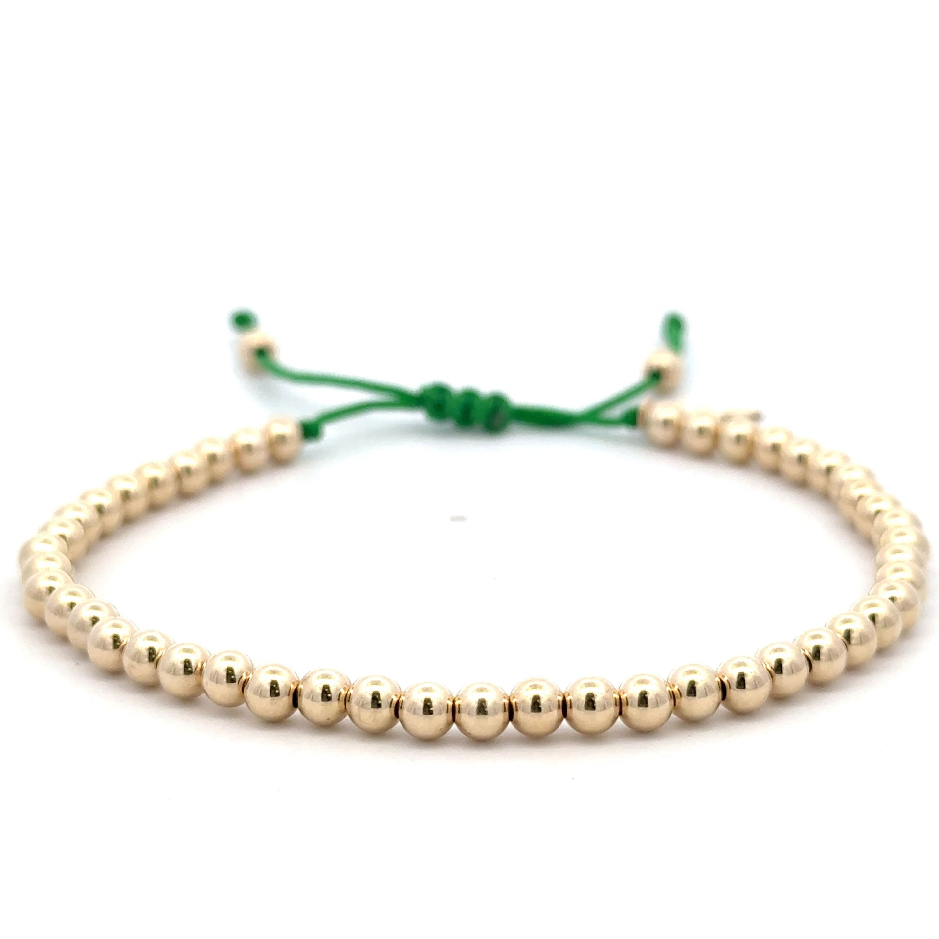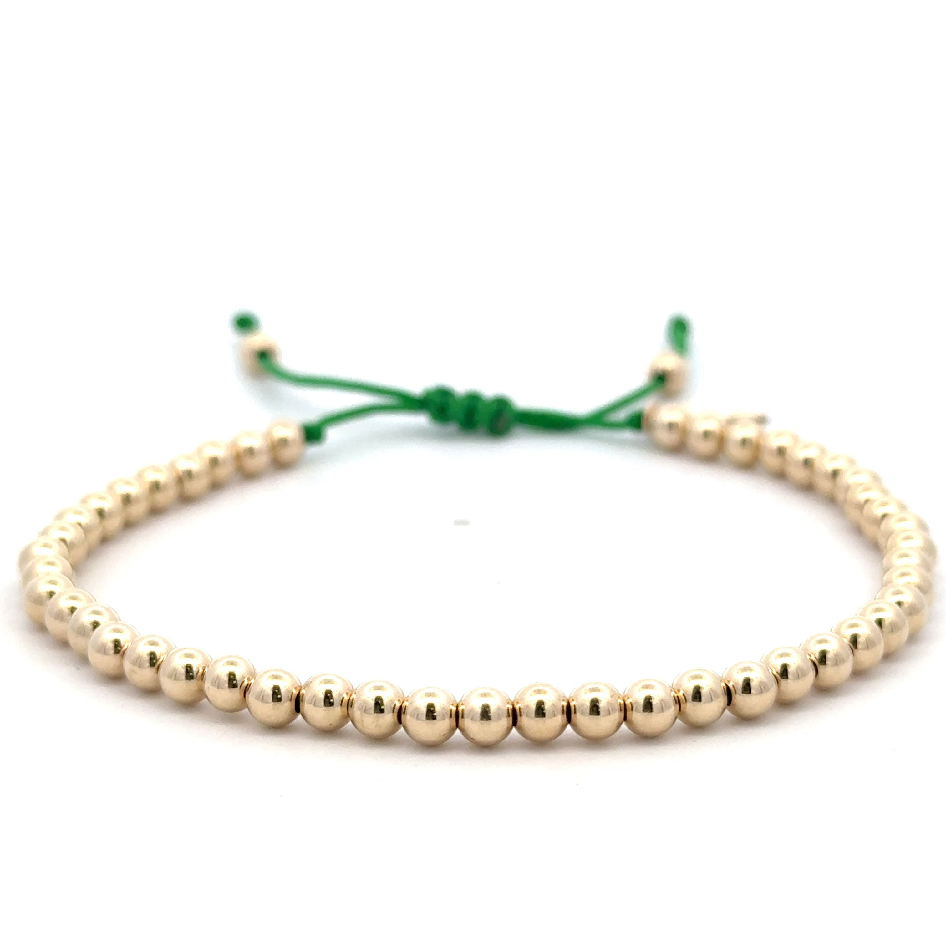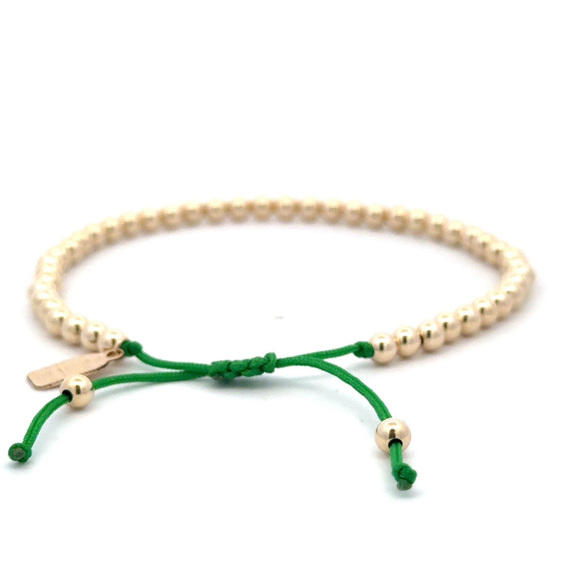 Bracelet made of colored cord with gold colored balls.