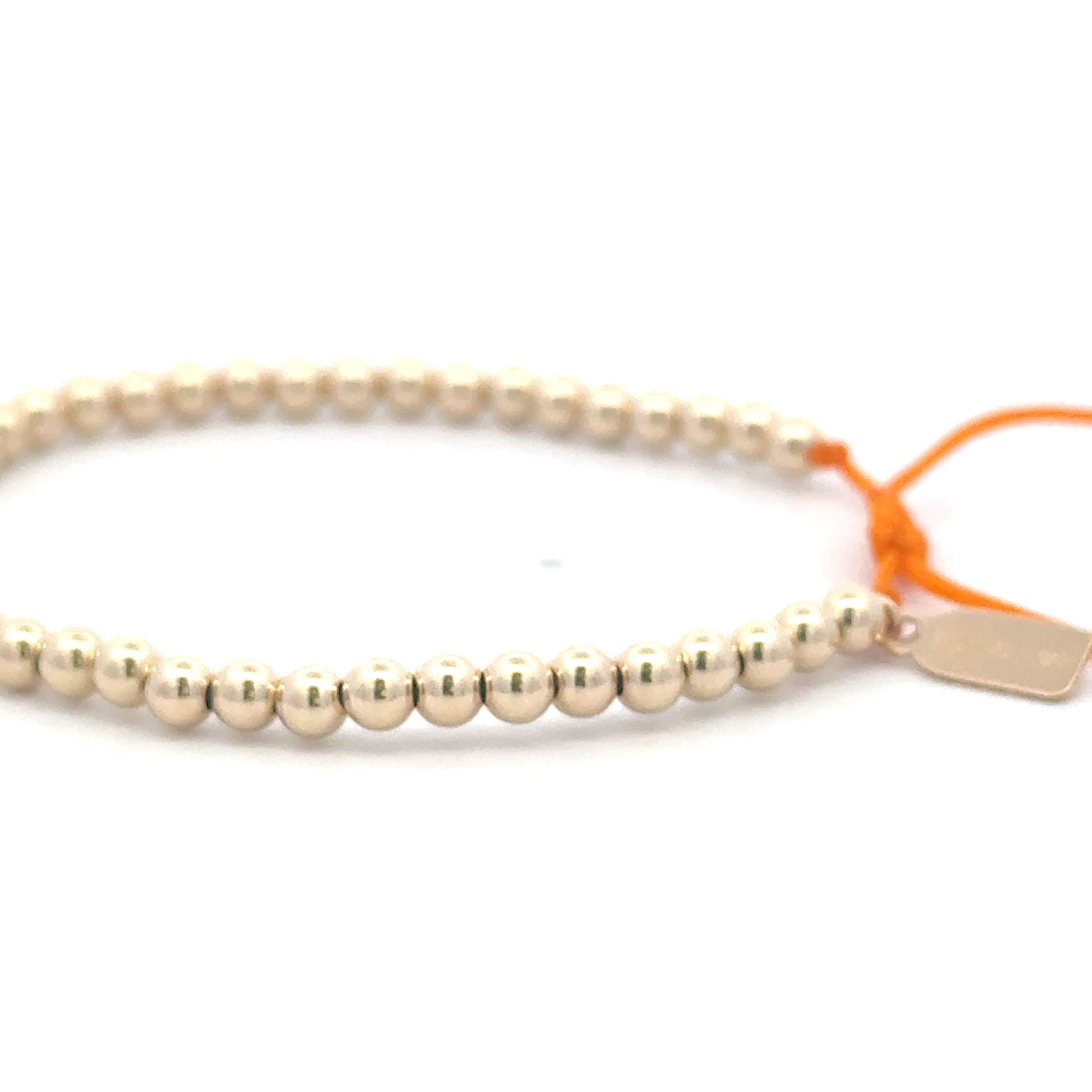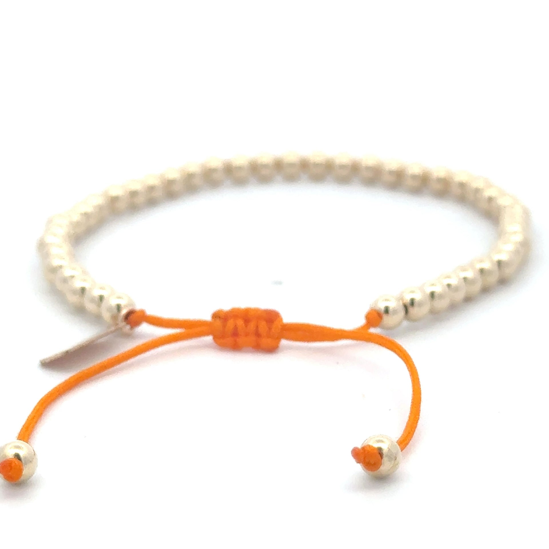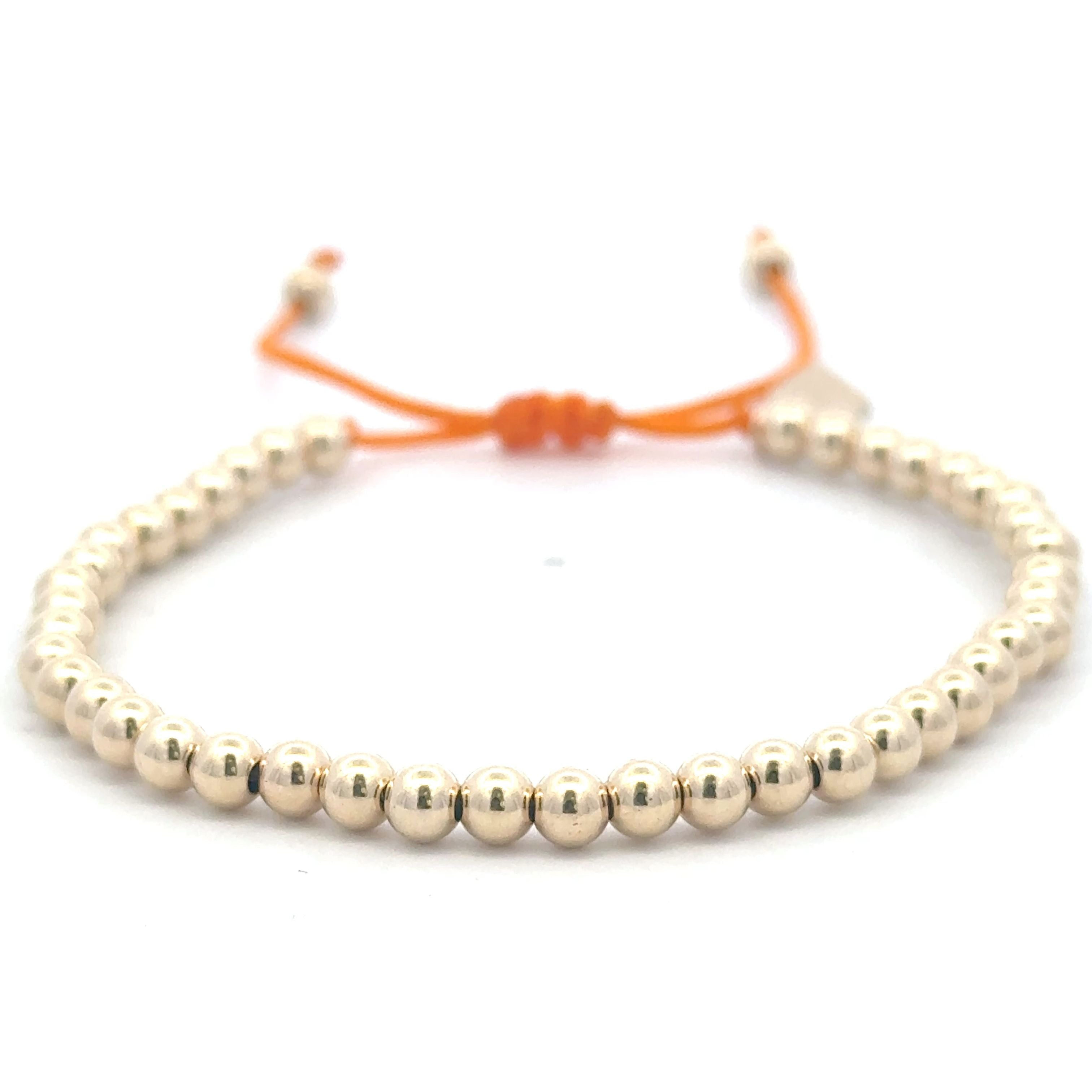 Bracelet made of colored cord with gold colored balls.