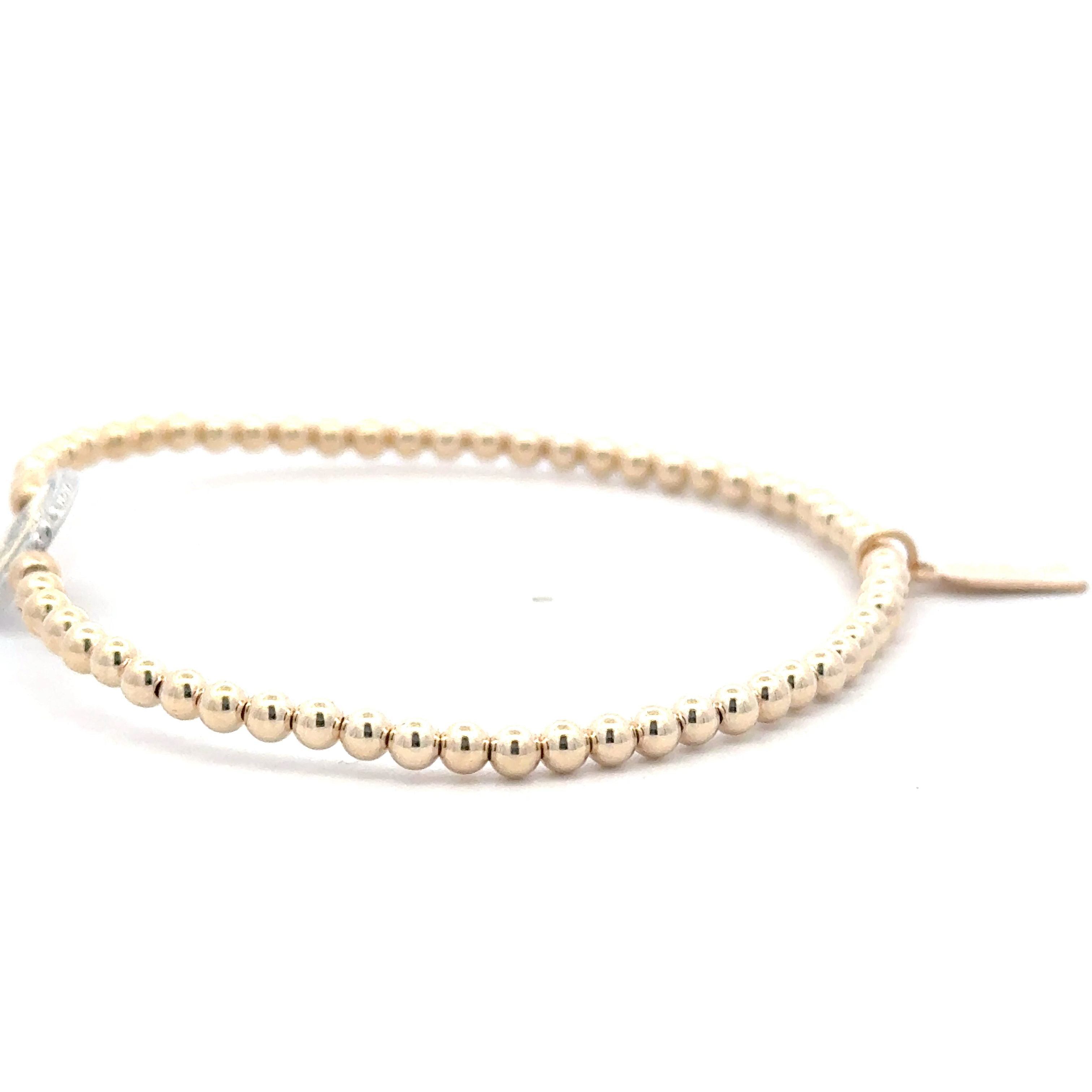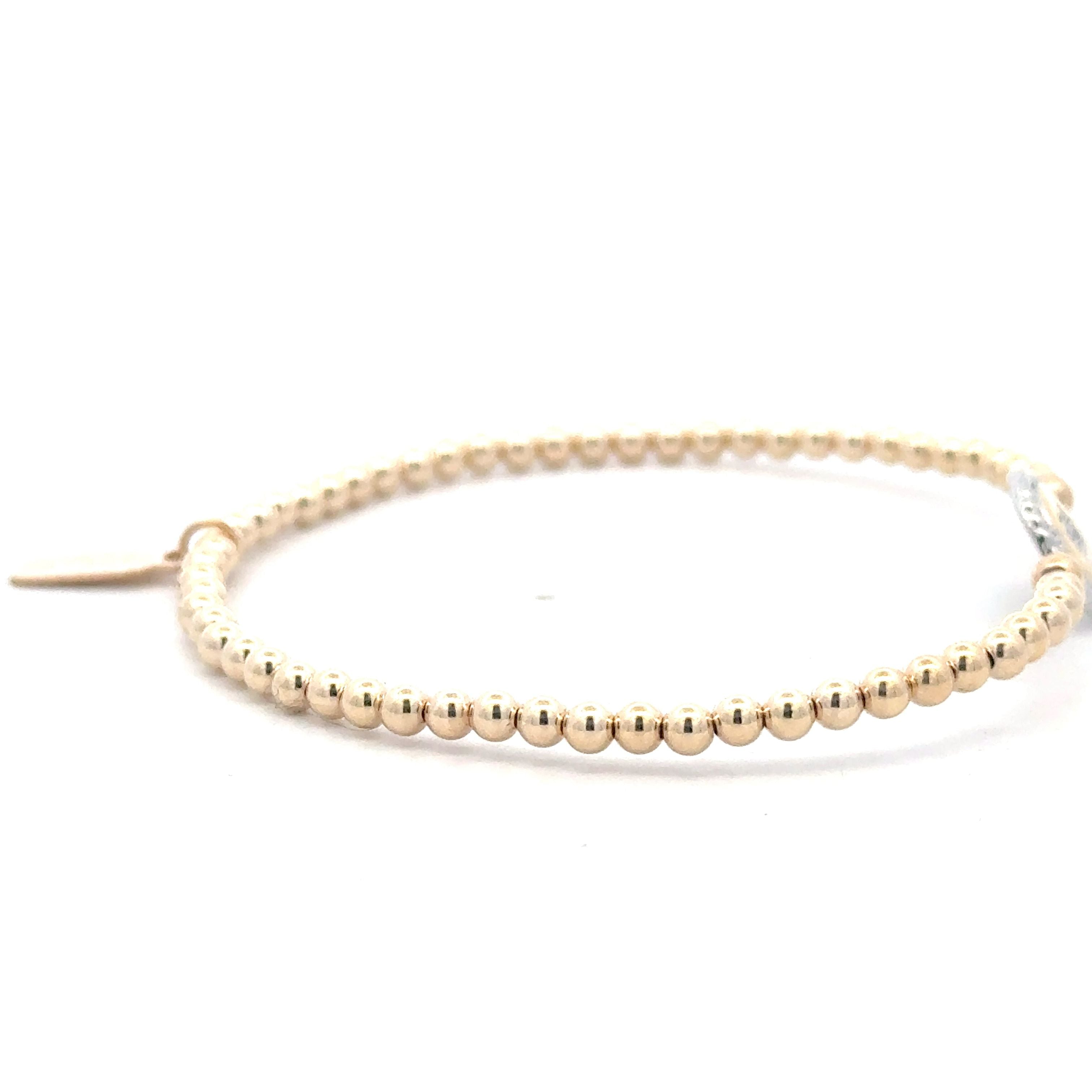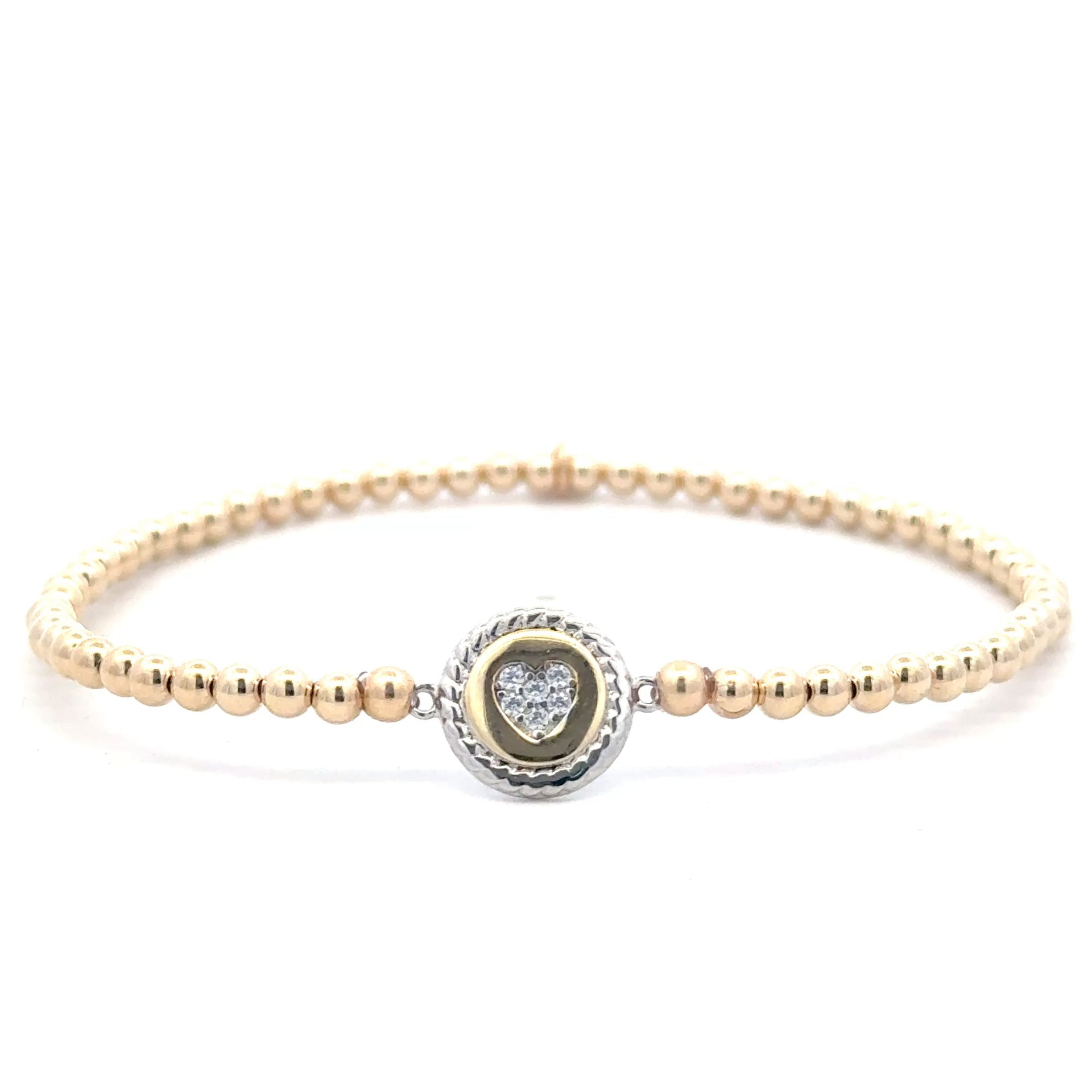 Elastisches Armband mit goldfarbenen Perlen und einem runden Charm mit Strassherz