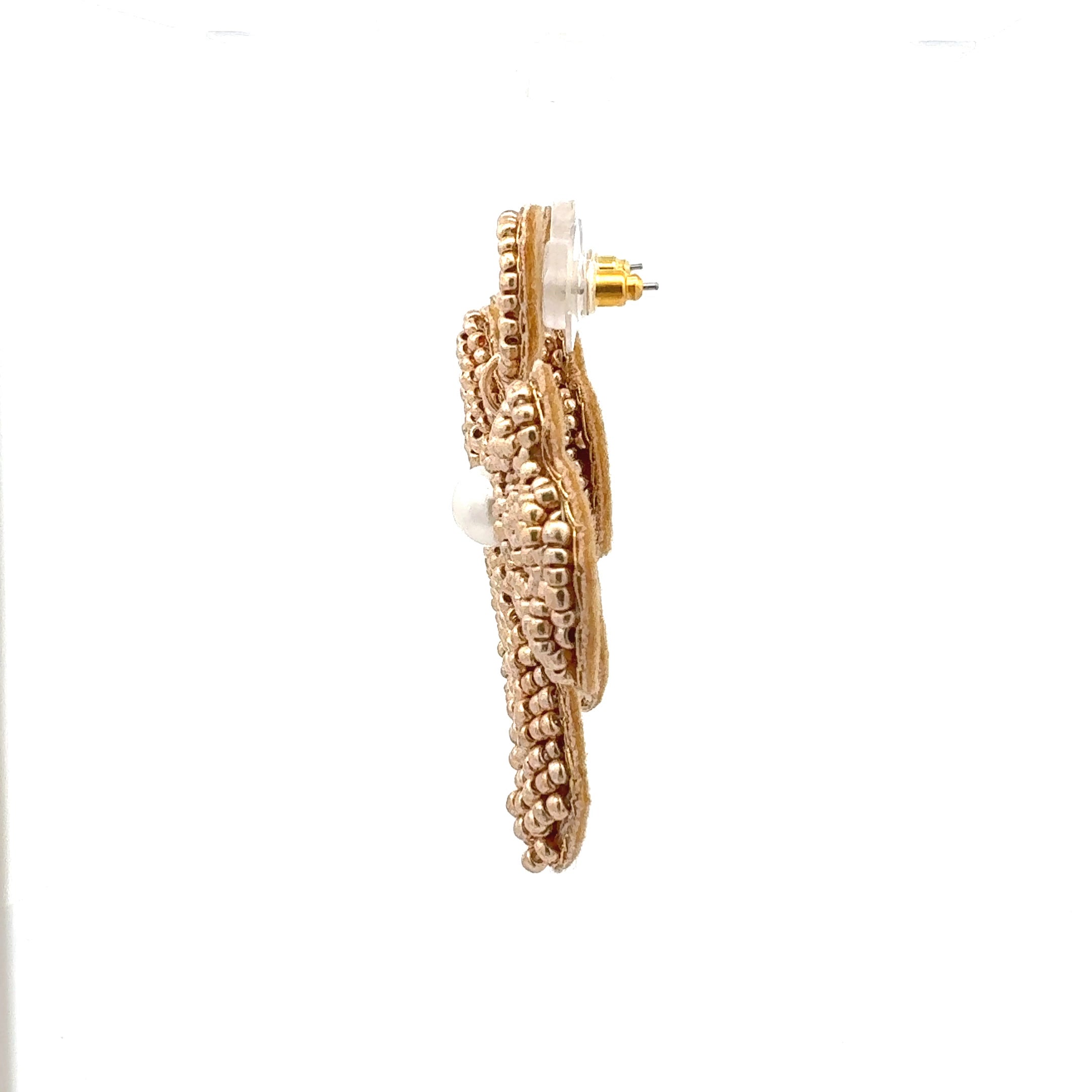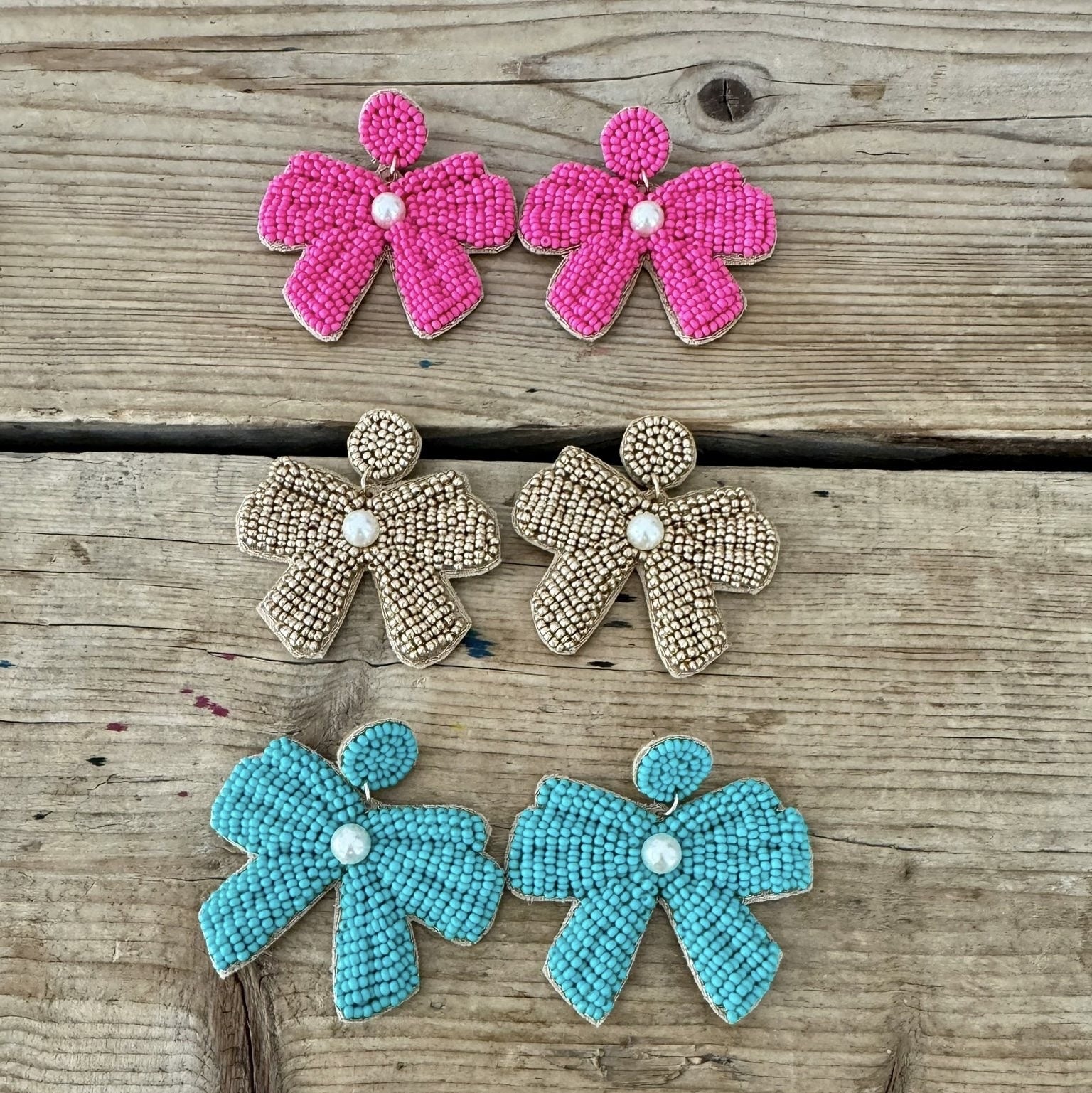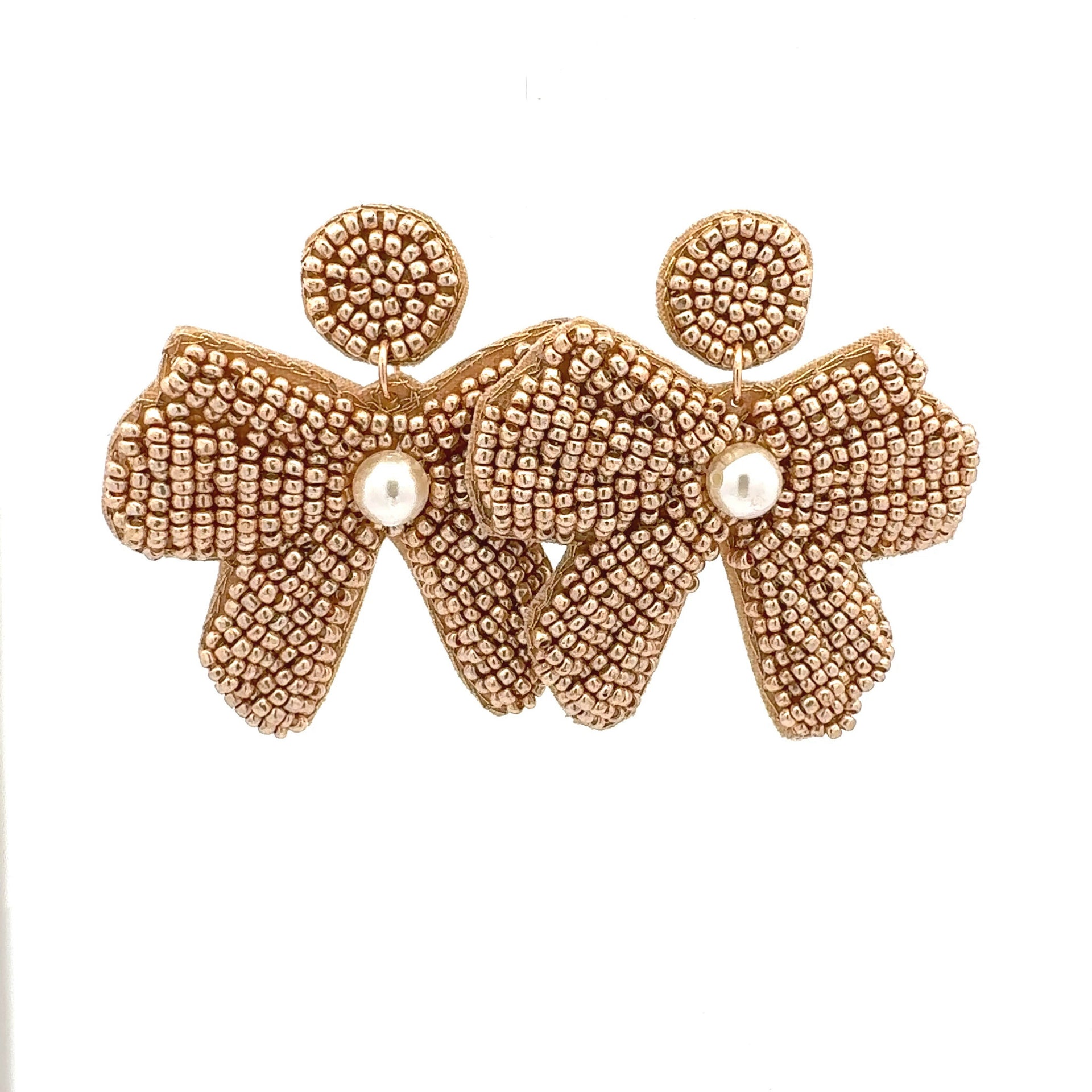 Ohrringe mit schleifenförmigem Anhänger mit taupefarbenen Perlen