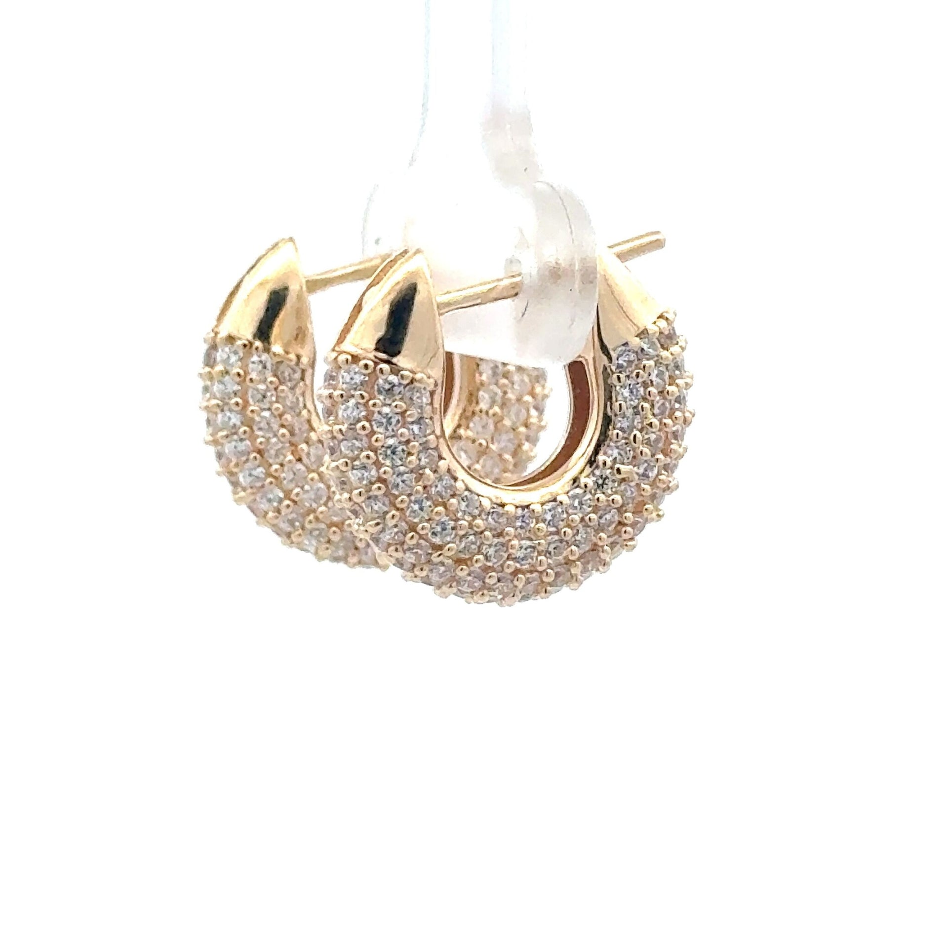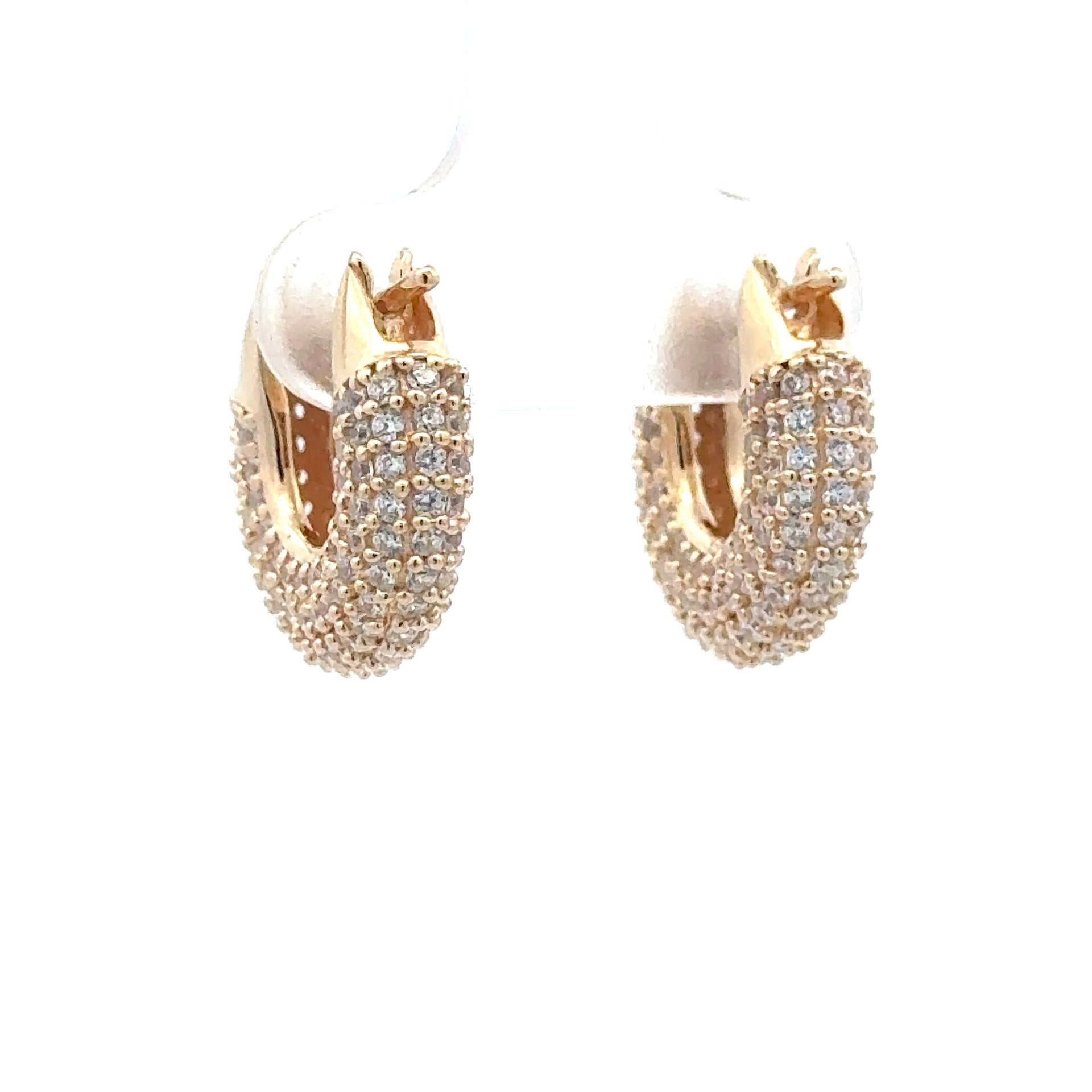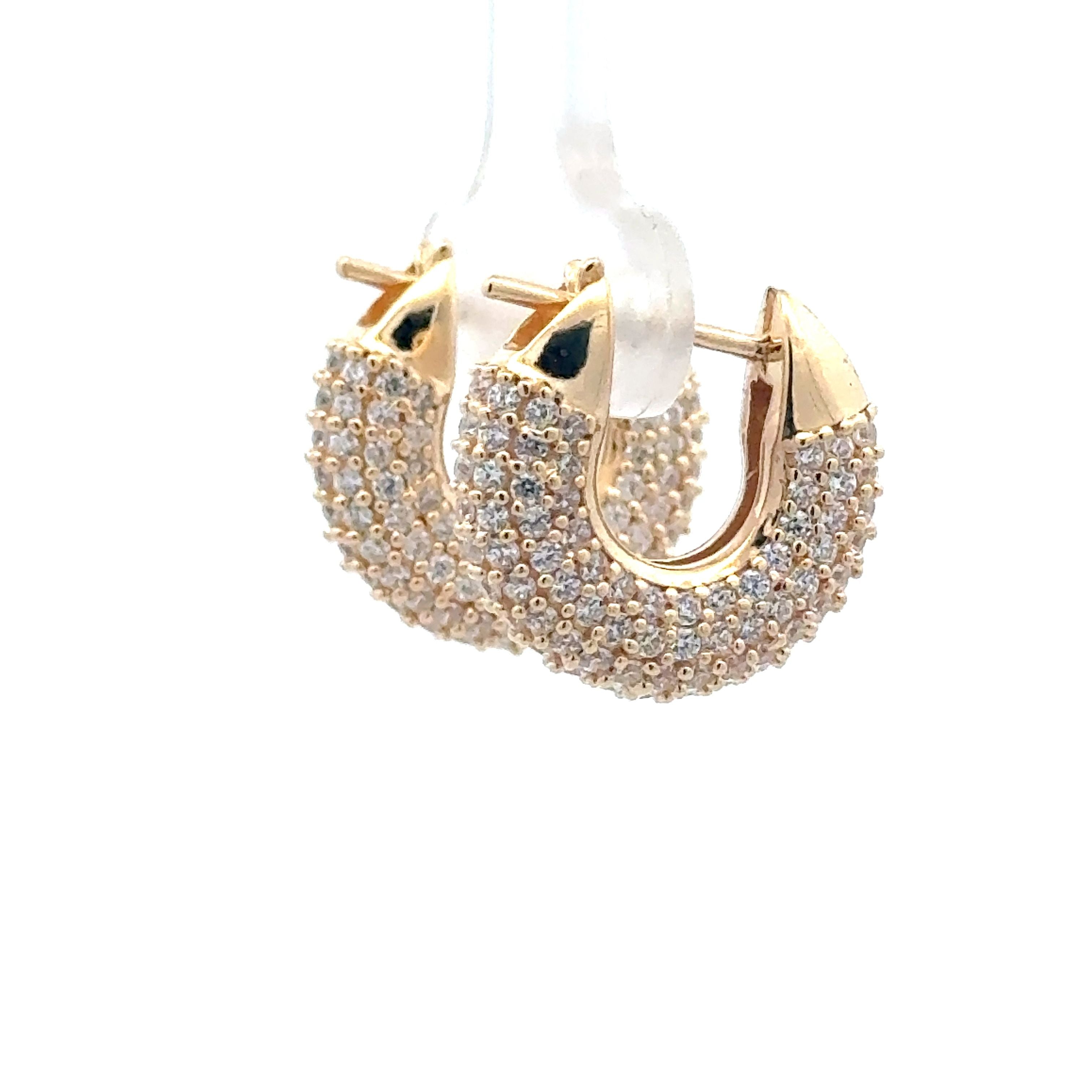 Gold colored earrings with rhinestones.