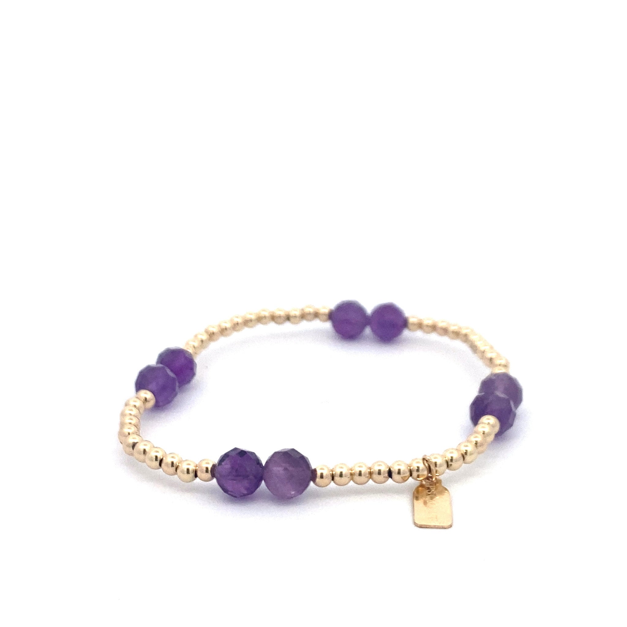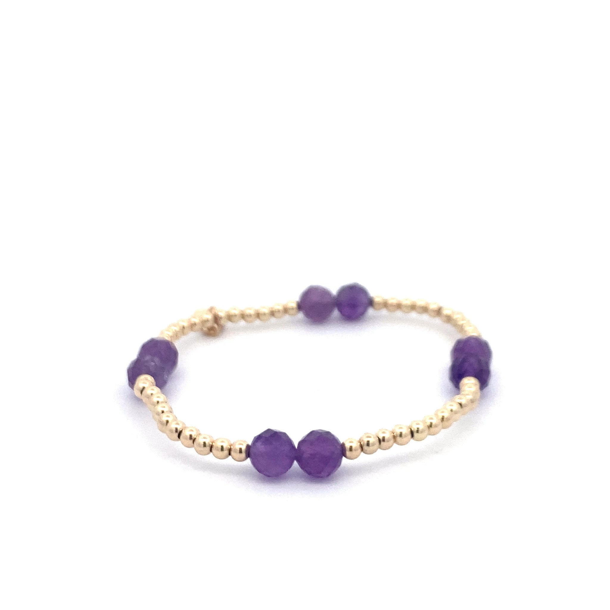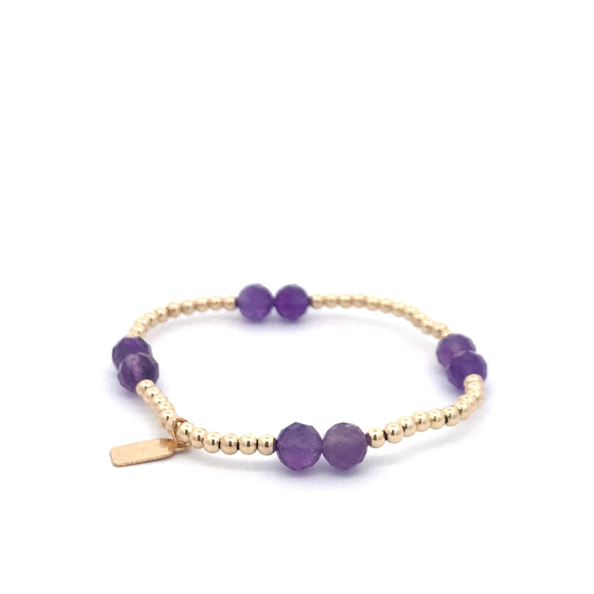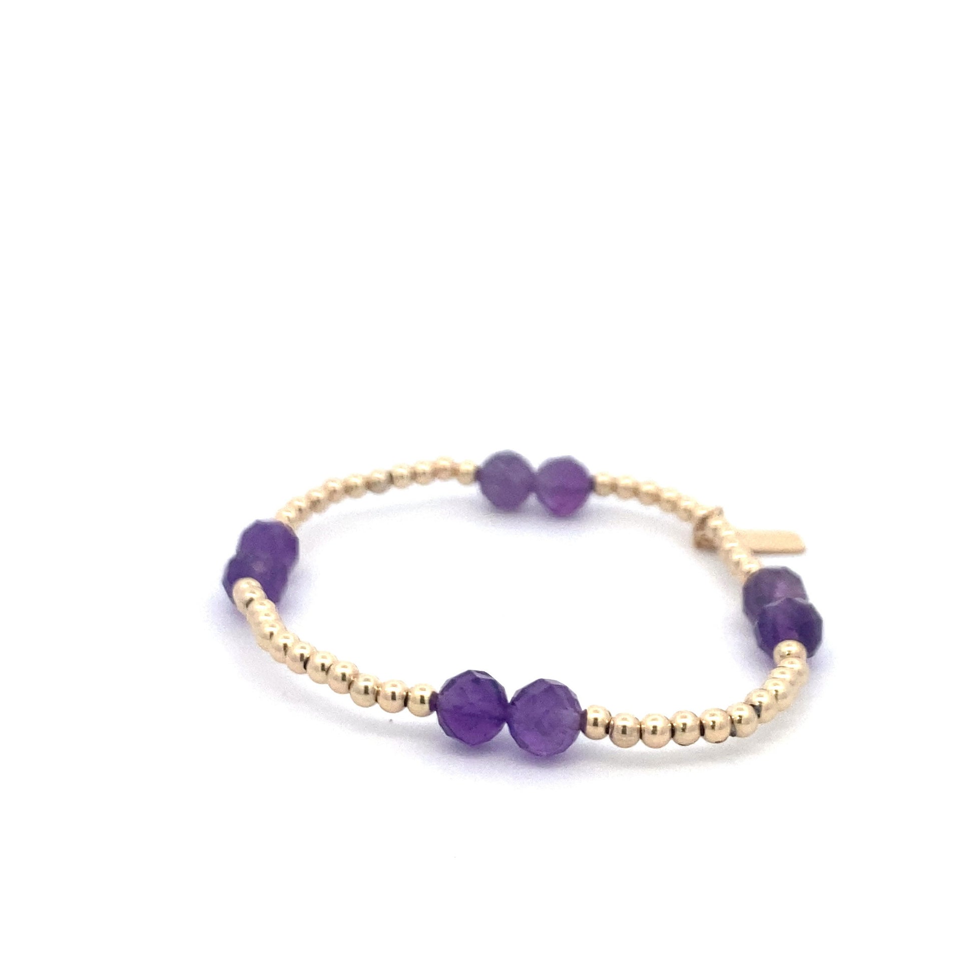 Elastisches Armband mit goldenen Kugeln und acht violetten Kugeln