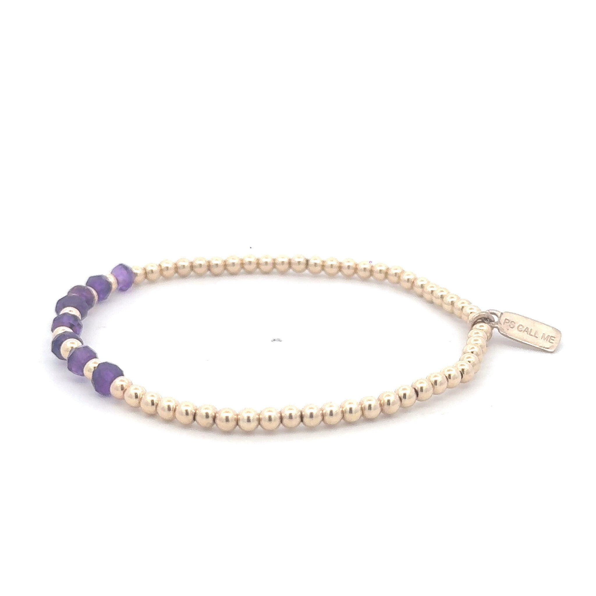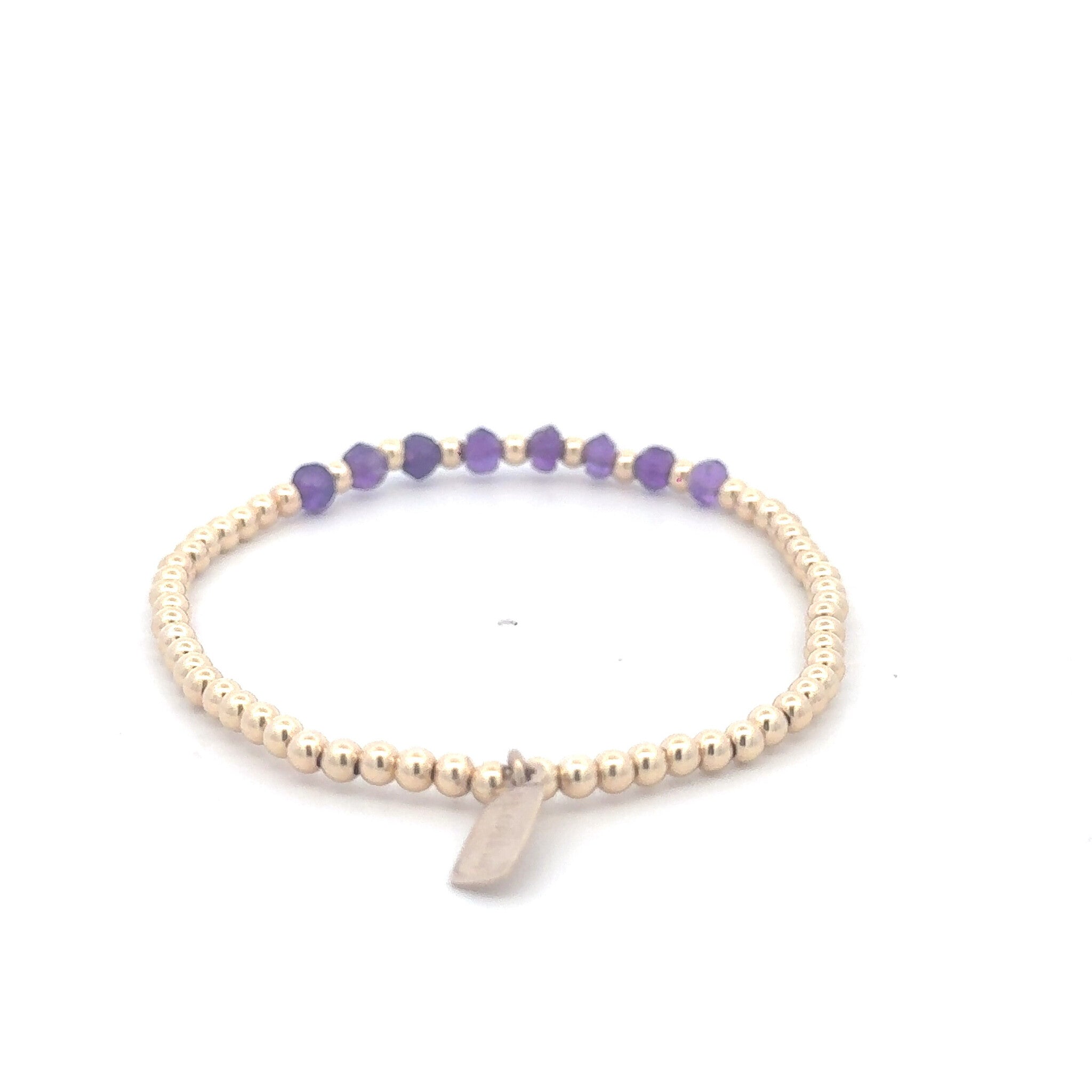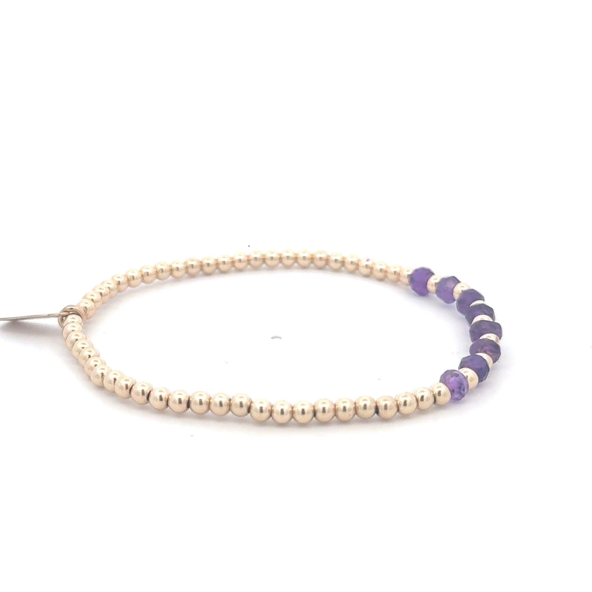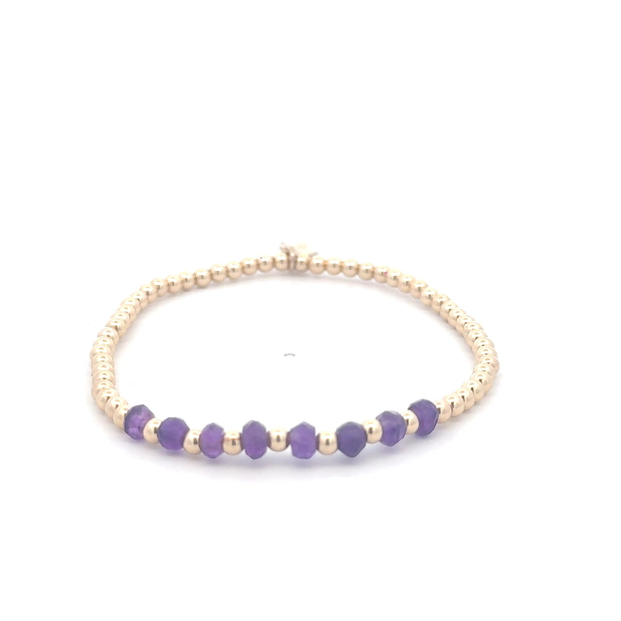 Elastic bracelet with gold colored balls and a row of colored stones.