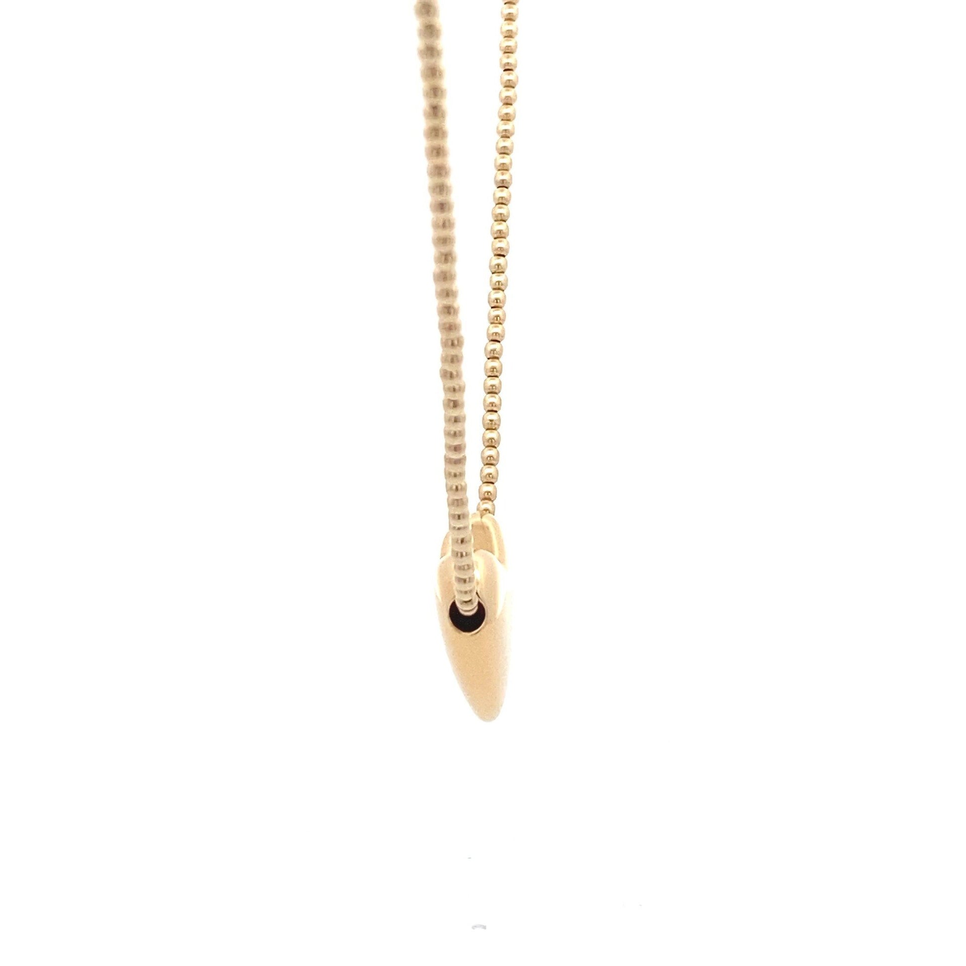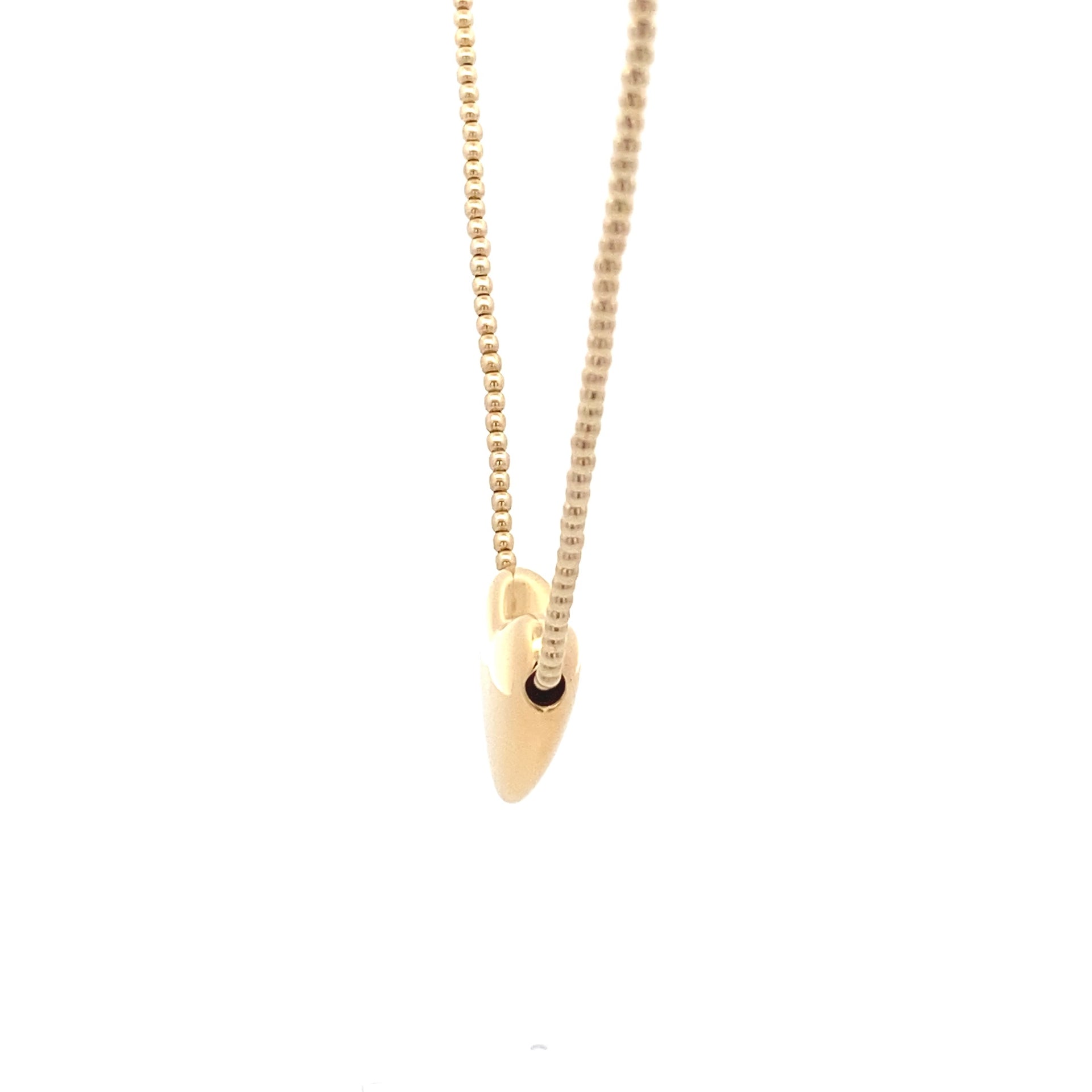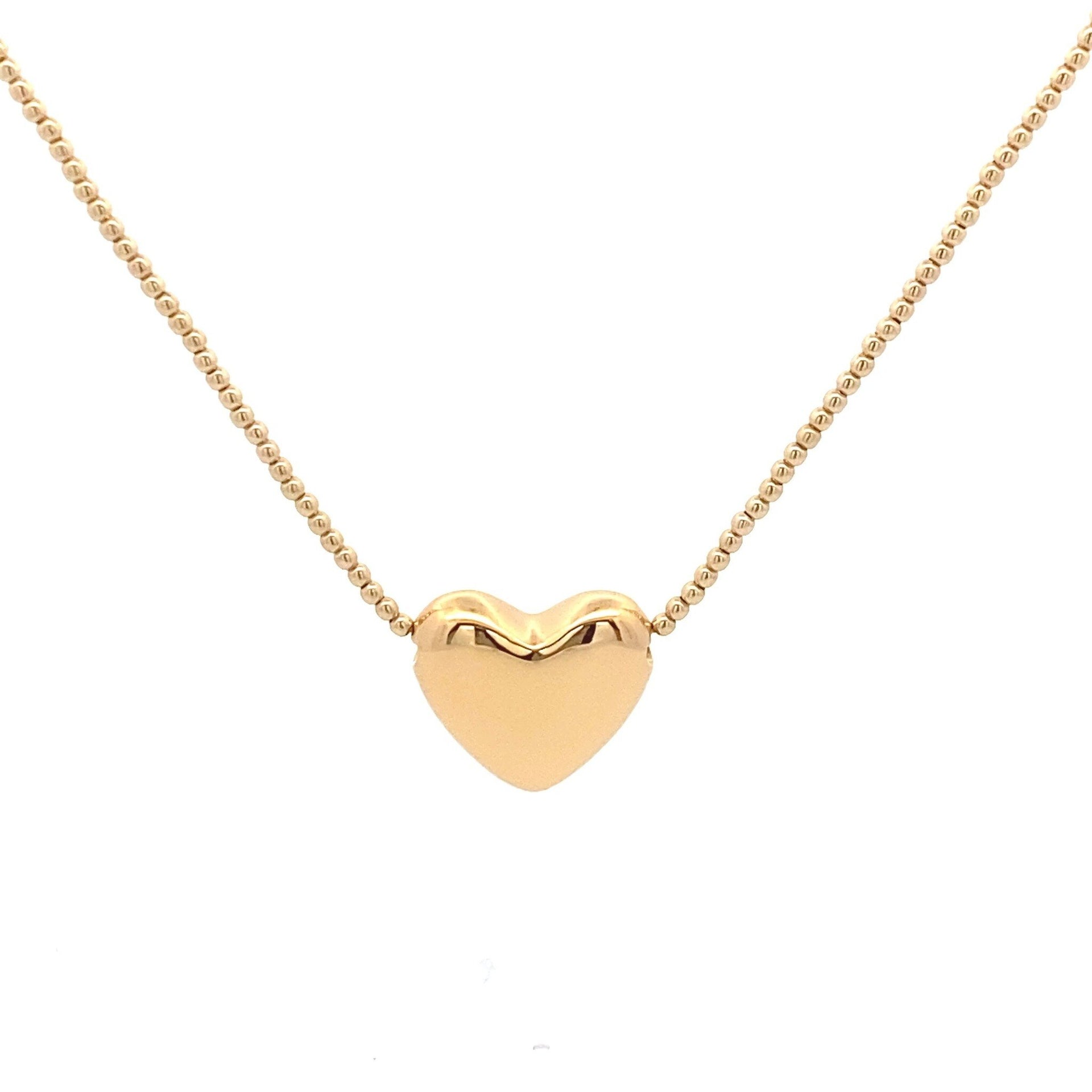 Halskette aus goldfarbenen 2-mm-Perlen mit einem großen goldfarbenen Herz.