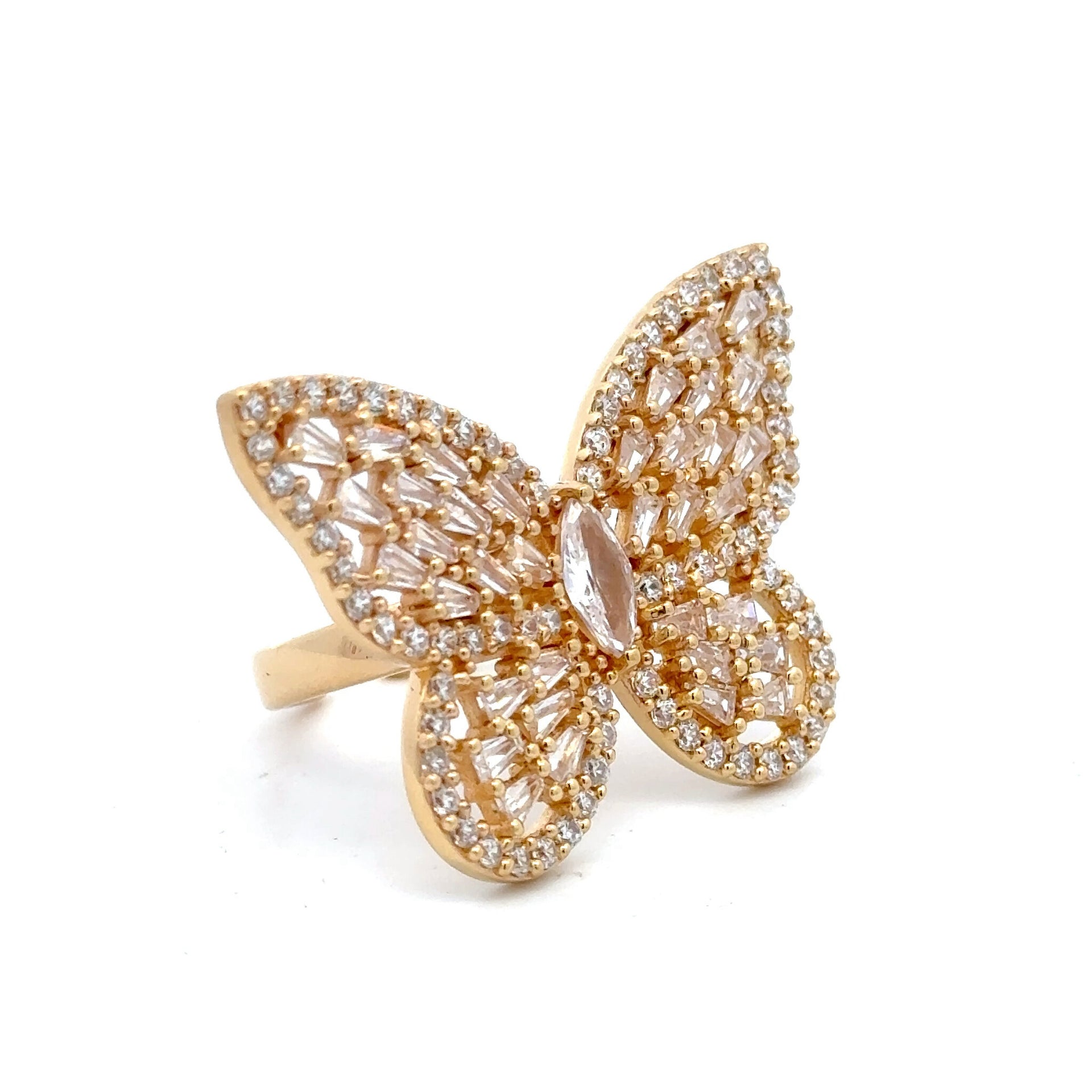 Vergoldeter Ring mit einem Schmetterling voller Zirkoniasteine