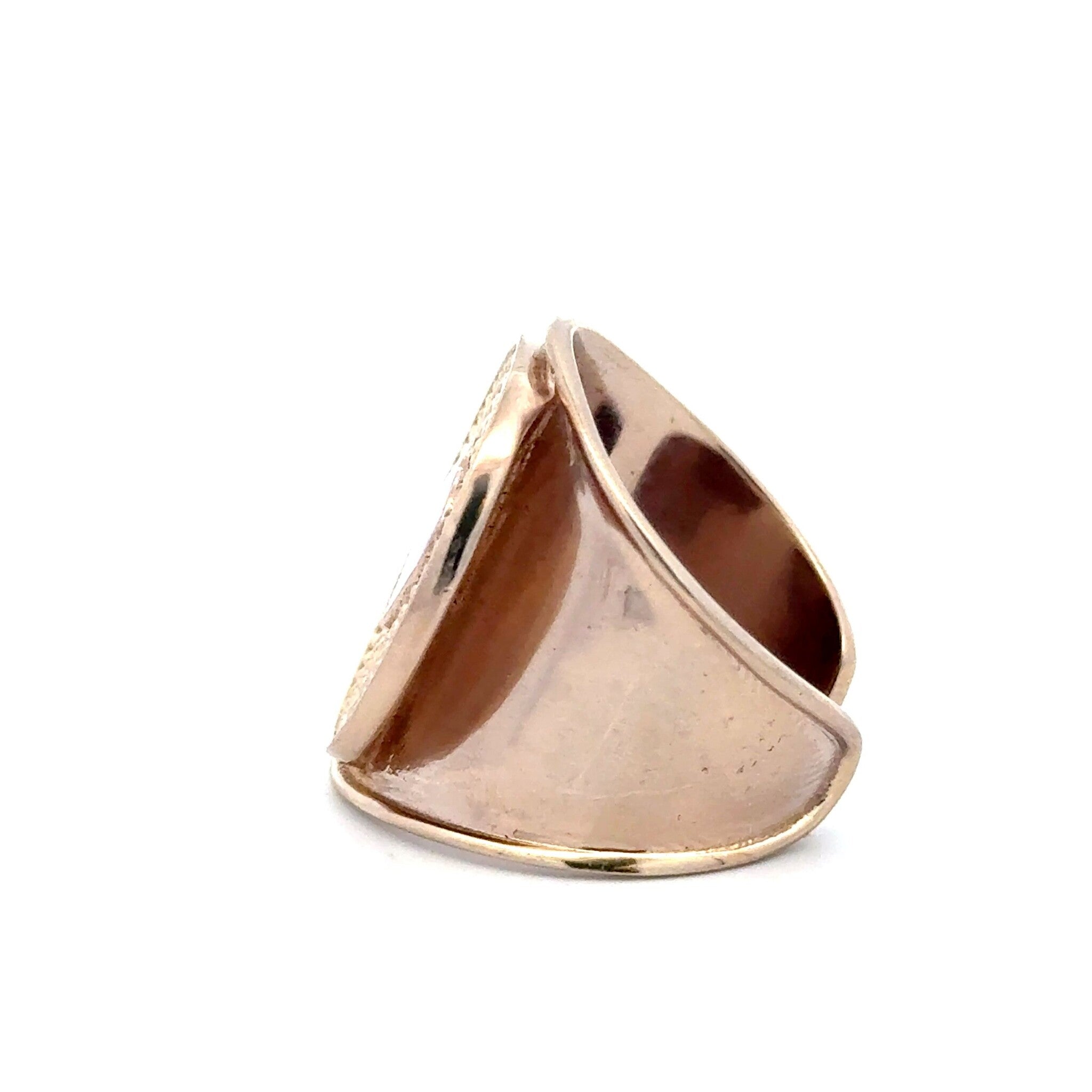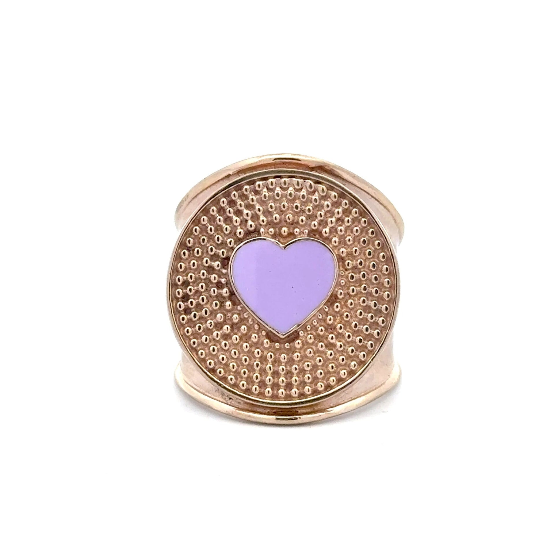 Vergoldeter Ring mit einem weißen Herzen in der Mitte