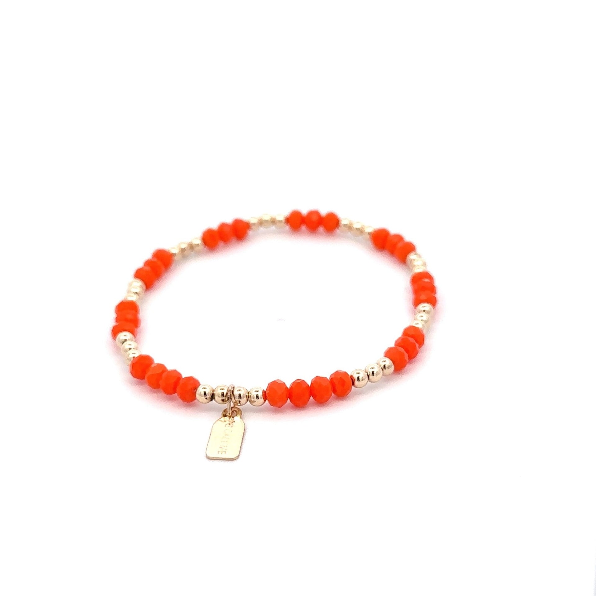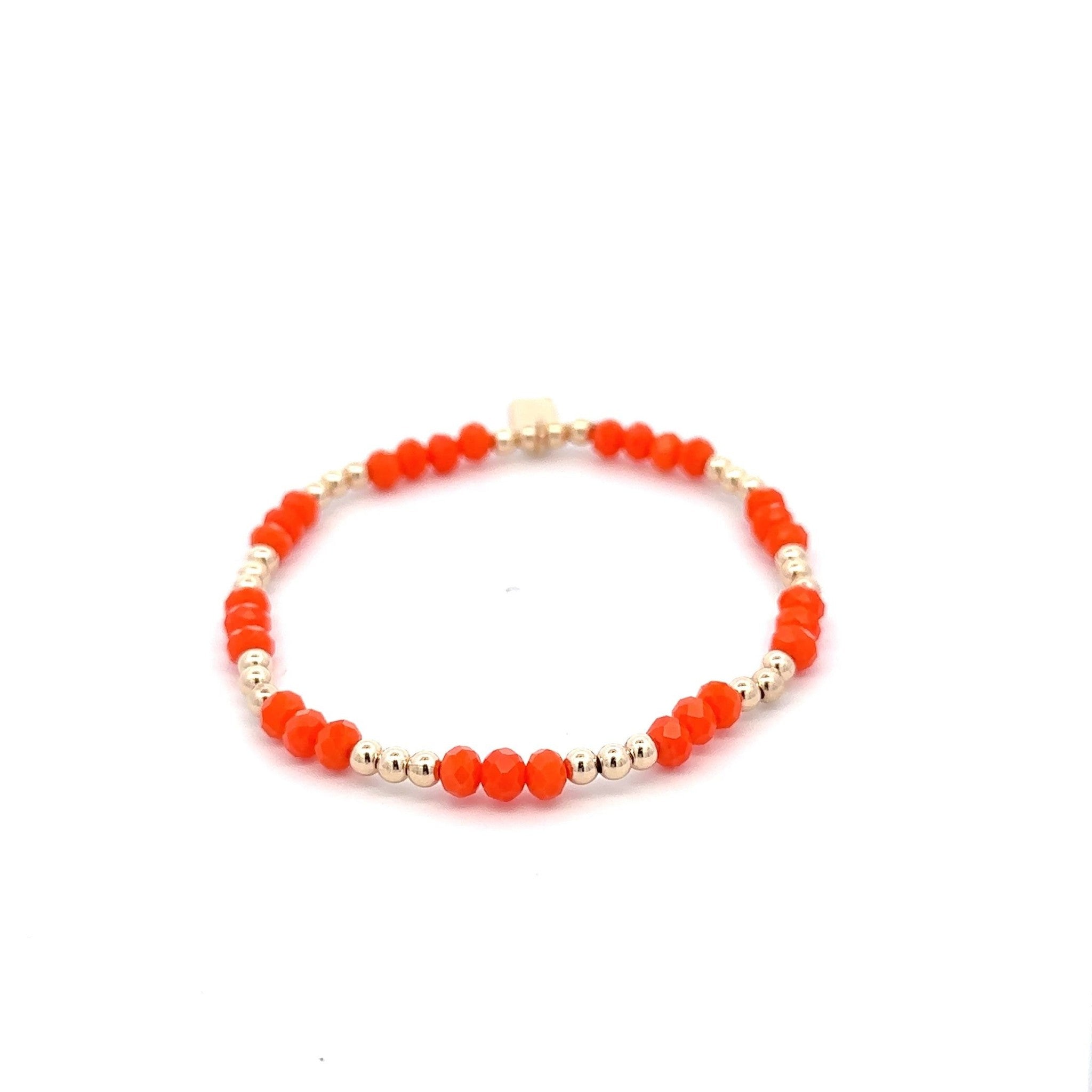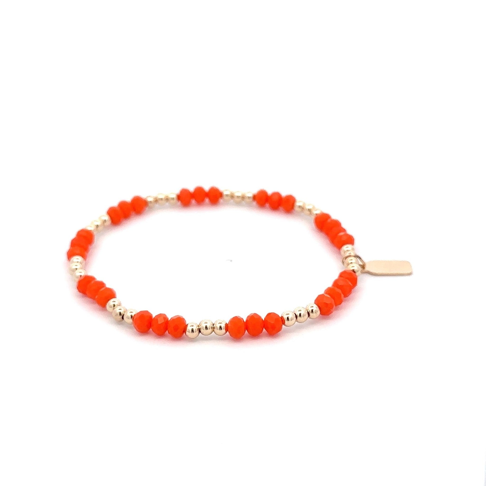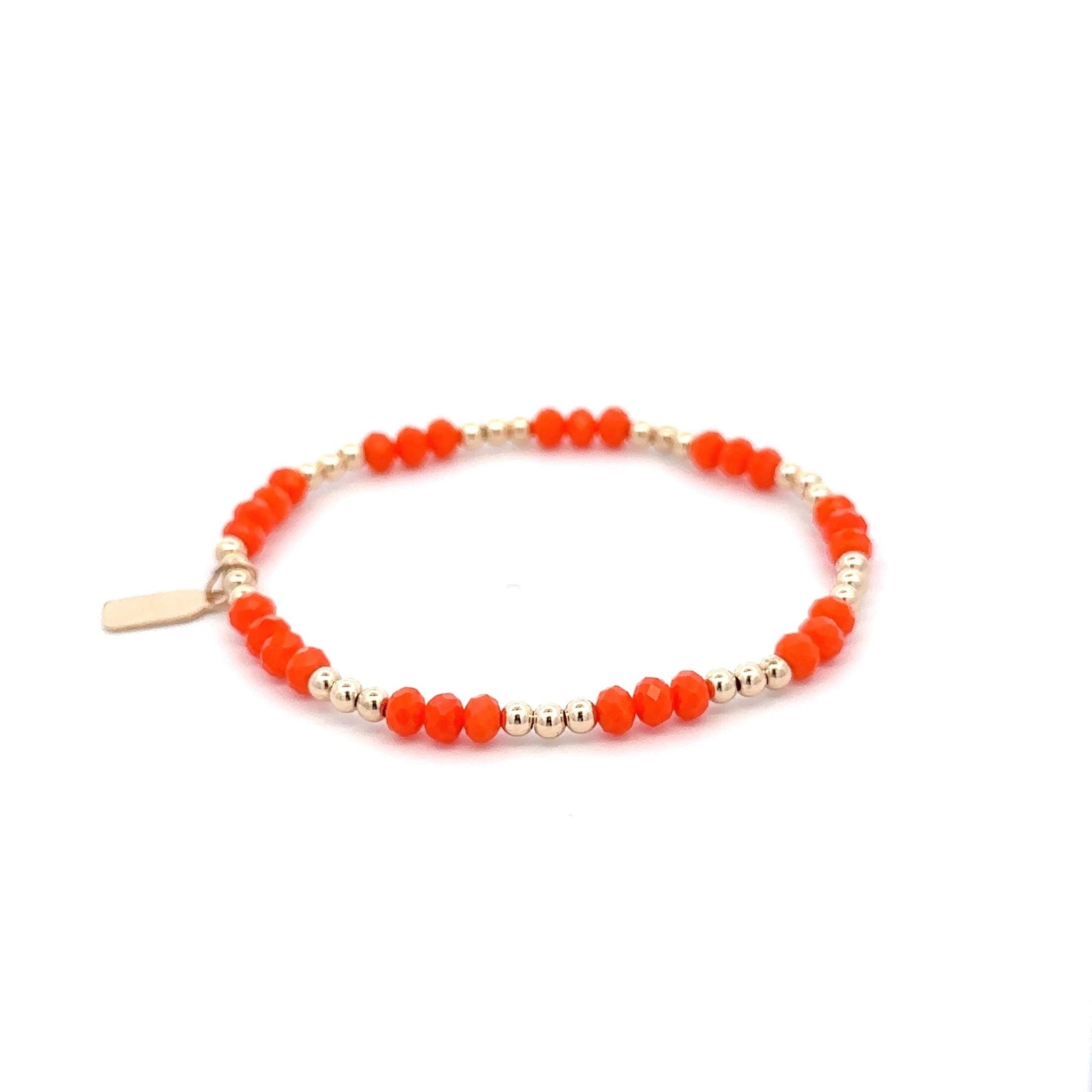 Elastisches Armband mit farbigen Steinen und goldfarbenen Kugeln.
