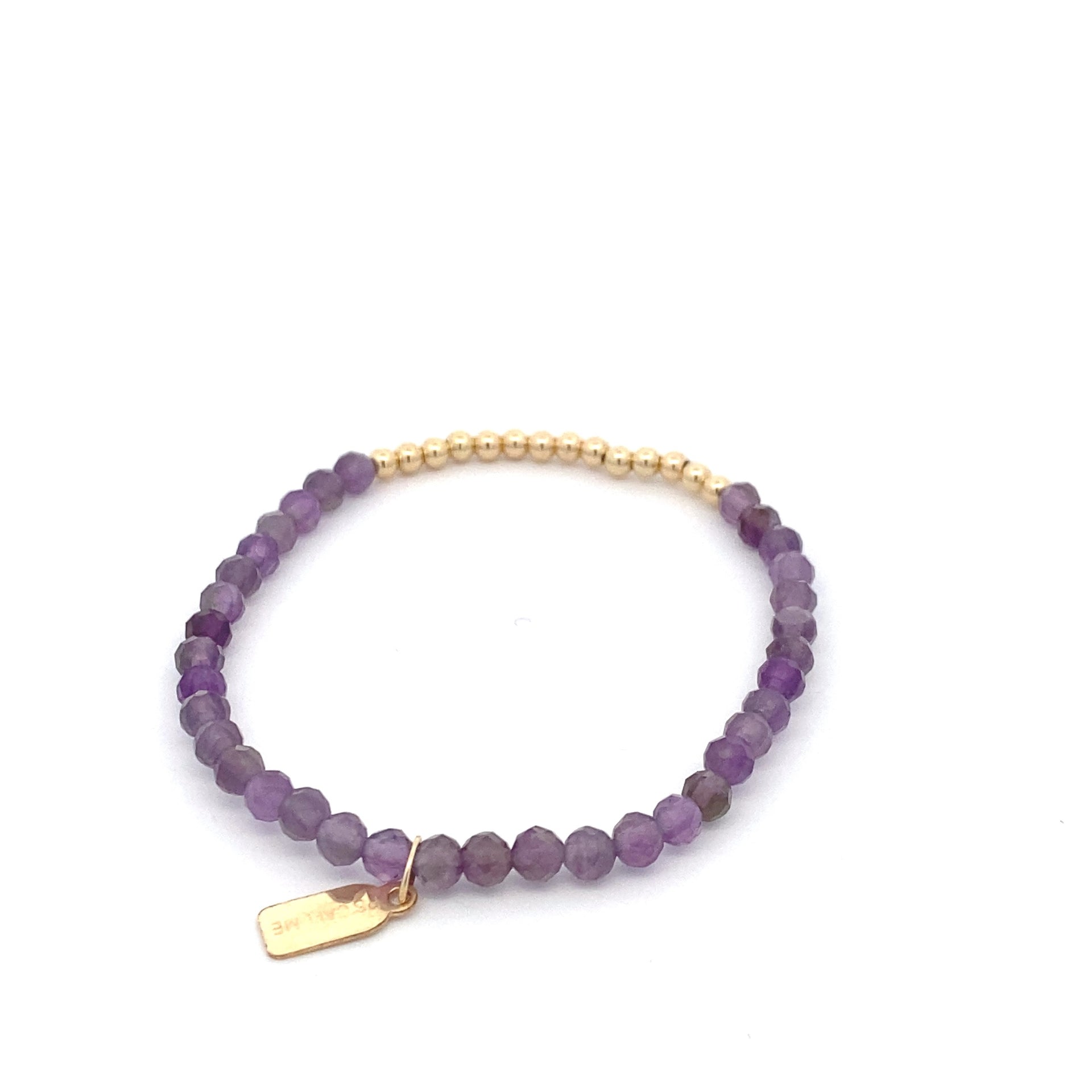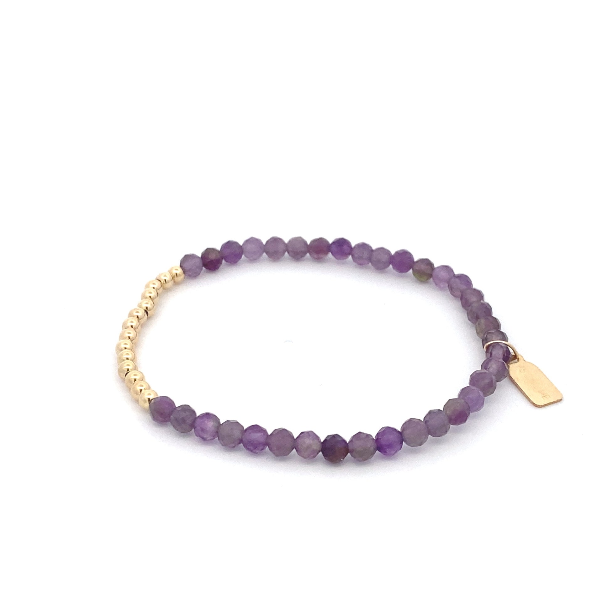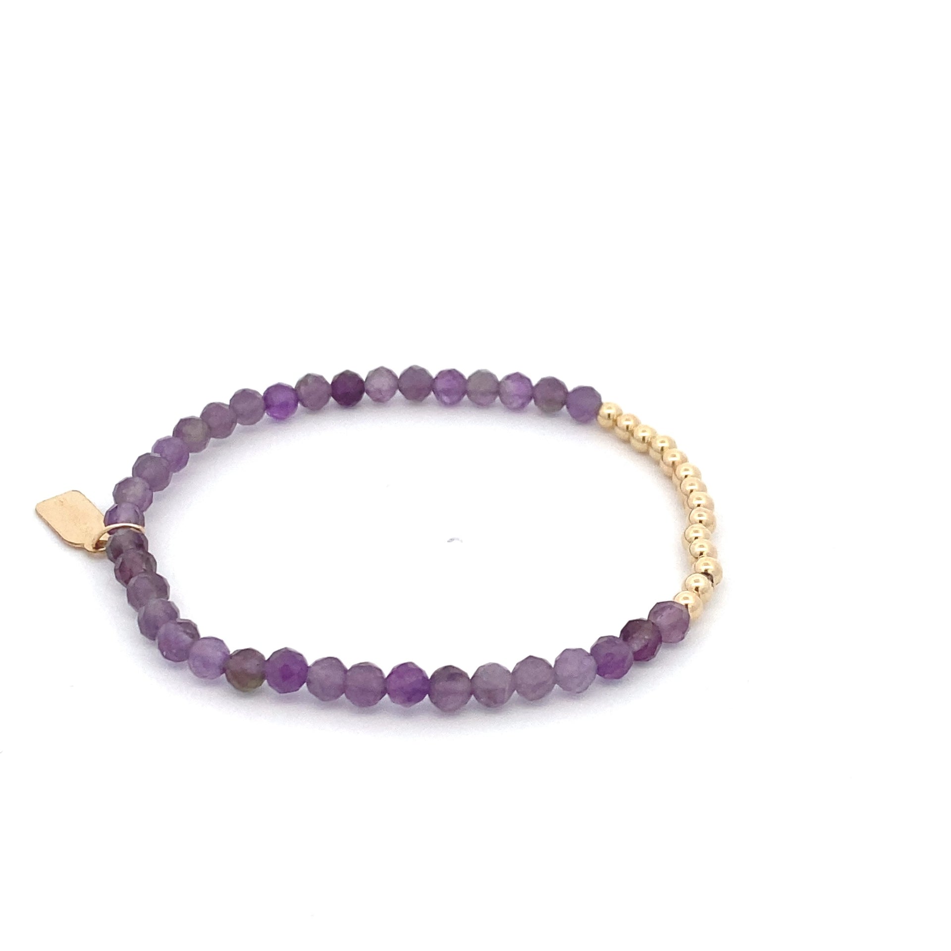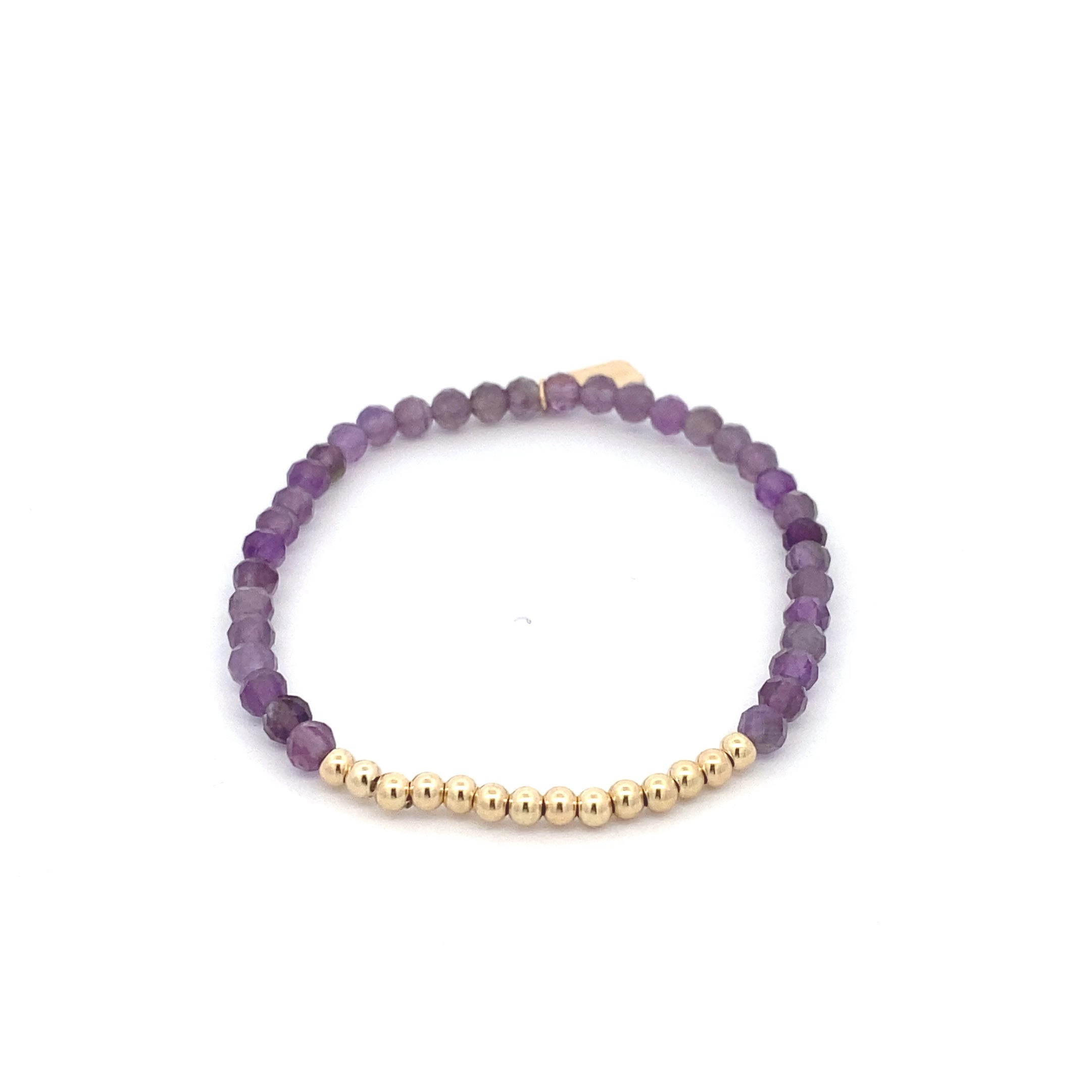 Elastisches Armband mit farbigen Steinen und einer Reihe goldener Kugeln.