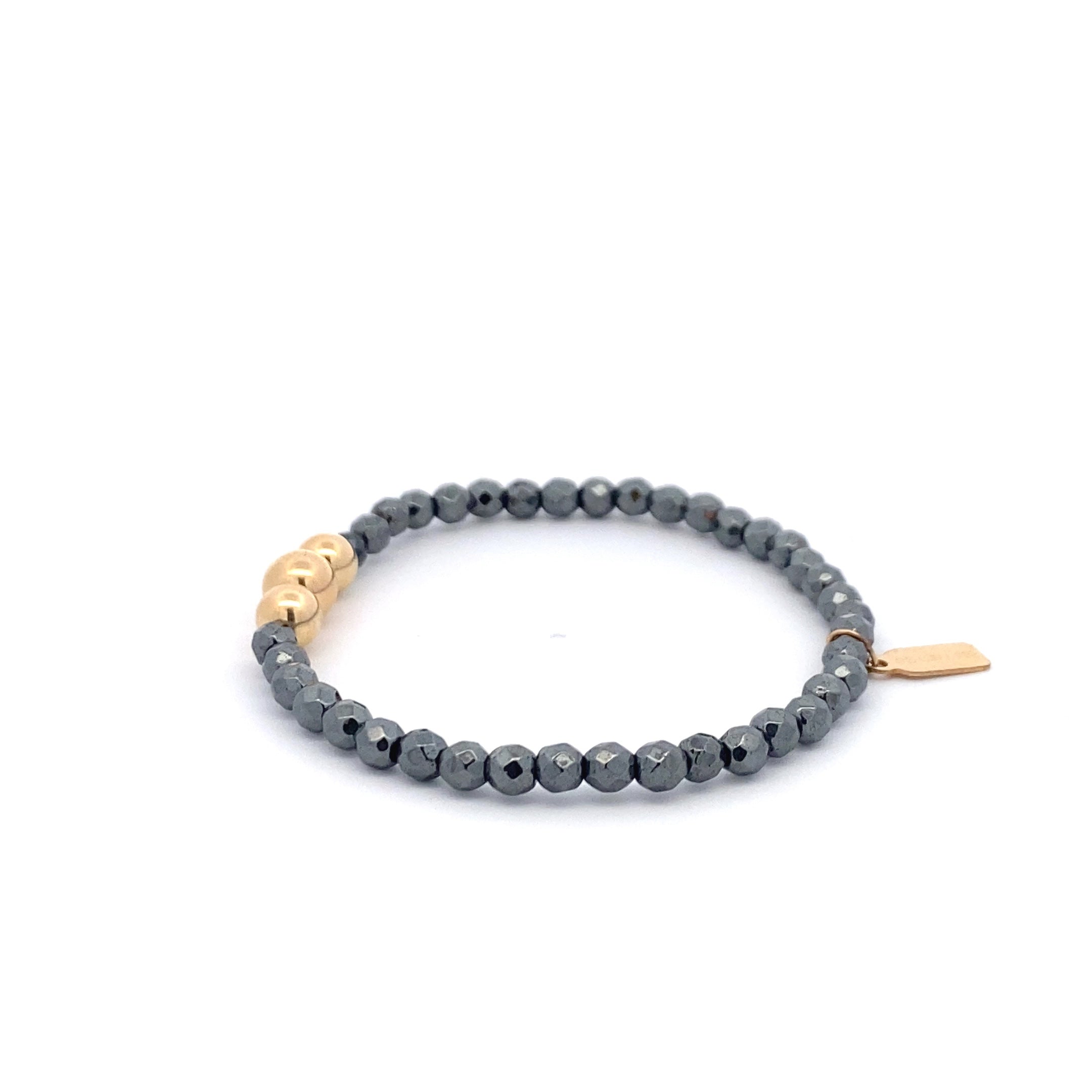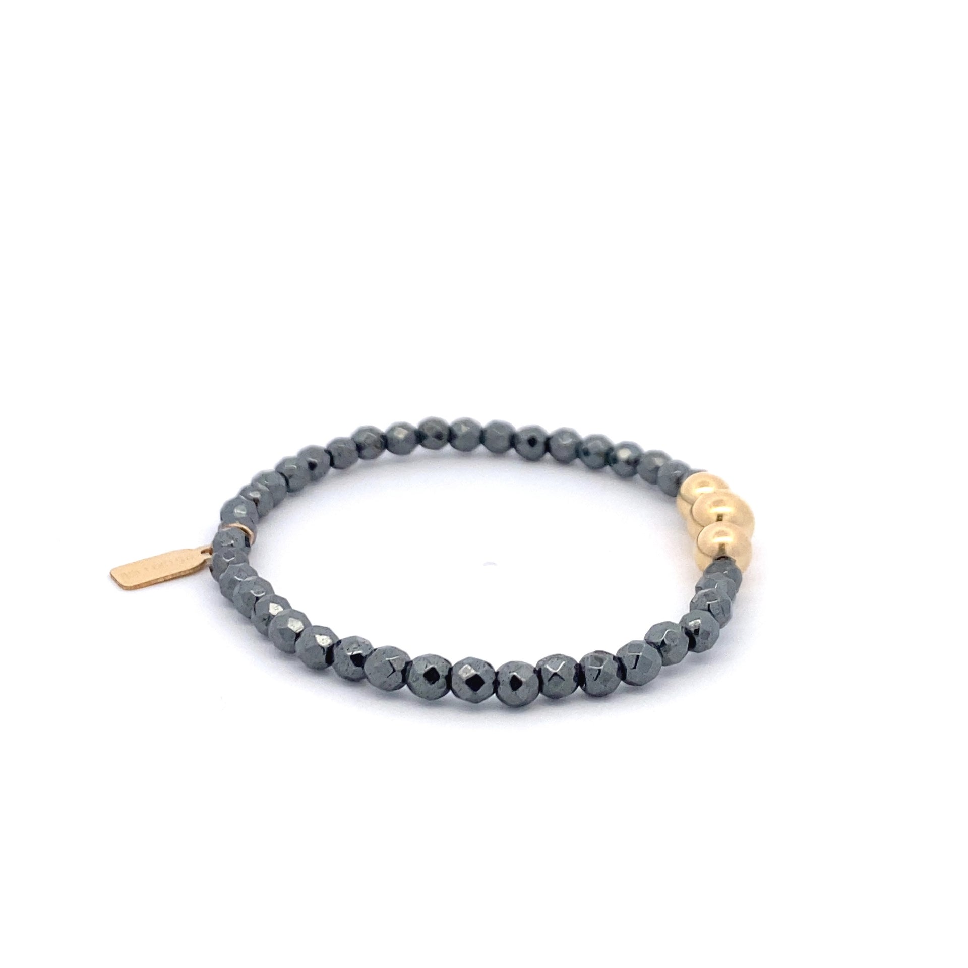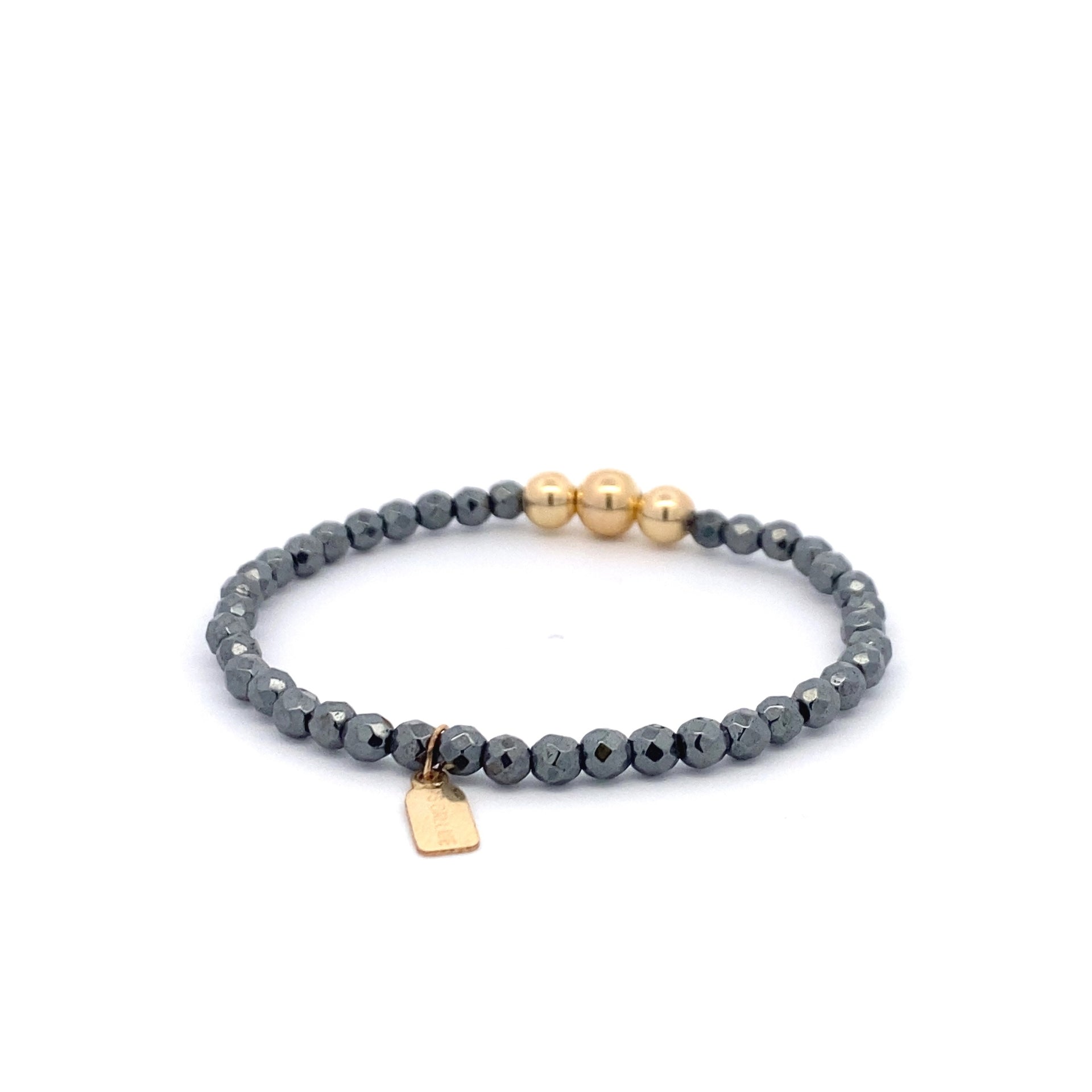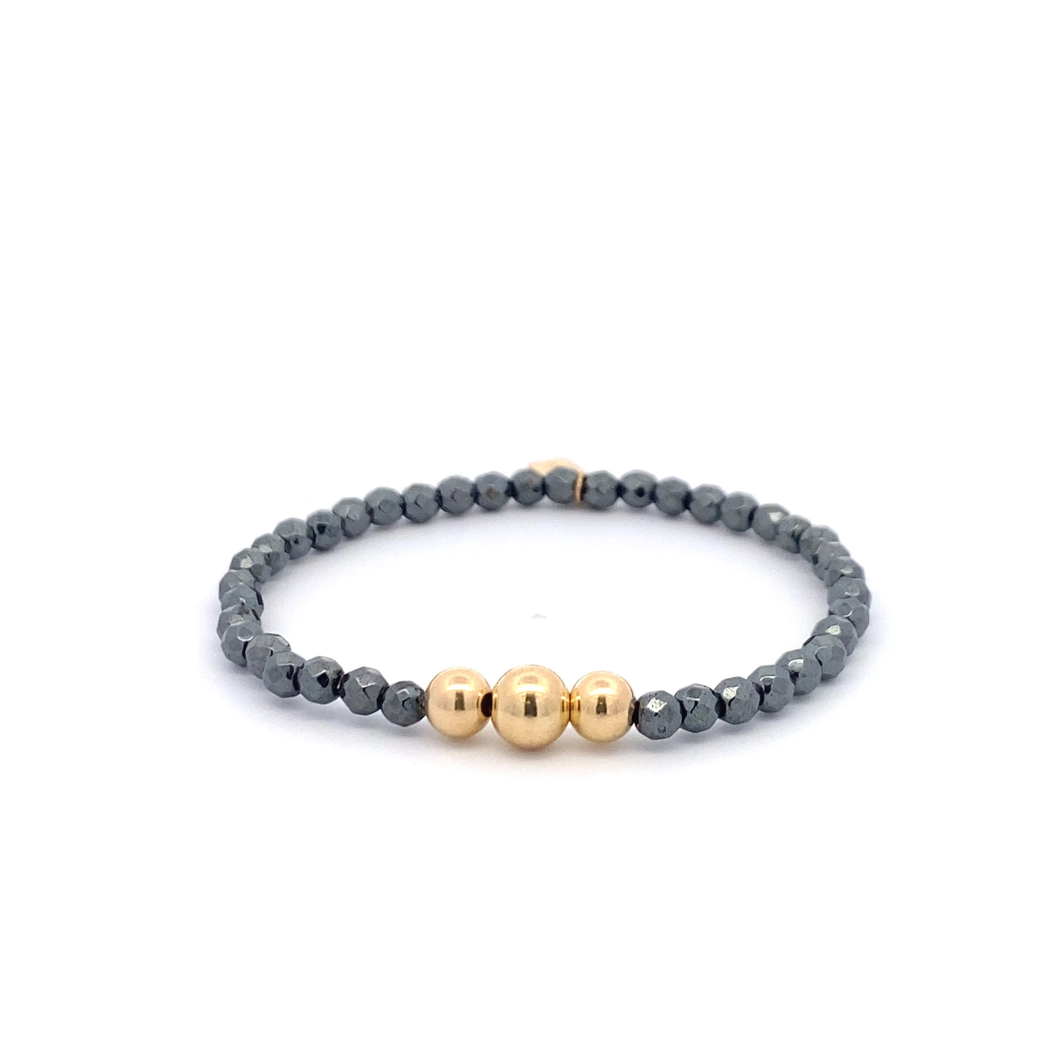 Pulsera elástica con piedras de colores y tres bolas de color dorado