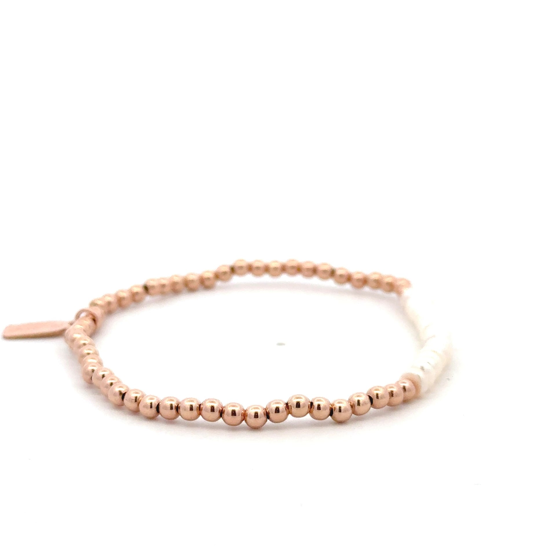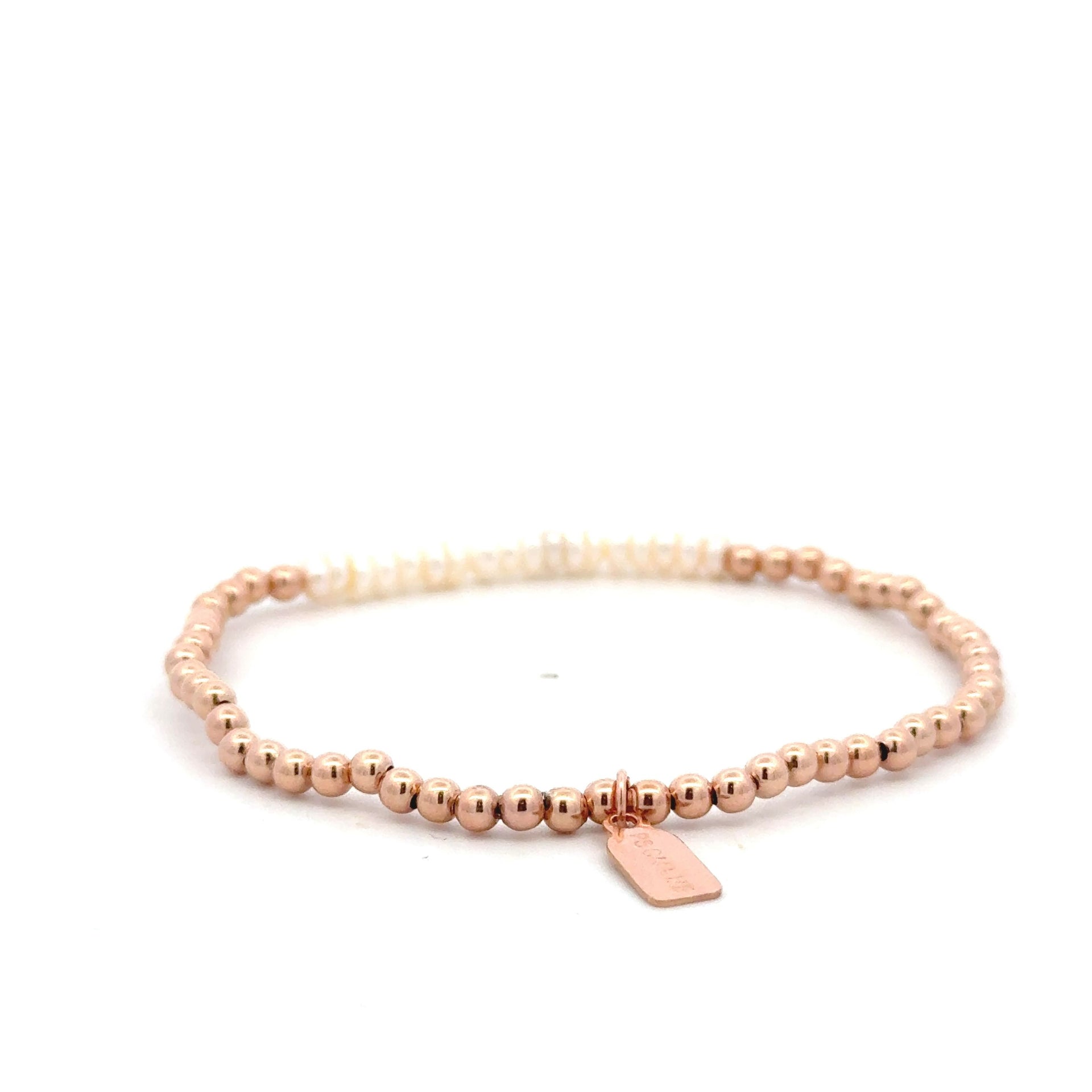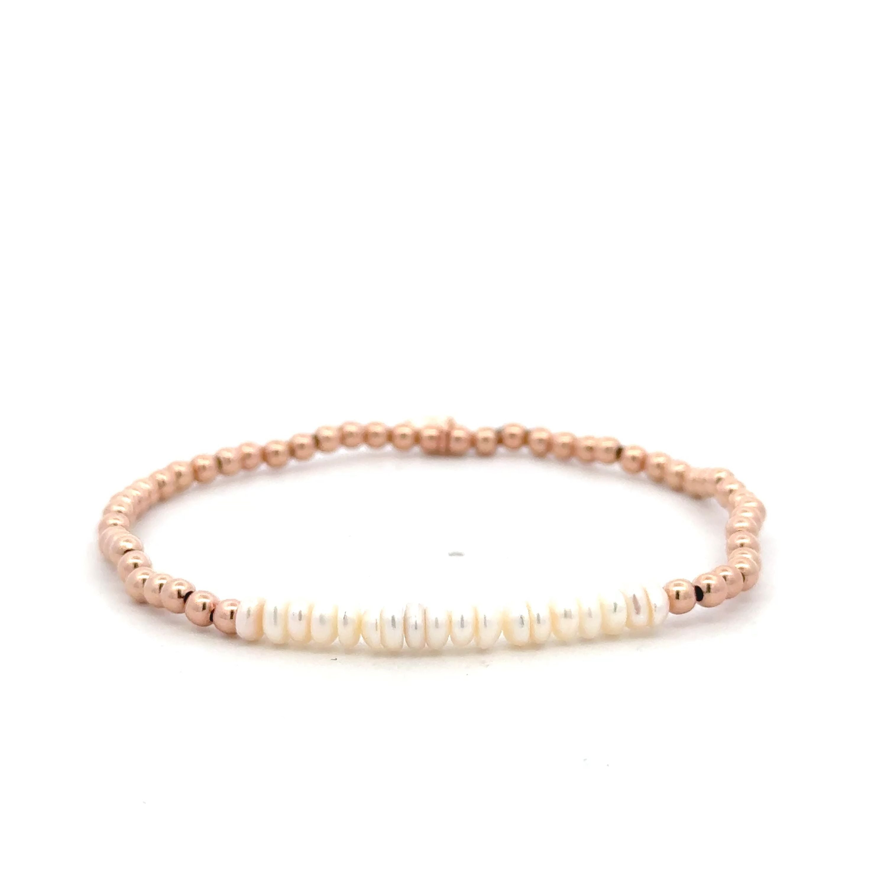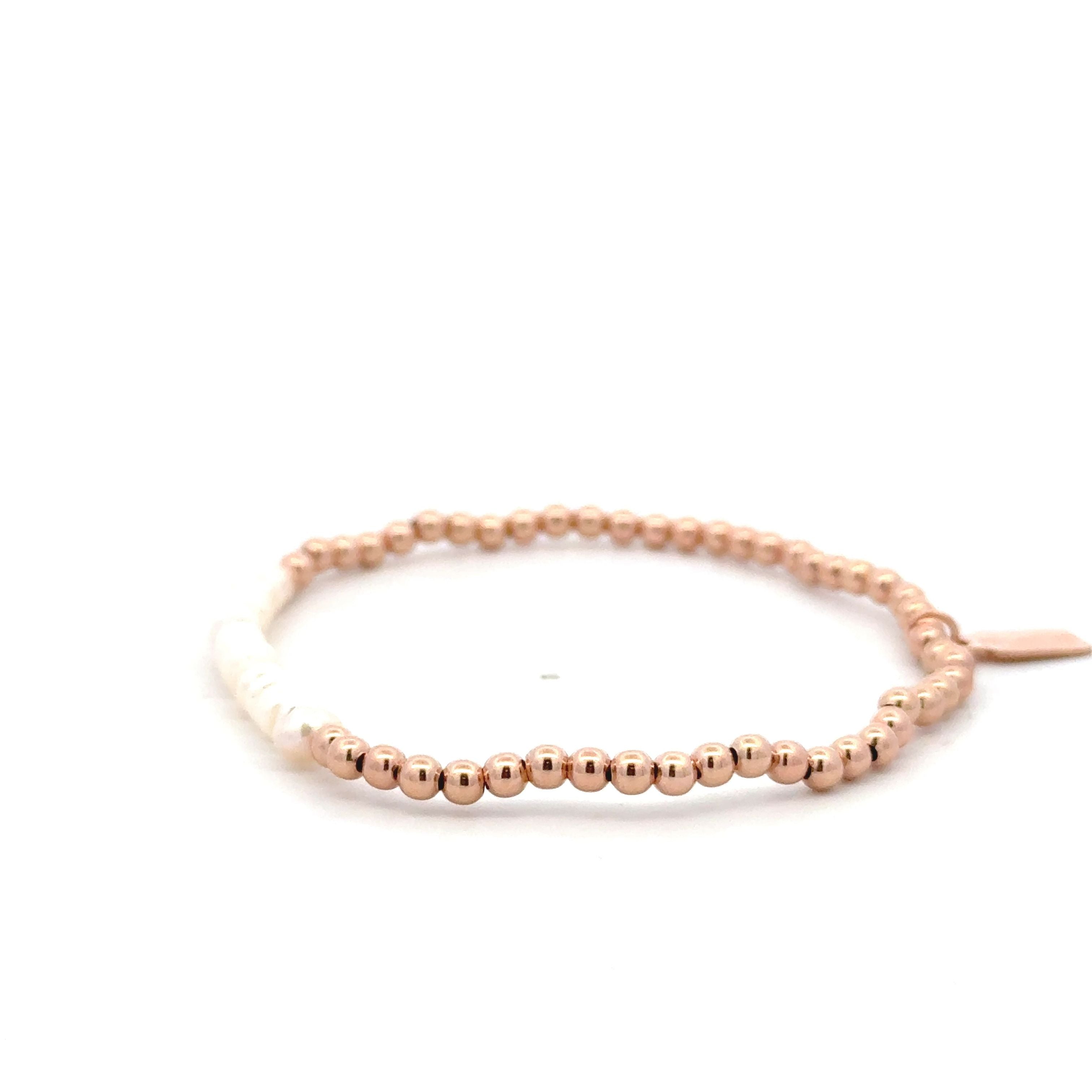 Pulsera elástica con cuentas de color oro rosa y una hilera de piedras de colores.