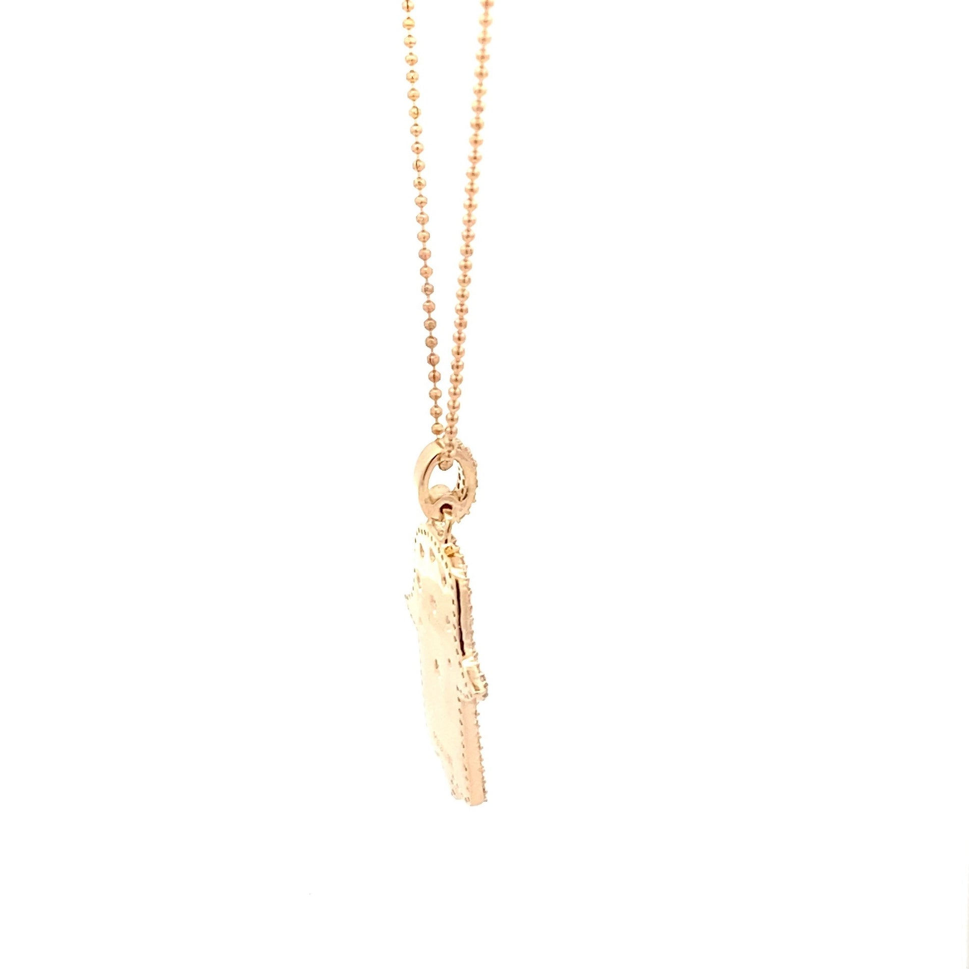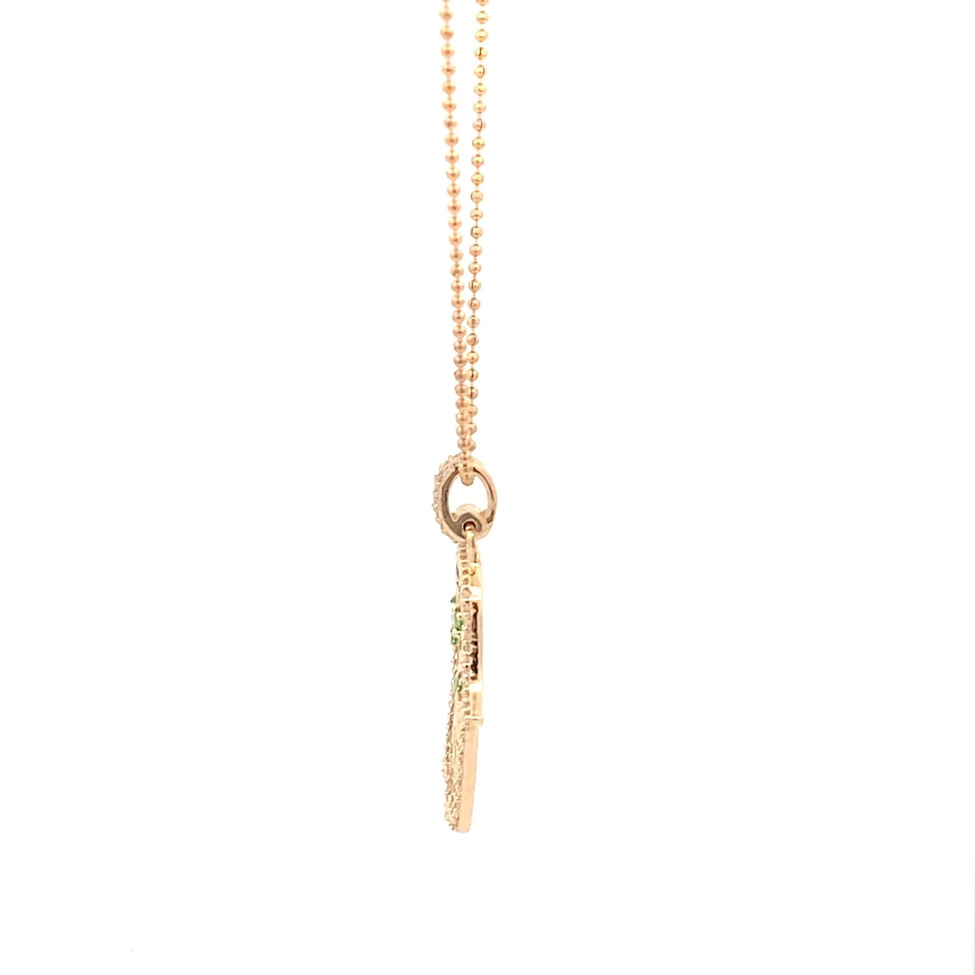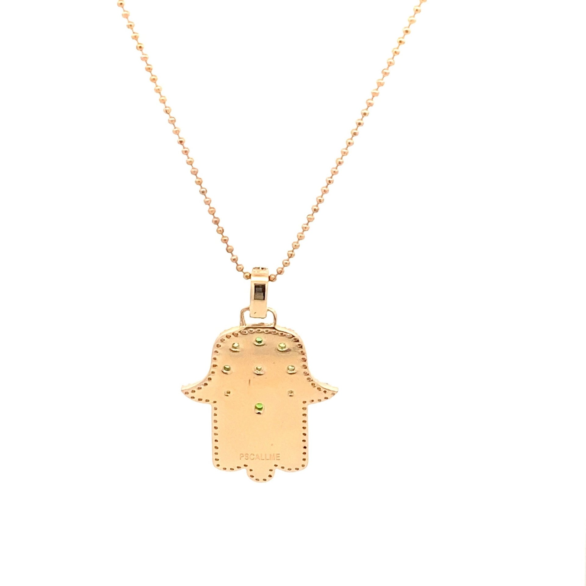 Cadena dorada y charm en forma de mano con pedrería de colores.
