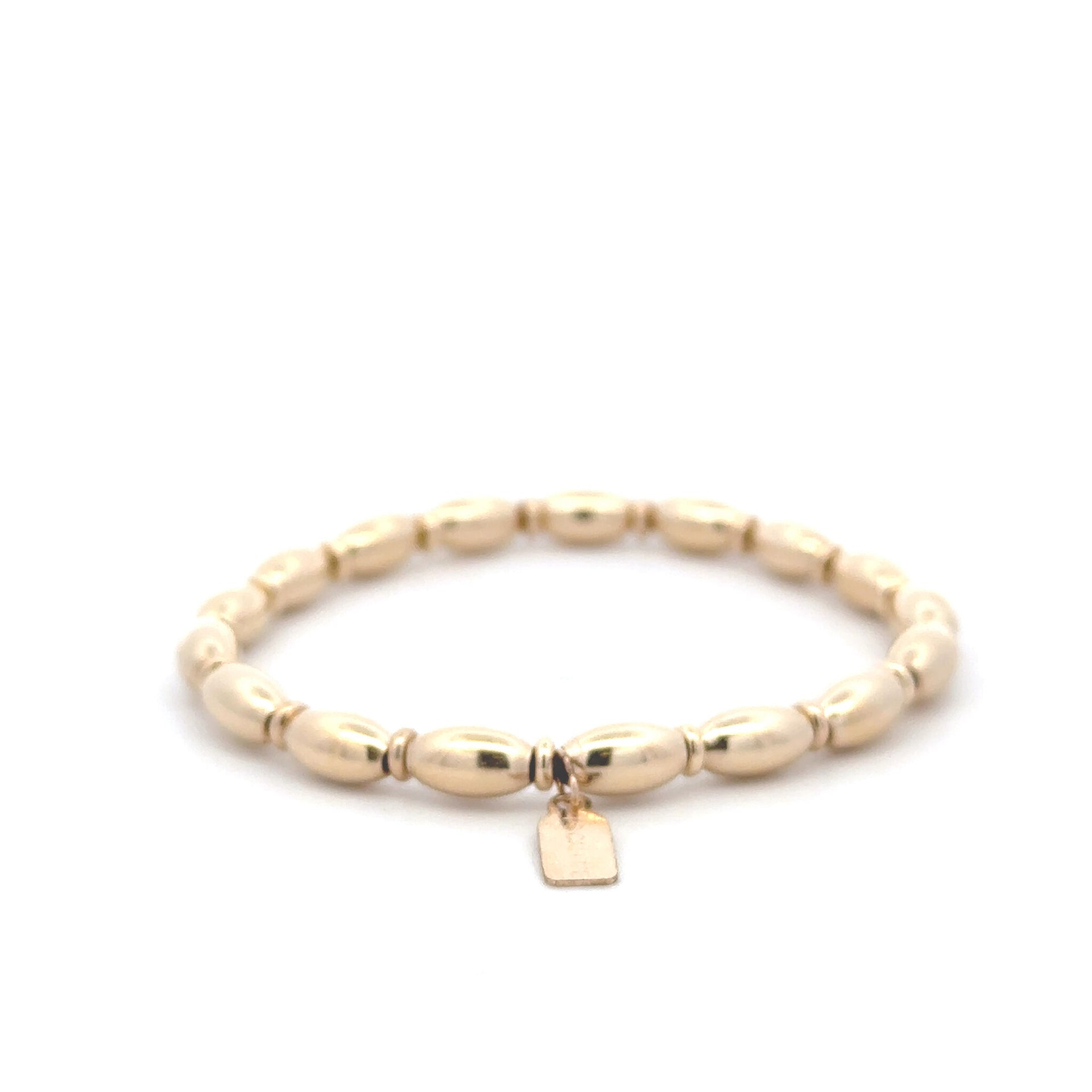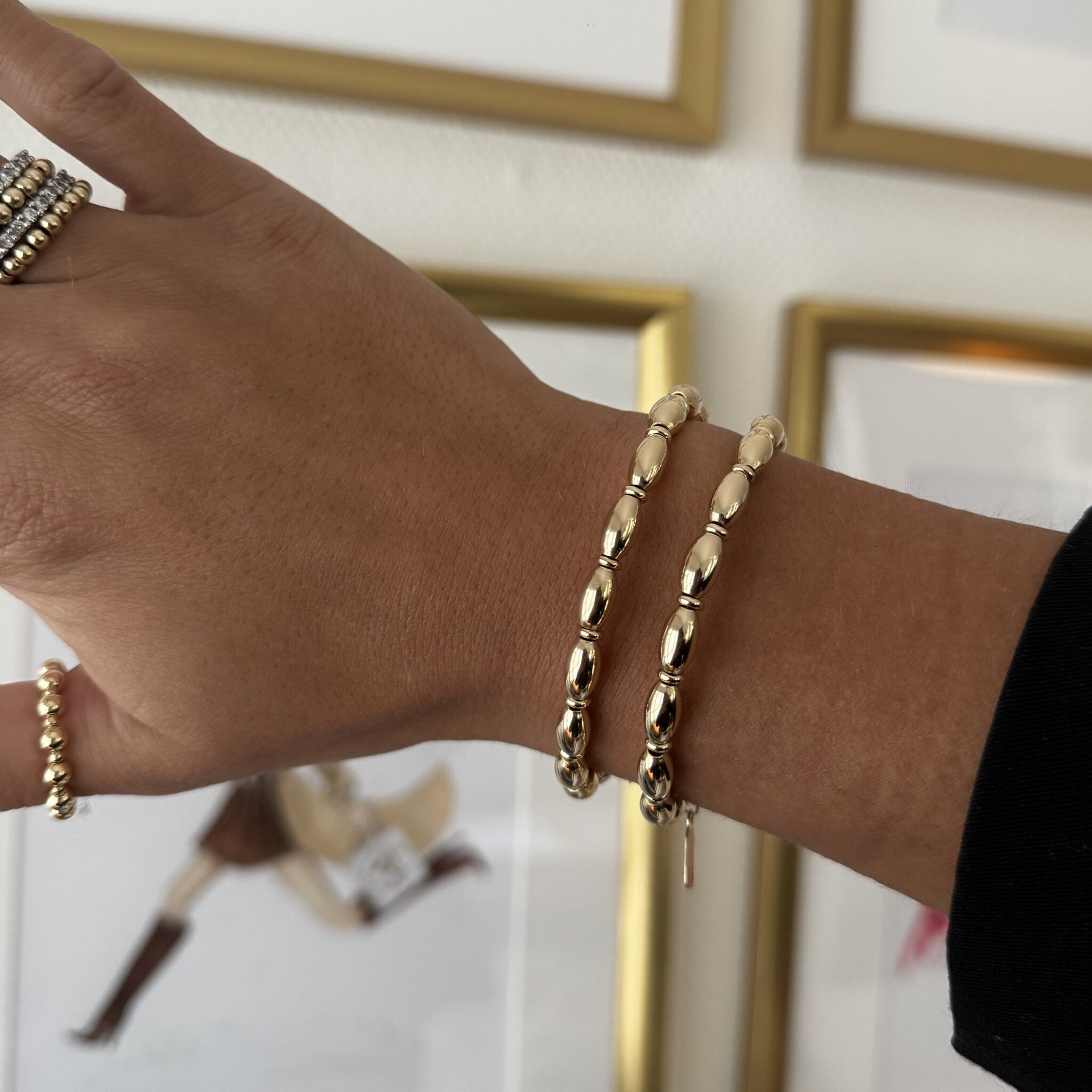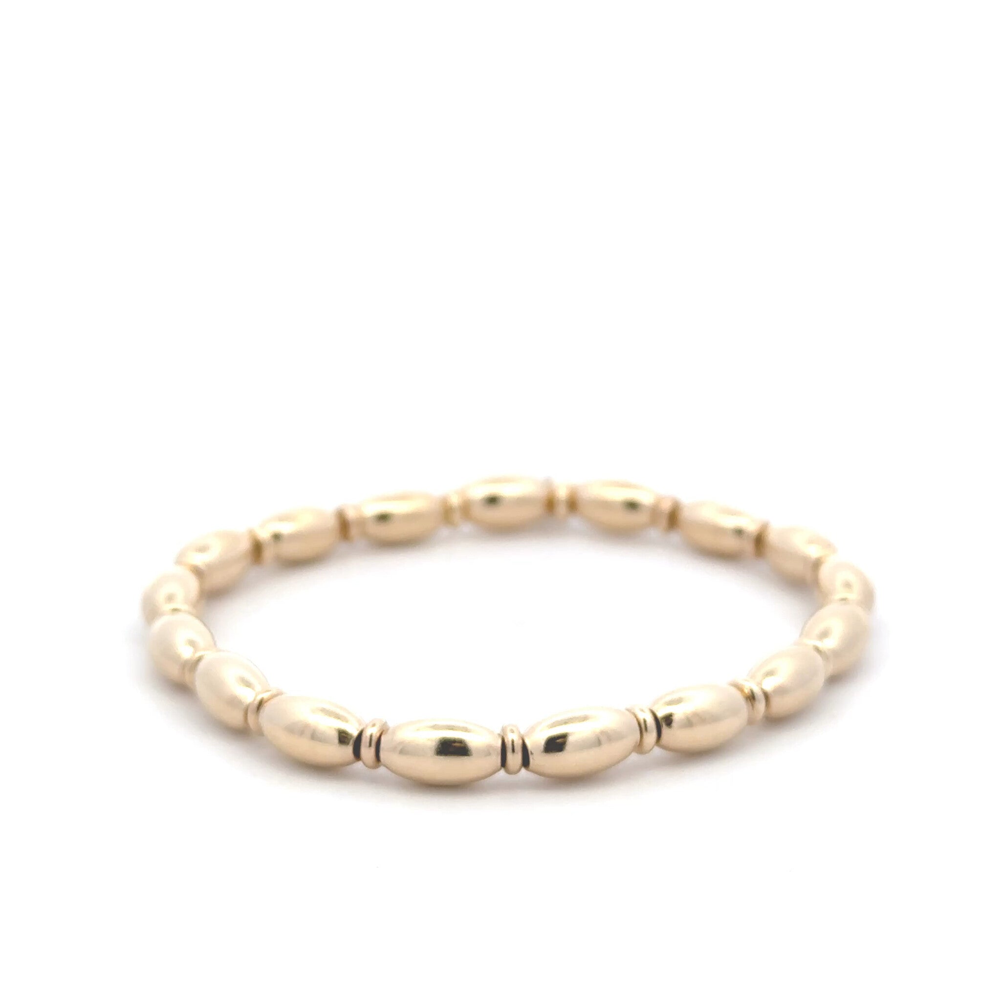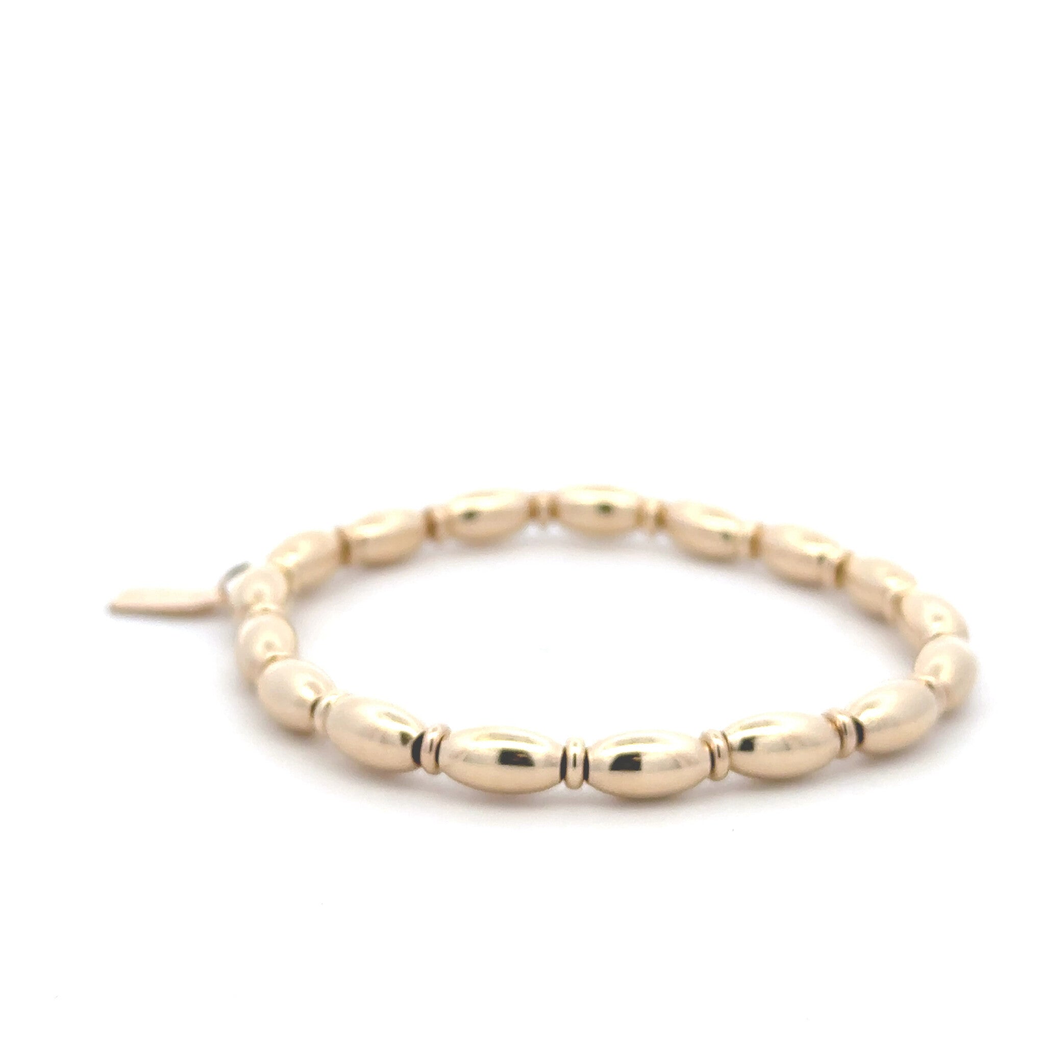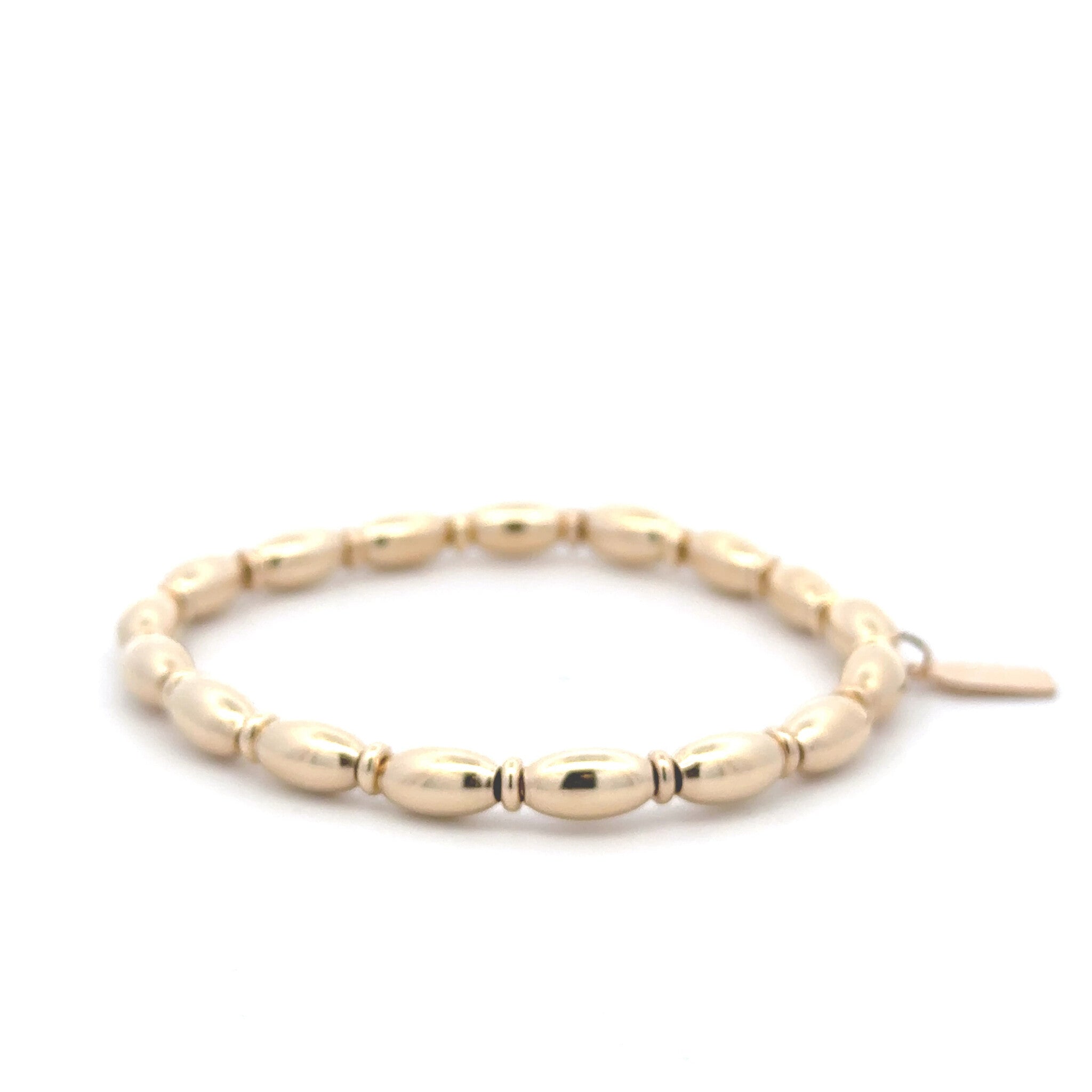Elastic bracelet with gold-tone oval-shaped balls with a mix of wheeltjes