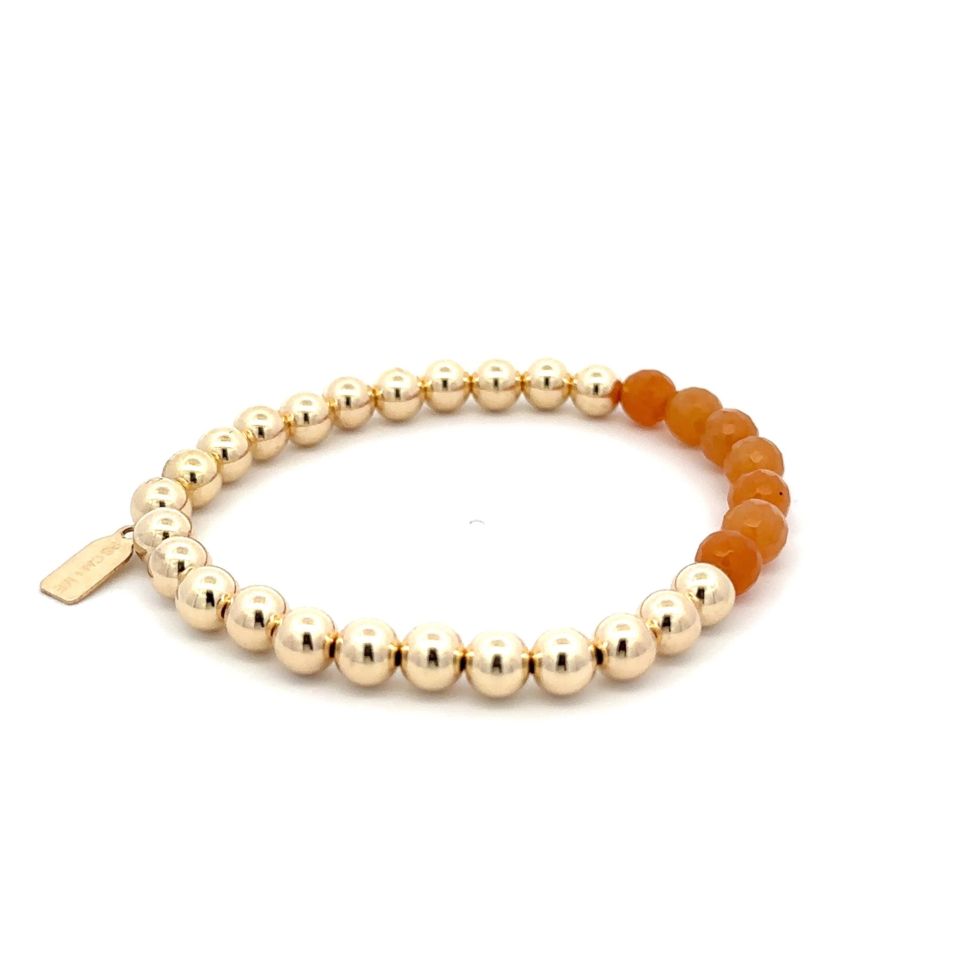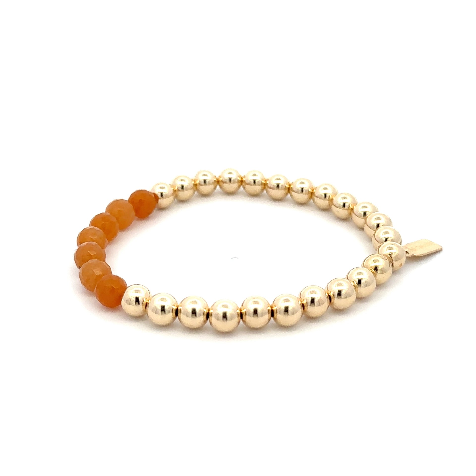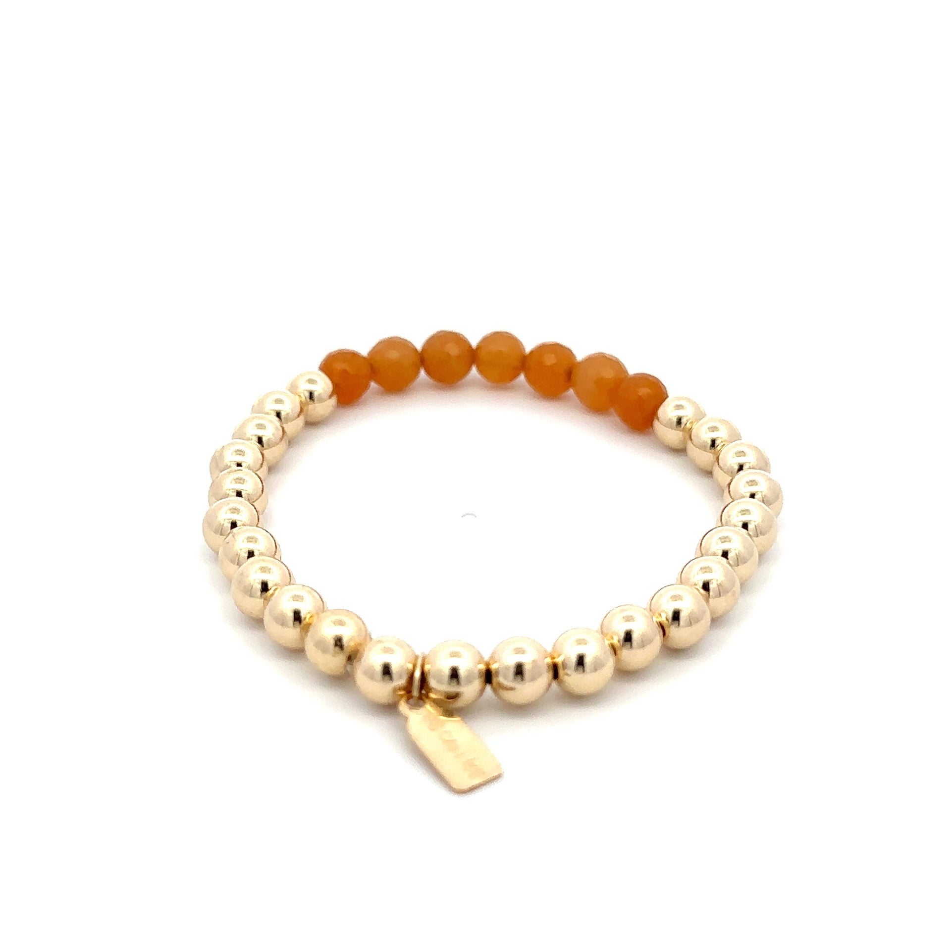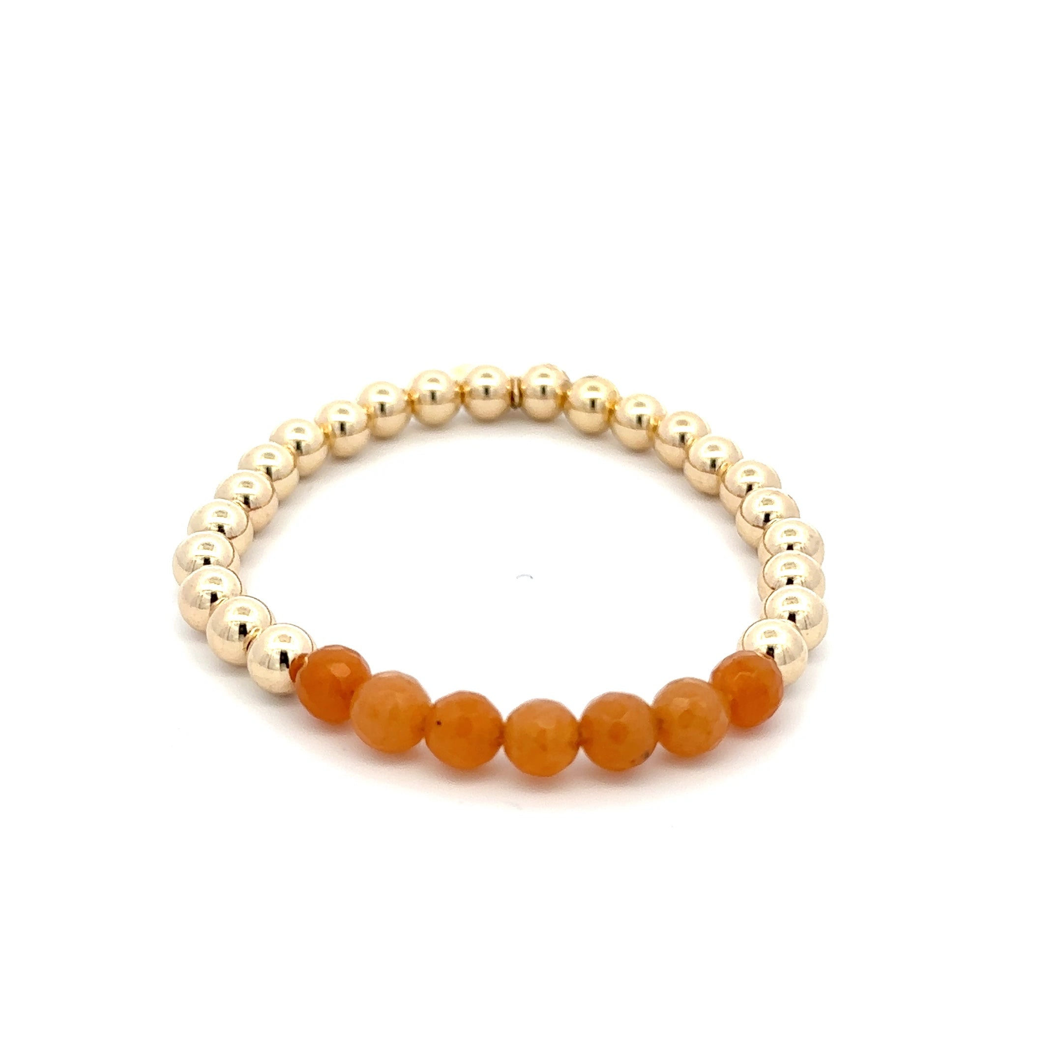 Bracelet élastique avec boules dorées et rangée de pierres colorées