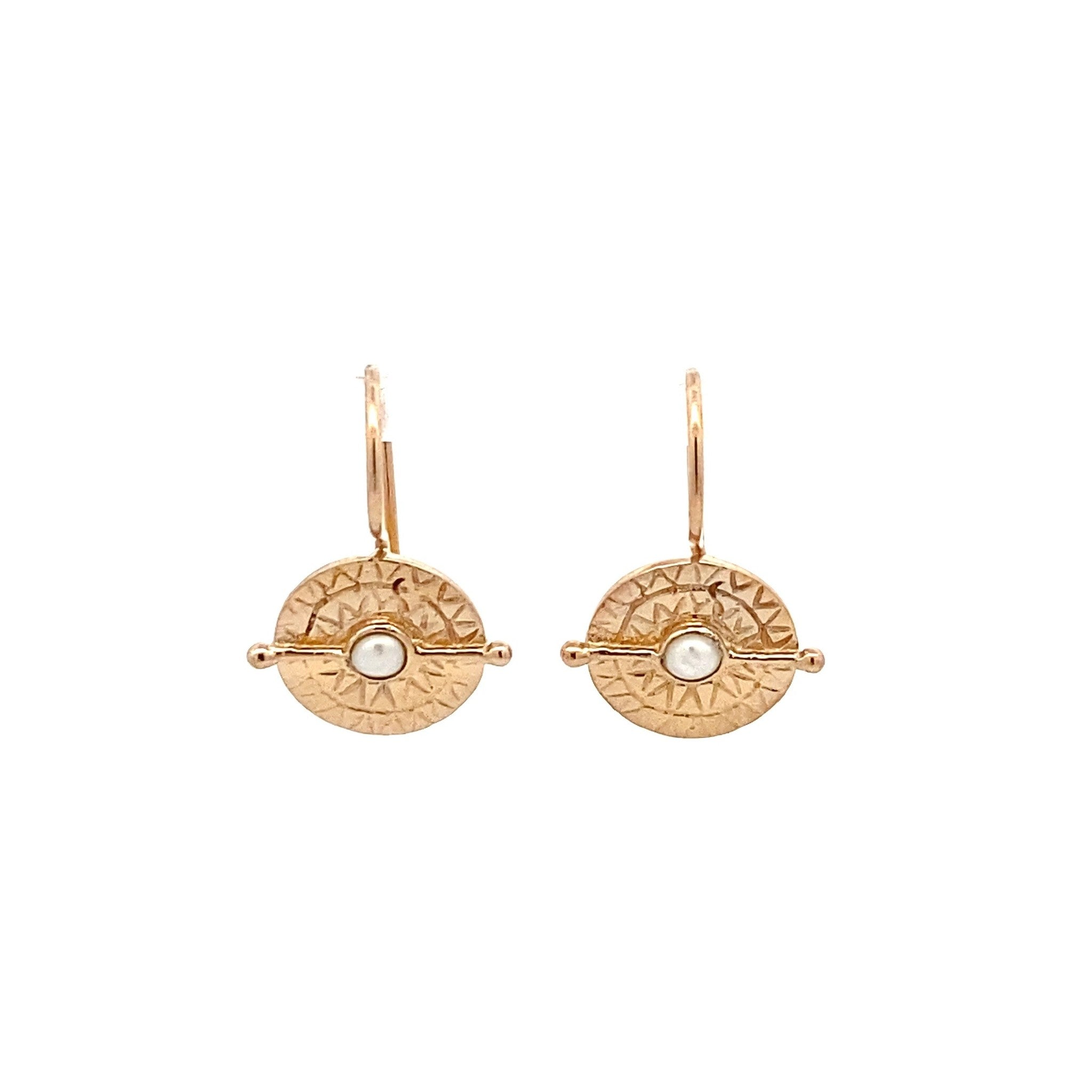 Boucles d'oreilles rondes plaquées or avec une pierre.