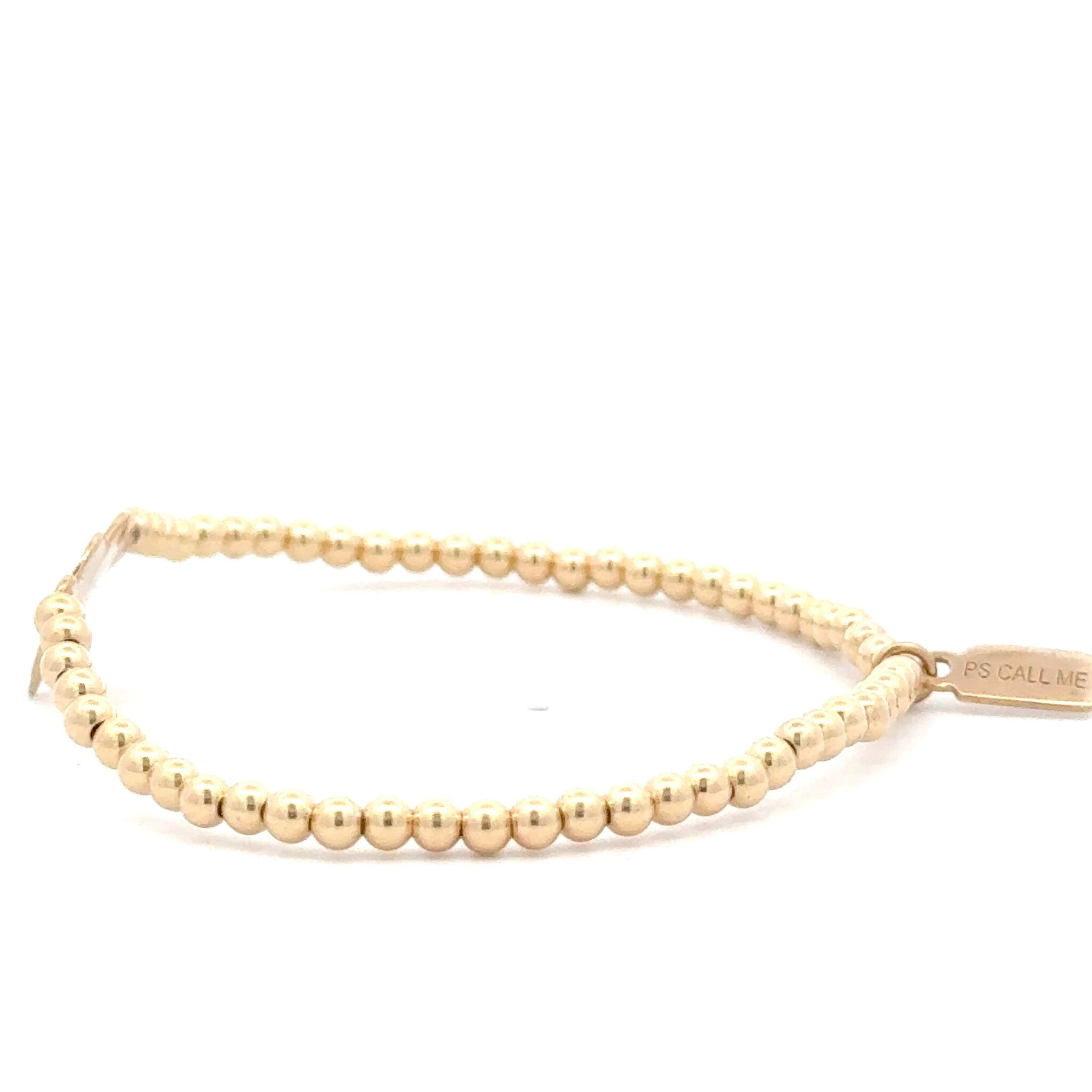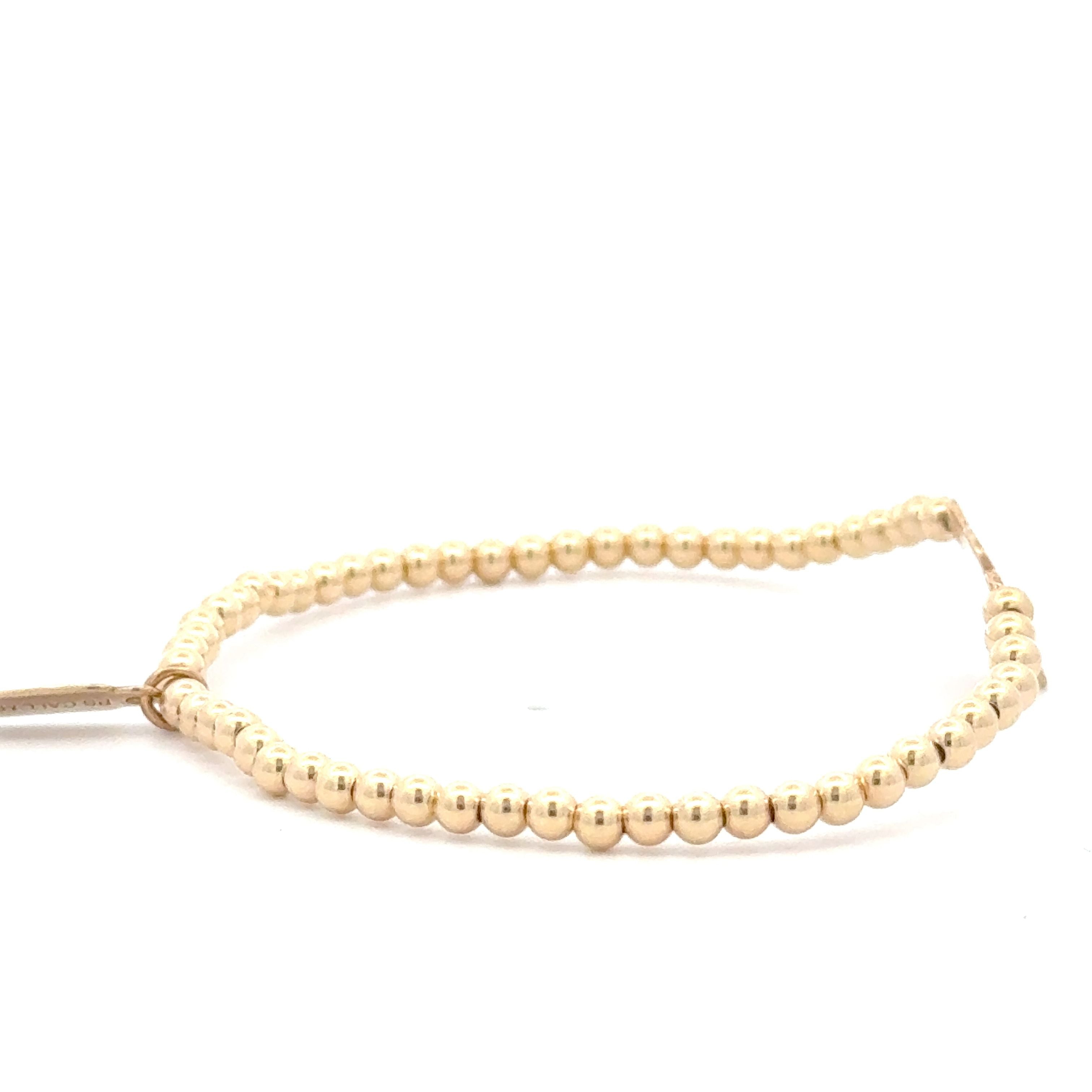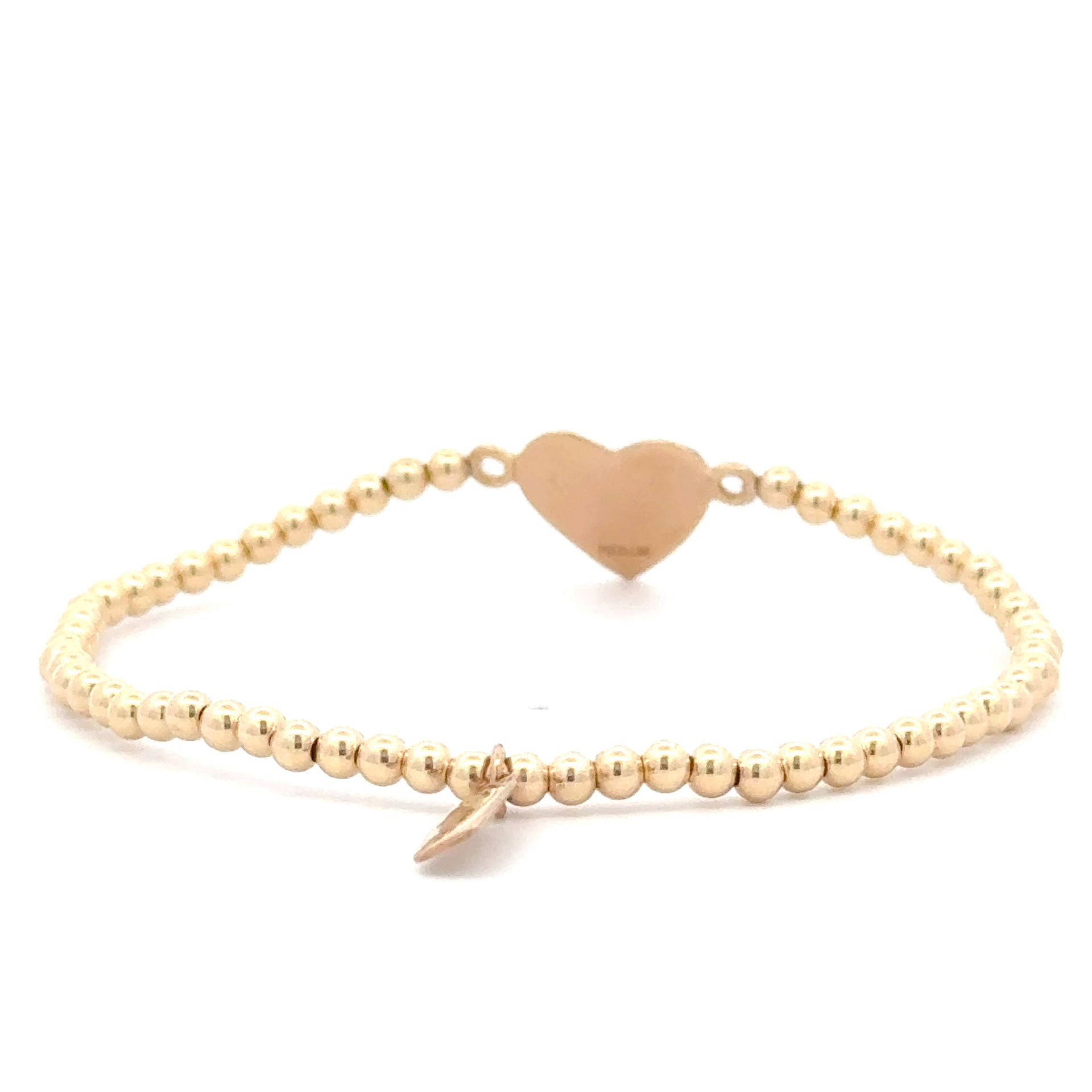 Elastic bracelet with gold colored balls and a gold colored heart.