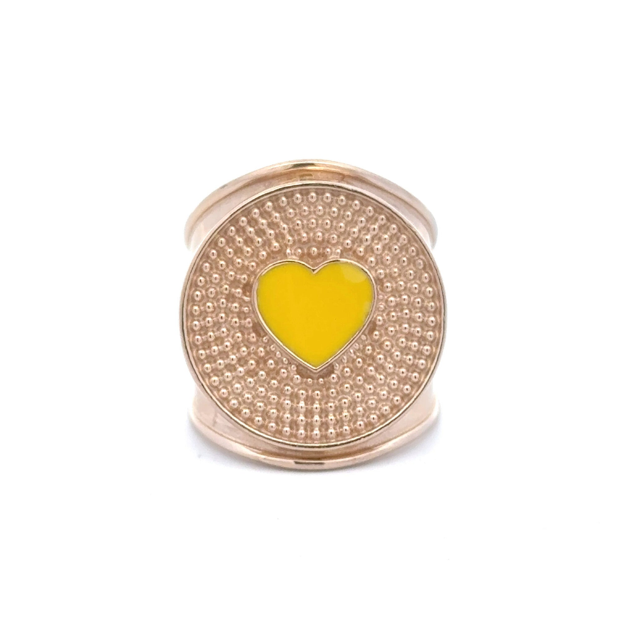 Bague dorée avec un cœur jaune coloré au centre