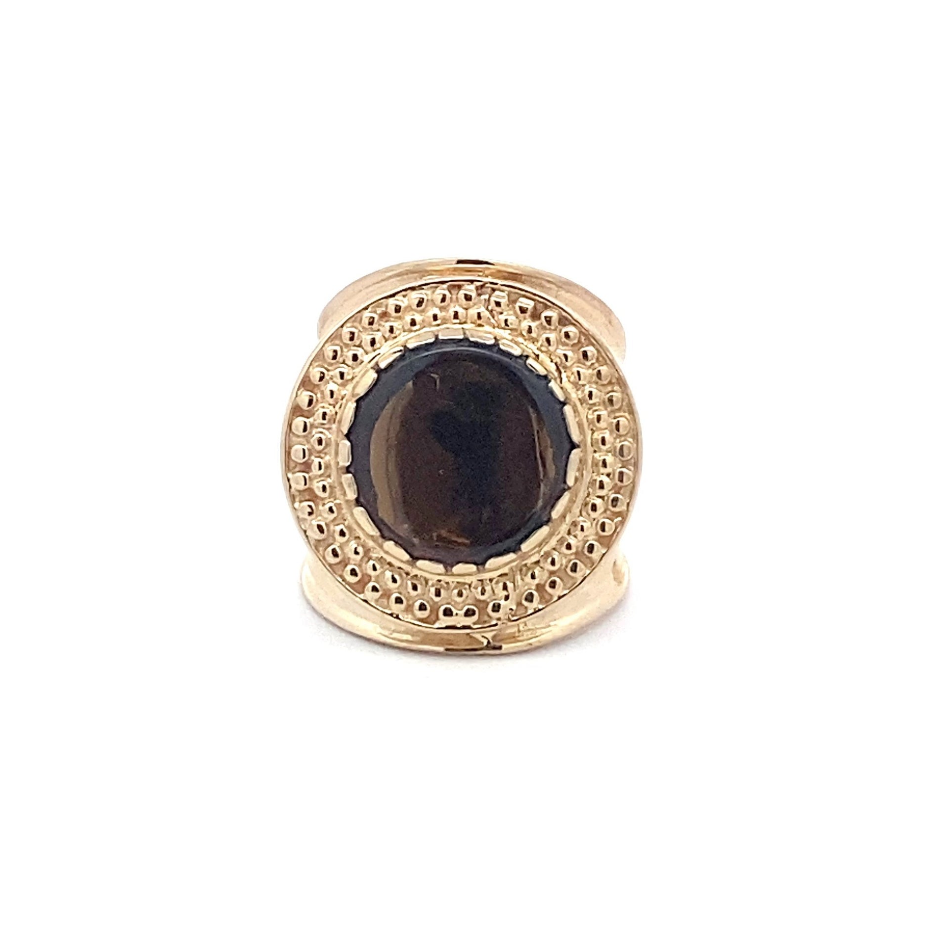Ring flat stone brown goldplated